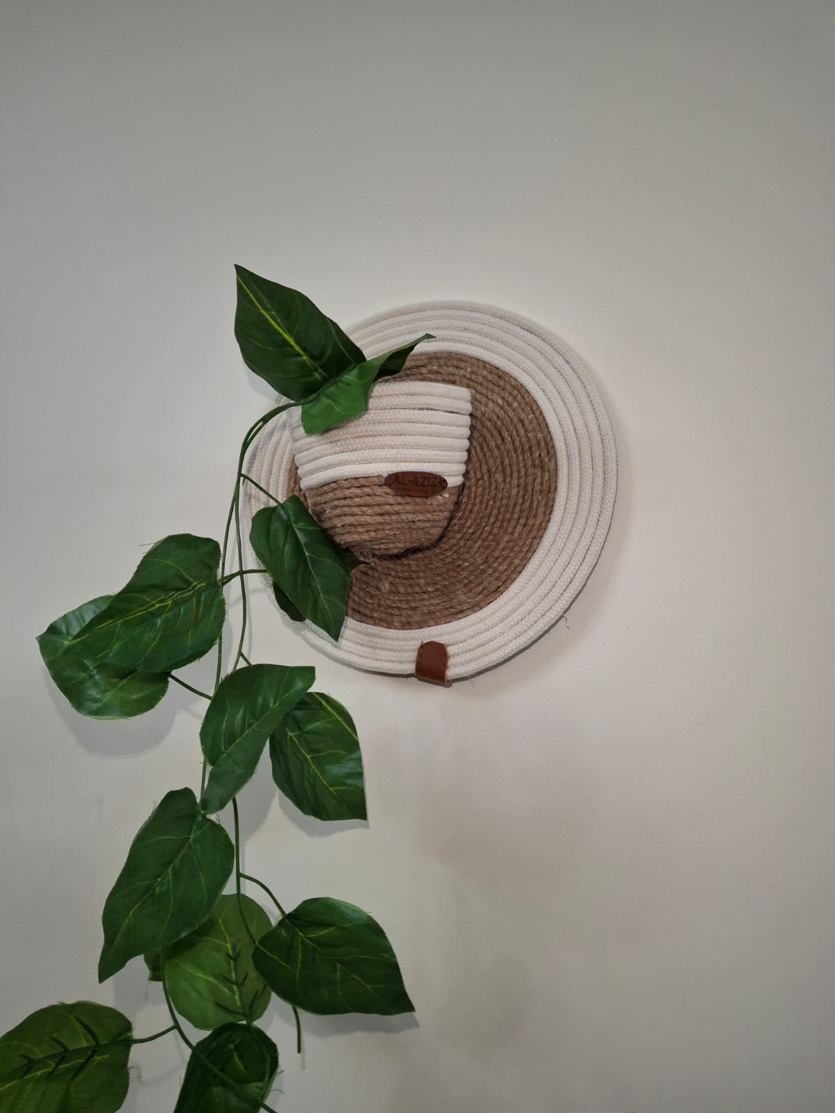 A stylish and creative wall decor piece combining natural coasters with a small hanging planter. This handmade item adds a warm, earthy feel to any space, making it perfect for displaying small plants or faux flowers in entryways, cozy corners, or above side tables. A beautiful blend of nature and rustic charm.