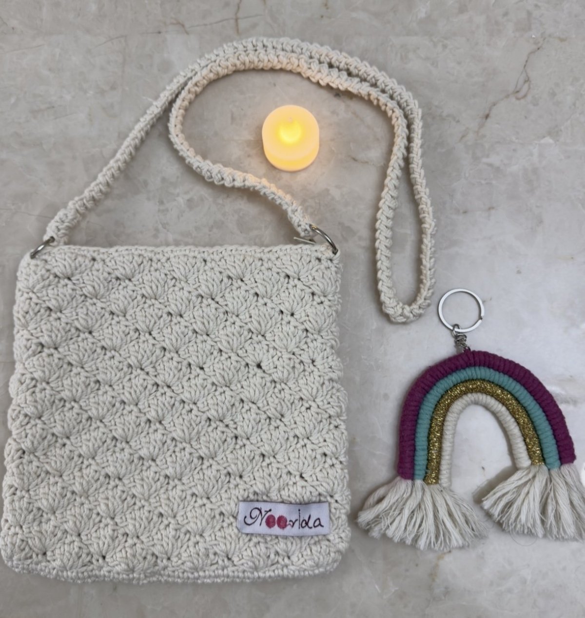 Girls cross bag Made from Egyptian cotton yarn Made with a nice stitch Available in off white color Immediate purchase Size : 20 cm x 20 cm
