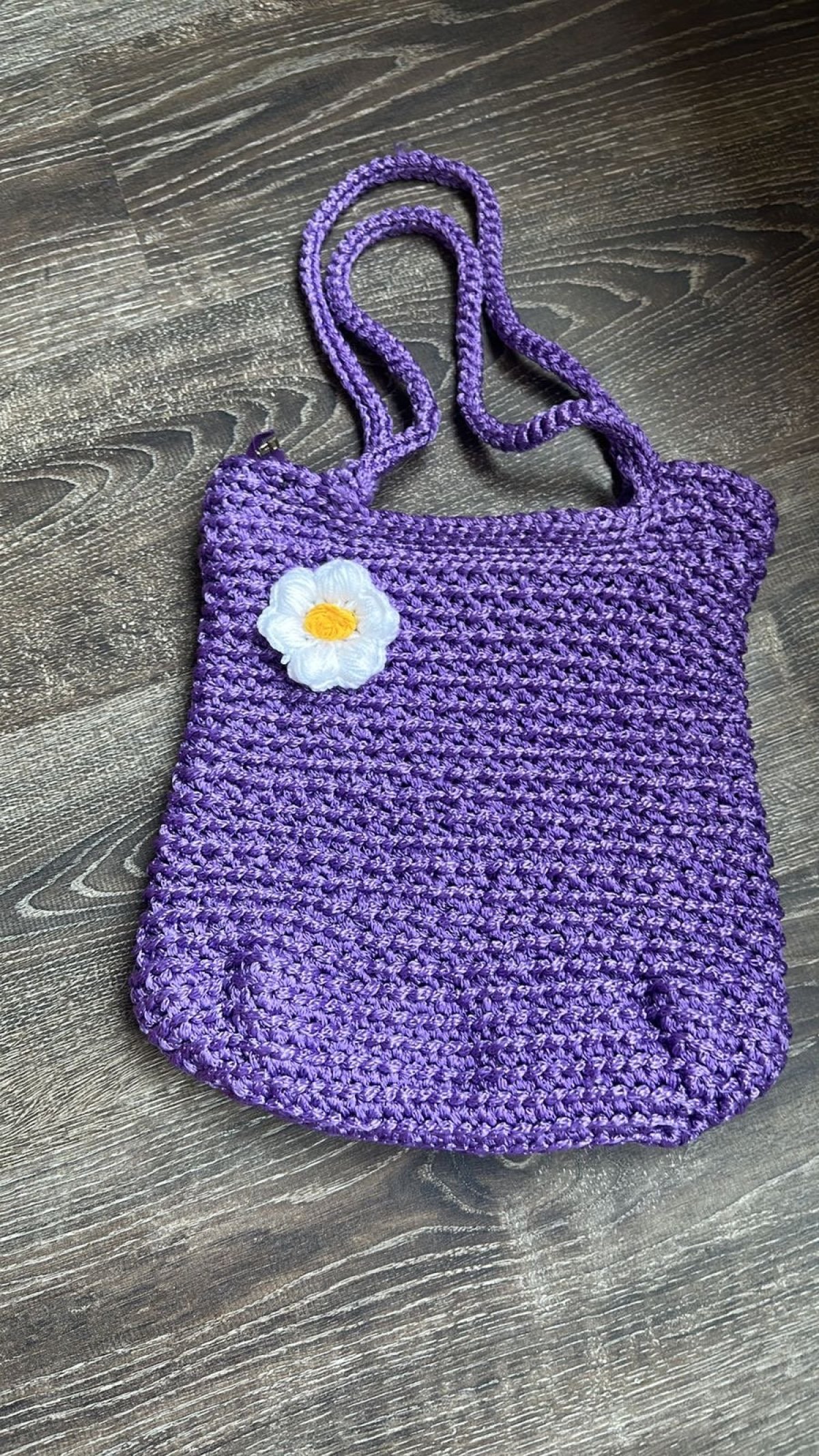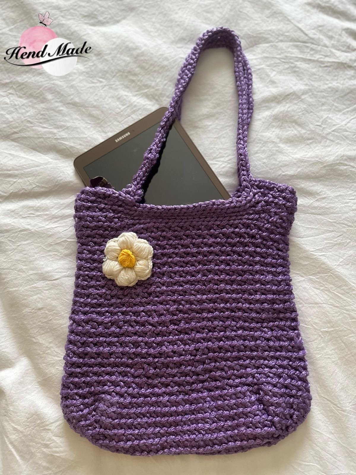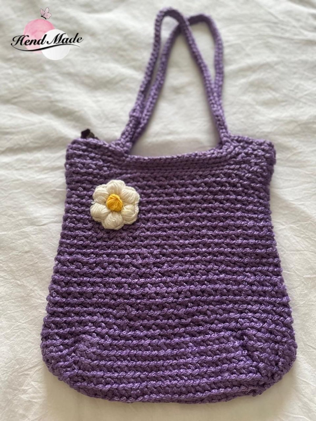 Crochet tote bag made with cordon yarn Color:lavender Size 27cm*30cm Handle:23cm