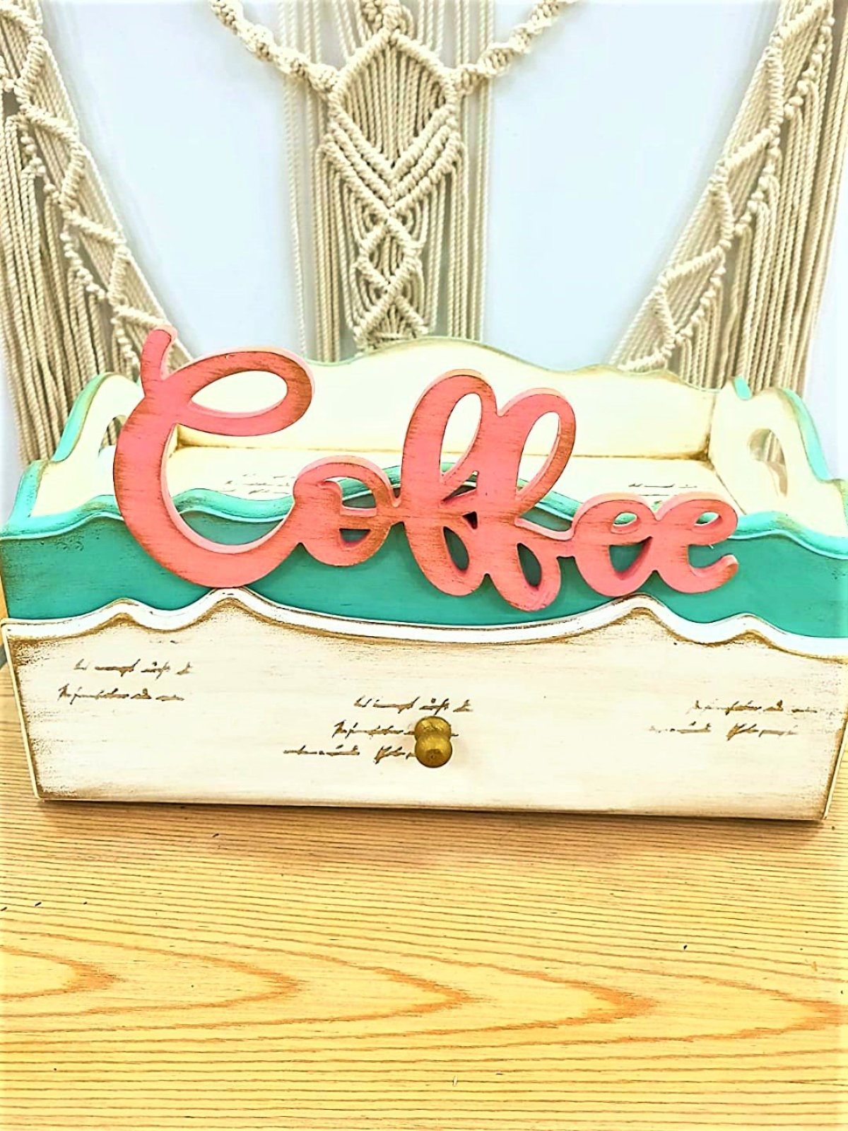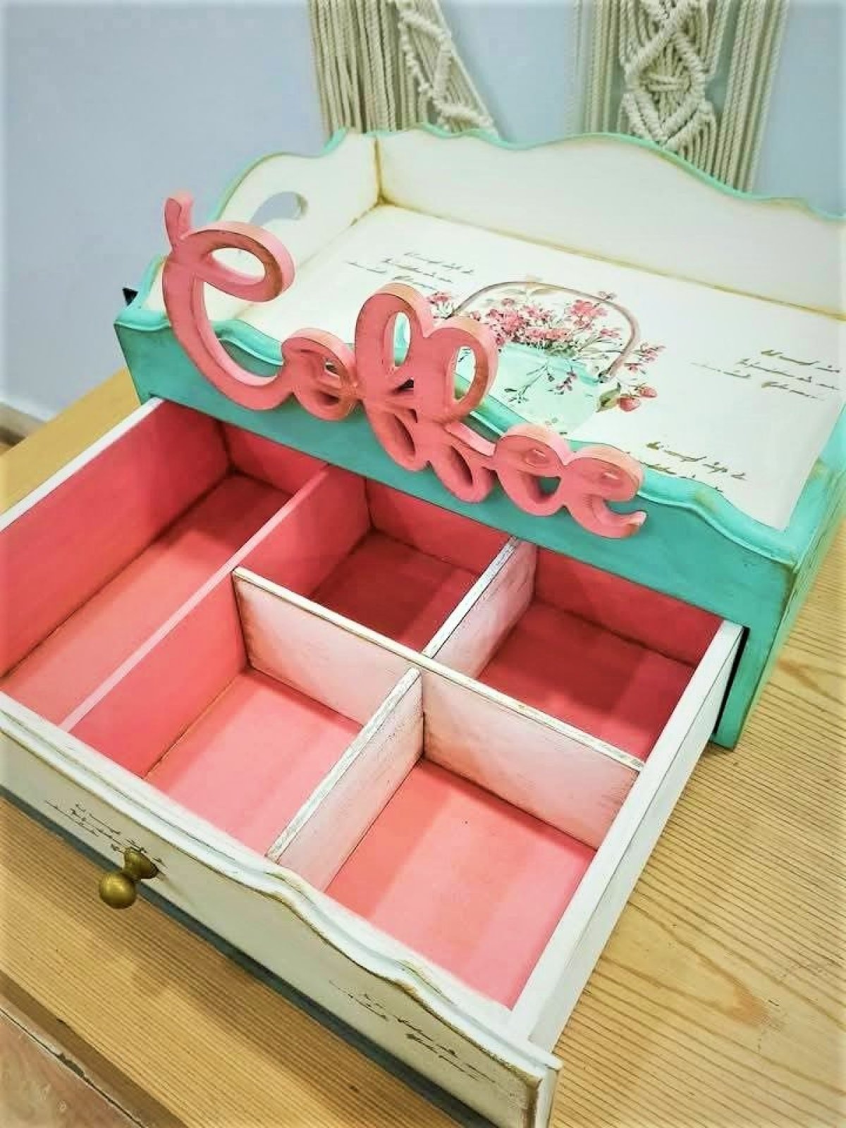 mini coffee corner made with decoupage art 30*50 cm dimensions covered with a protective material from water