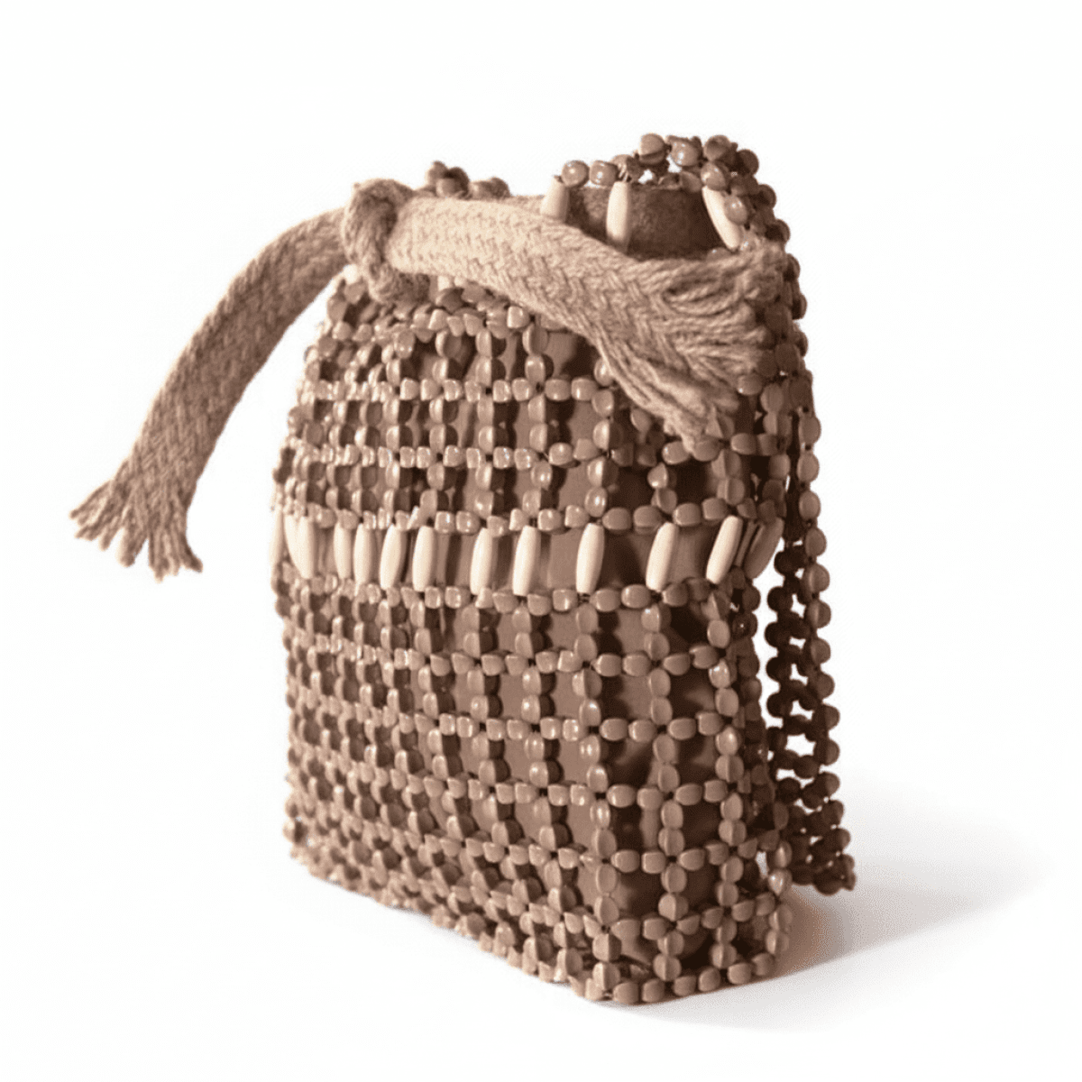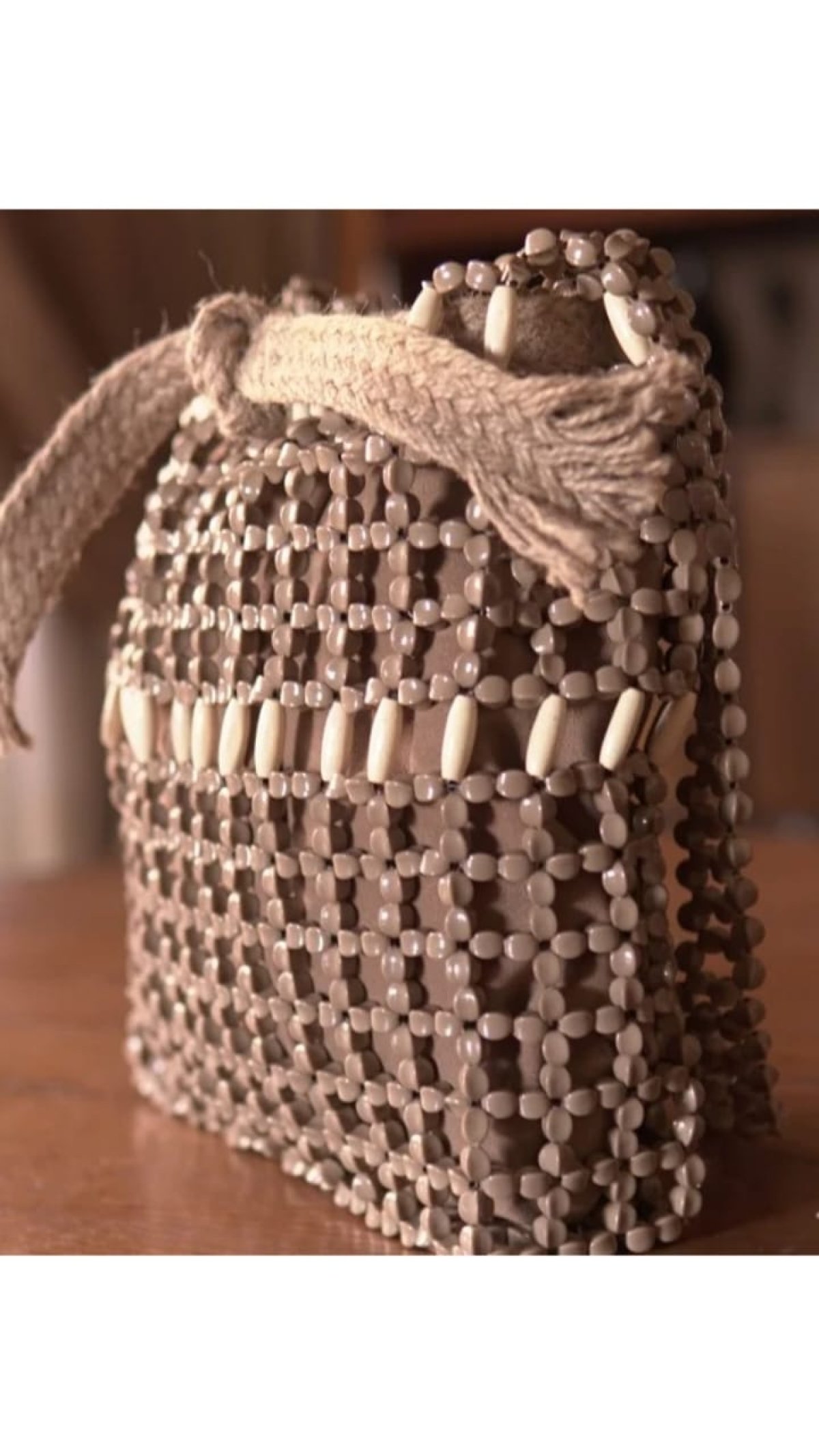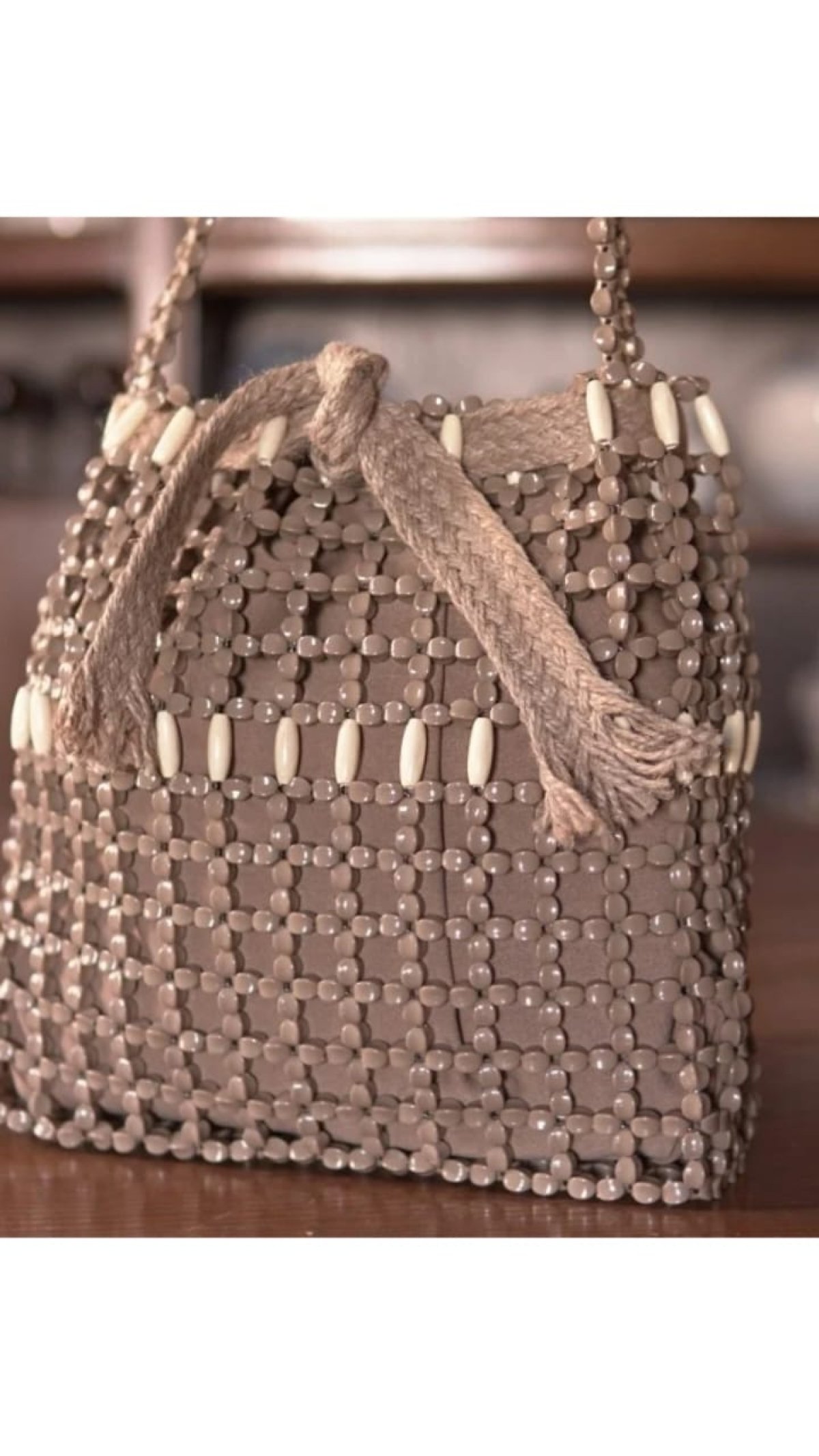 Camel-colored beads with white wood, with a removable lining. Length: 30 cm Width: 26 cm