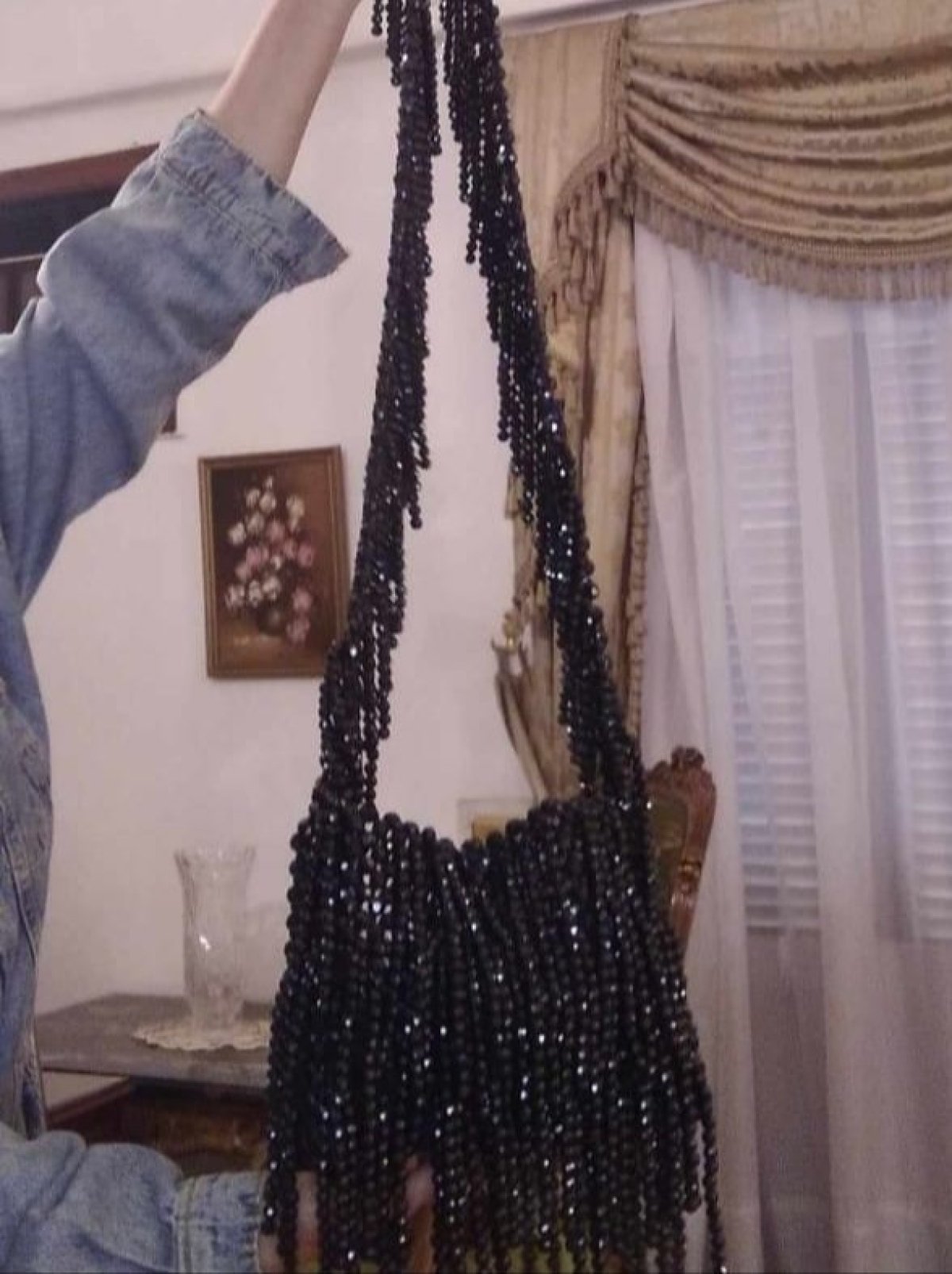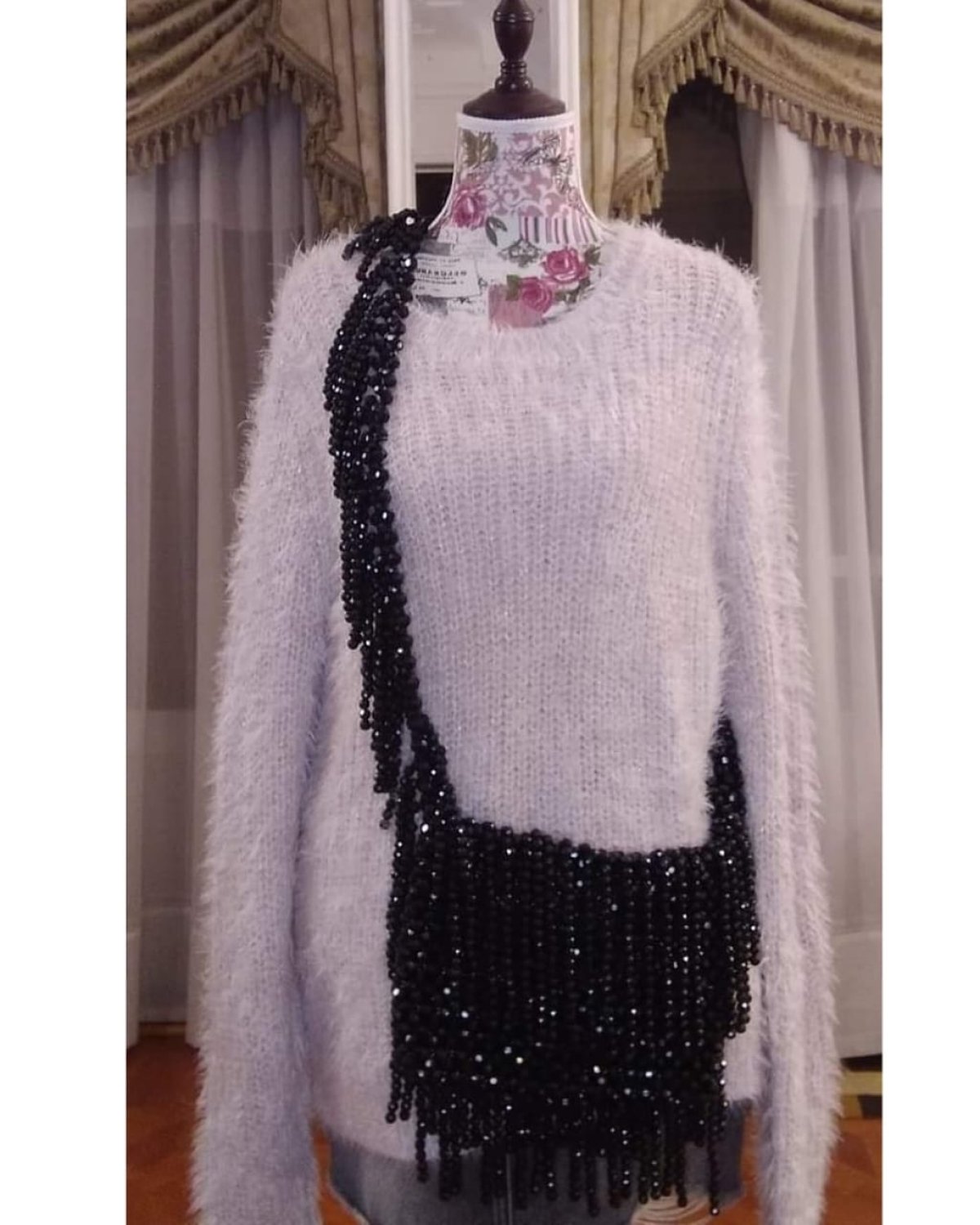Black Round Crystal Bag with Tassels Length : 16 cm Width: 23 cm Crossbody strap with tassels