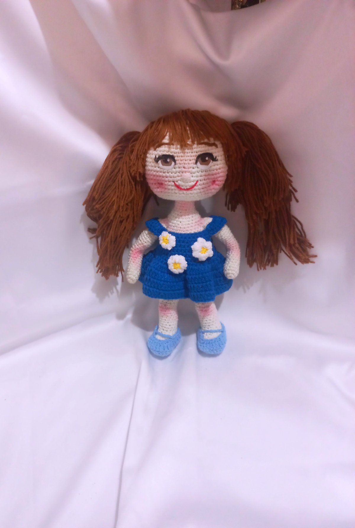 Beautiful crochet doll with dimples 35 cm Inner wire for ease of movement Floss hair