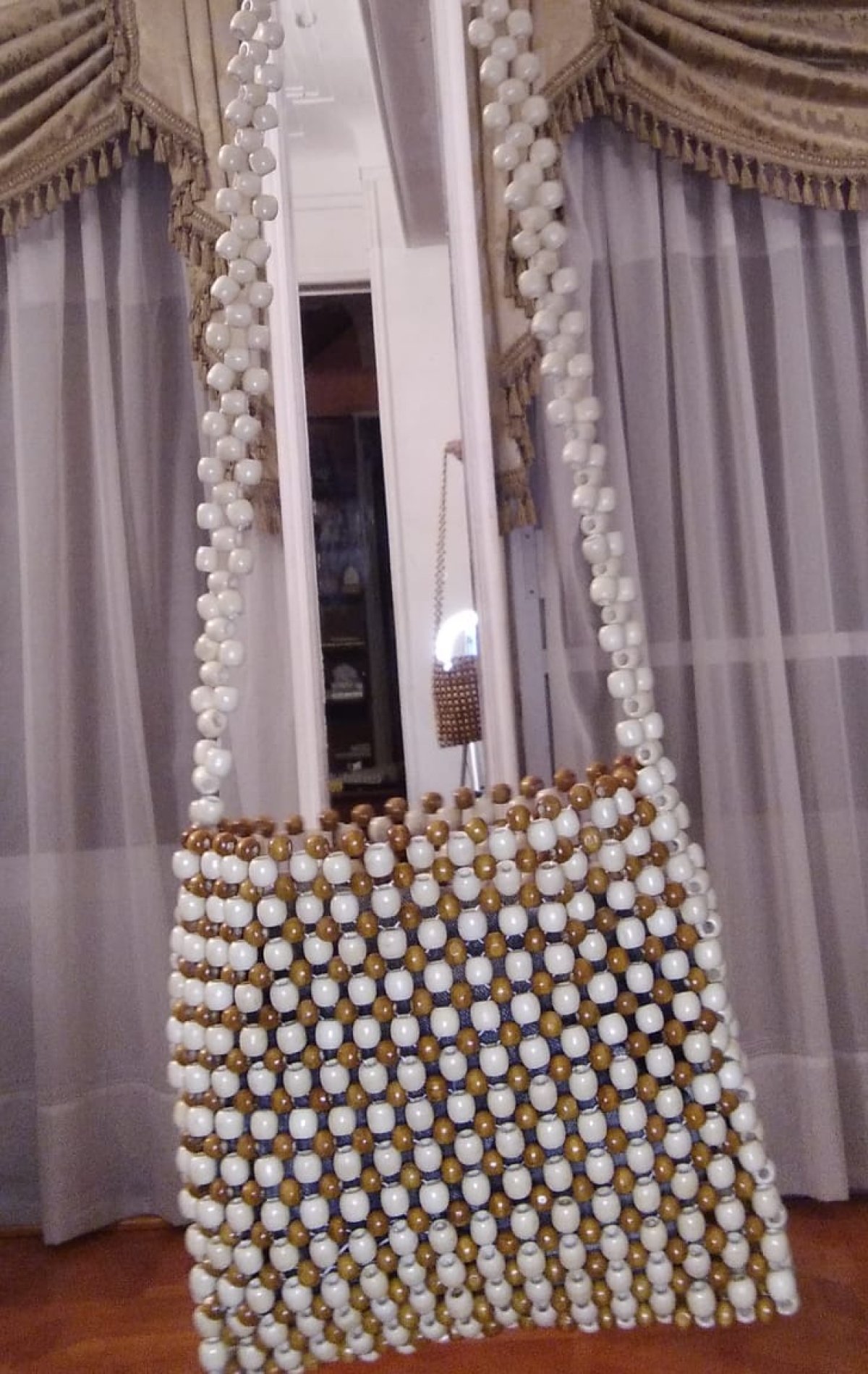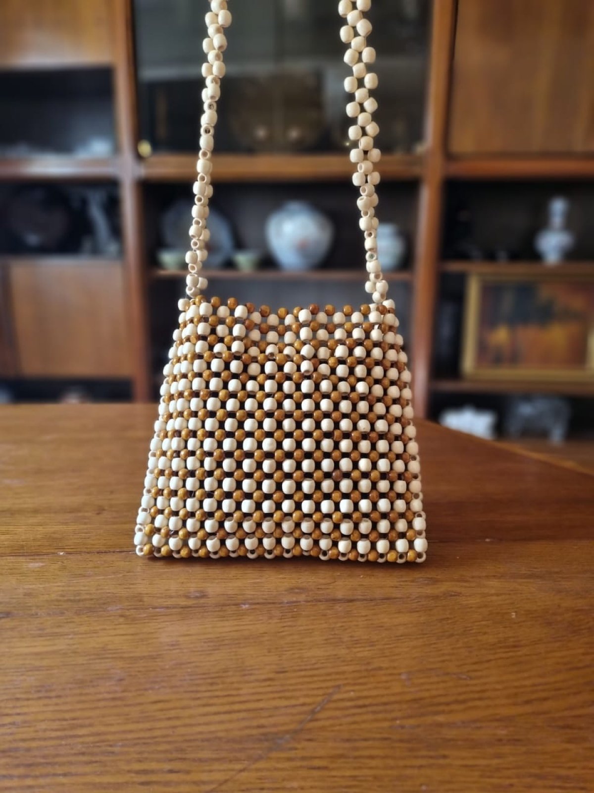 White round wood with honey Length: 26 cm Width: 22 cm Handle: White wood crossbody