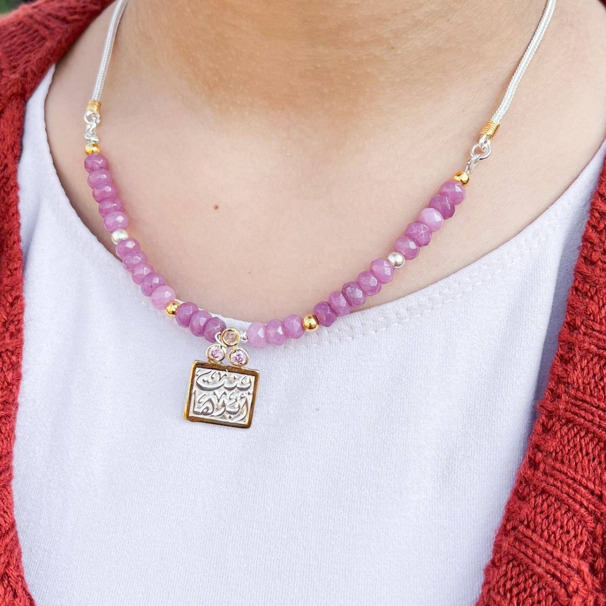 Sterling silver925 gold plated with agate stone necklace بنت أبوها