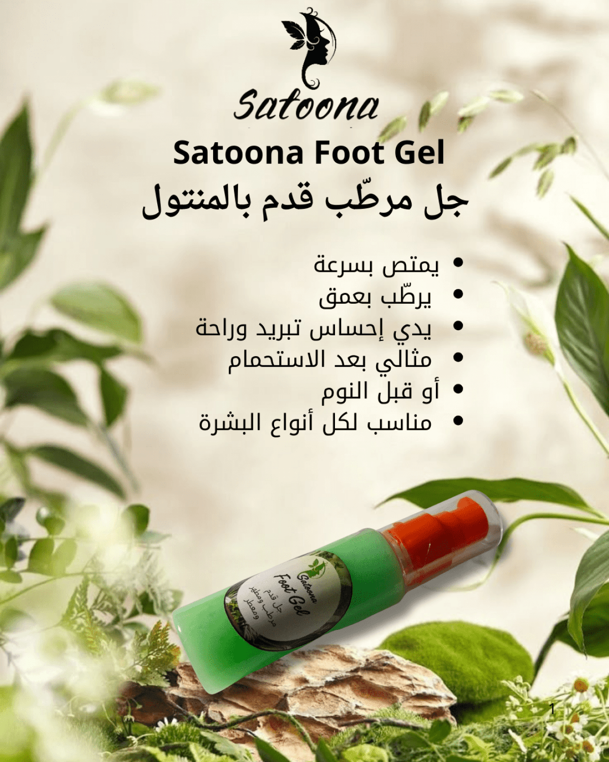 🧴 Satoona Foot Gel – Menthol Moisturizing Gel Cooling and softness in one touch! If you want your feet to feel comfortable and moisturized without feeling heavy or greasy... 💧 Satoona Menthol Gel is your choice: ✔️ Absorbs quickly ✔️ Deeply moisturizes ✔️ Provides a cooling and soothing sensation ✔️ Ideal after showering or before bed ✔️ Suitable for all skin types