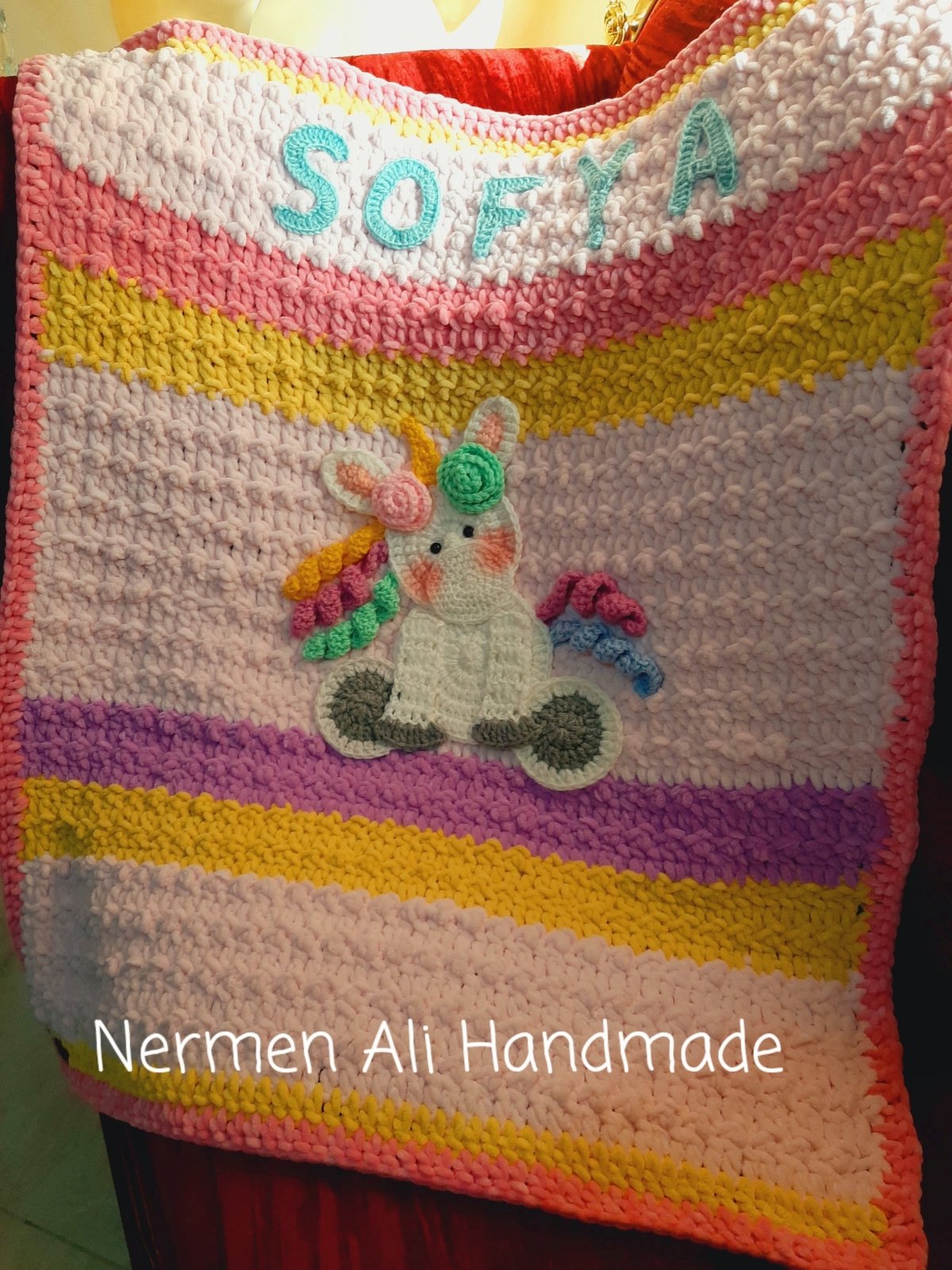 Baby Blanket 120 x 100 cm Soft velvet yarn against baby's skin Baby's name can be printed All colors