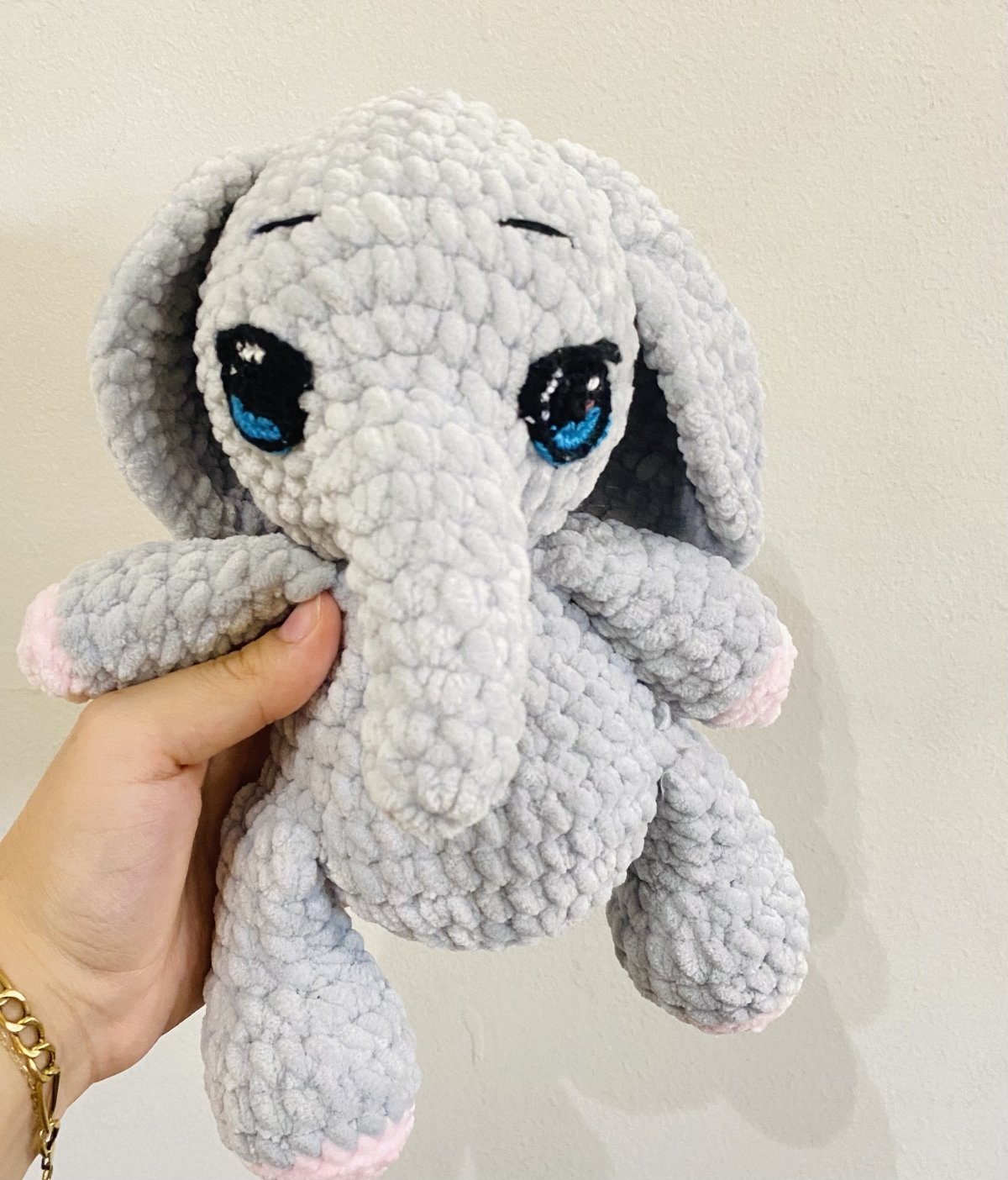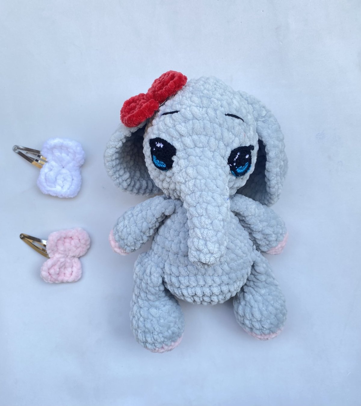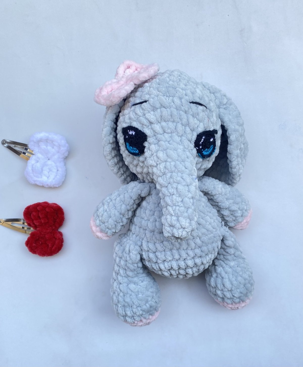 The best gift for your loved ones who love cute animals Am elephant plushie that is made from velvet yarn that is very soft and fluffy The best cute gift for loved ones and family members🥰 Comes with three colorful clips You can choose your own elephant color Length: 24 cm