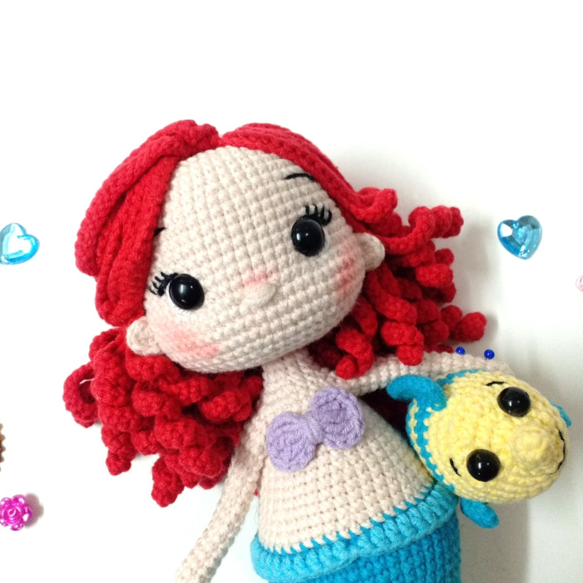 Ariel the Little Mermaid Amigurumi doll 🌊 Made with love from high-quality cotton yarn 🌊 Safety eyes for the safety of children 🌊 Approximate hight : 20 cm.