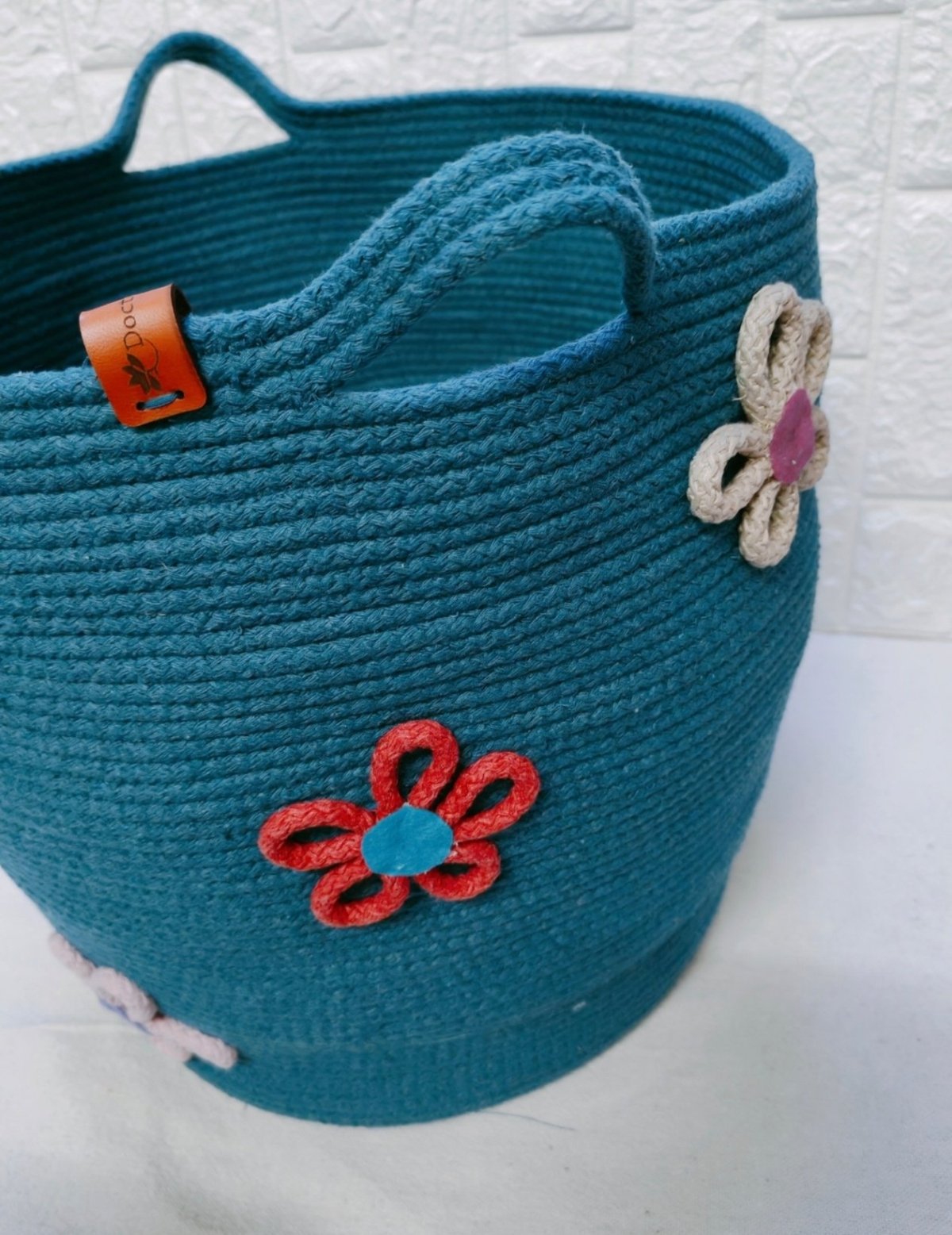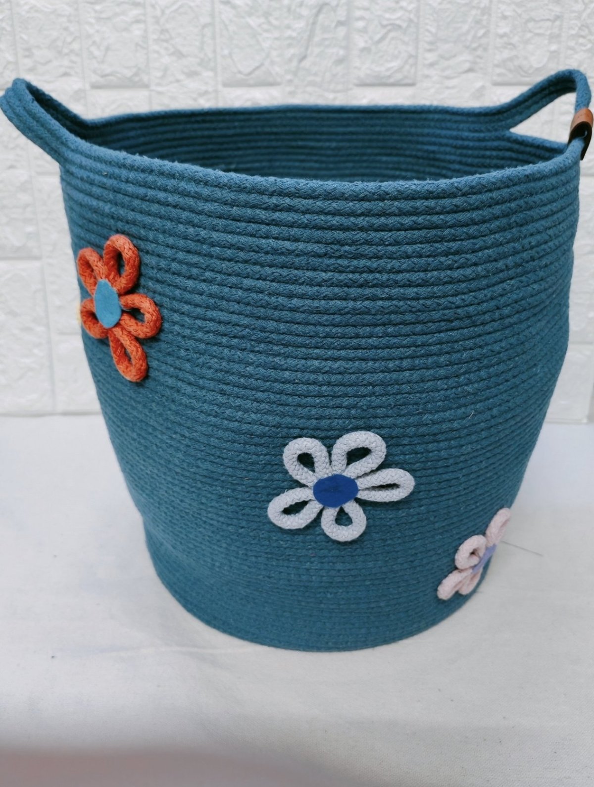 Organizing basket made of cotton cordon rope multipurpose can be used for clothes, baby toys , storage, etc Size : base diameter 35 cm, upper diameter 40 cm, height 40 cm Can change size and colour as ordered