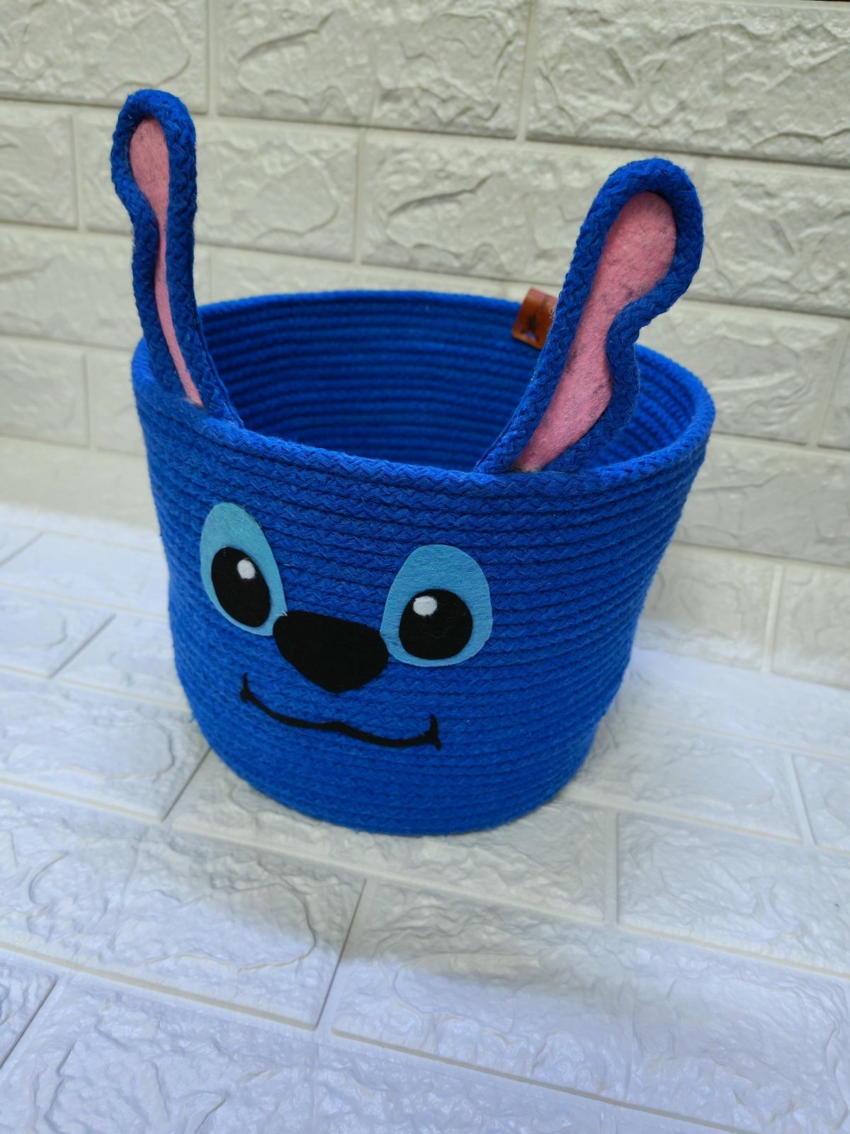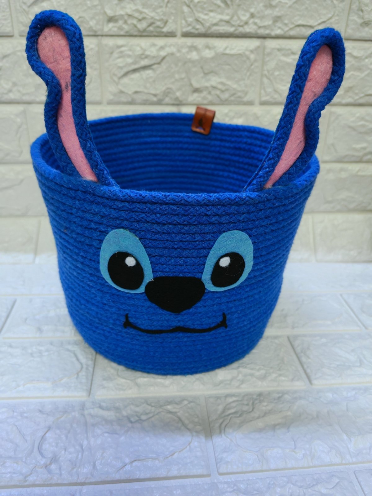 Organizing basket made of cotton cordon rope stitch character shape multipurpose can be used for clothes, baby toys, storage etc Size : base diameter 22 cm,upper diameter 25 cm height 20 cm Can change size as ordered