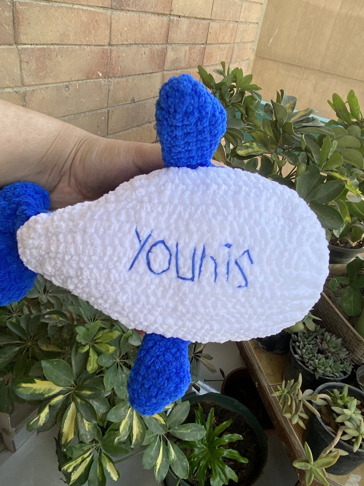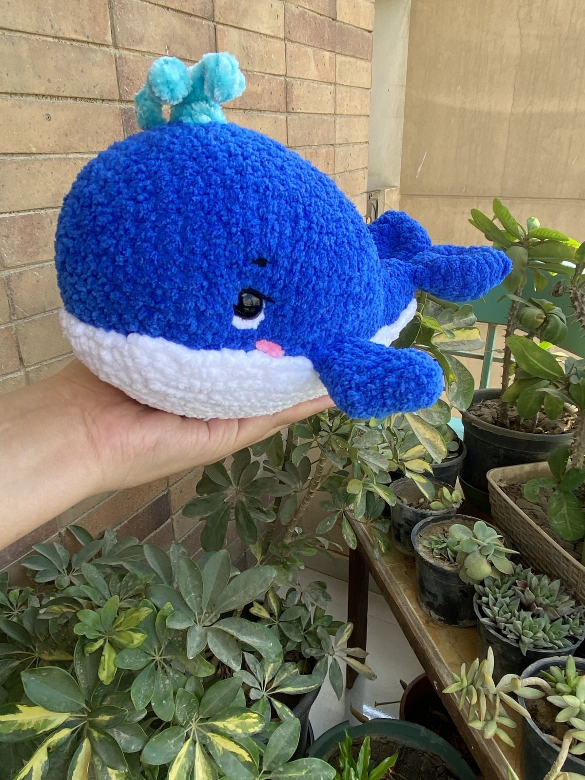 Amigurumi whale made from fluffy velvet yarn Size : 25 cm approximately
