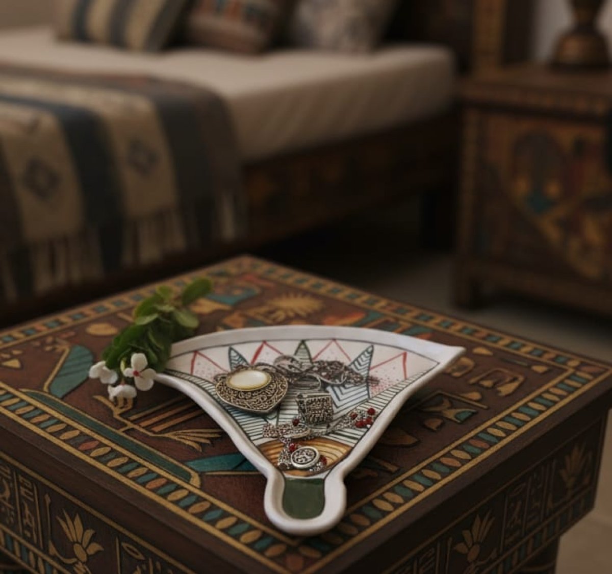 A ceramic dish in the shape of a lotus flower, hand-made and painted, suitable for decoration and as a holder for jewelry