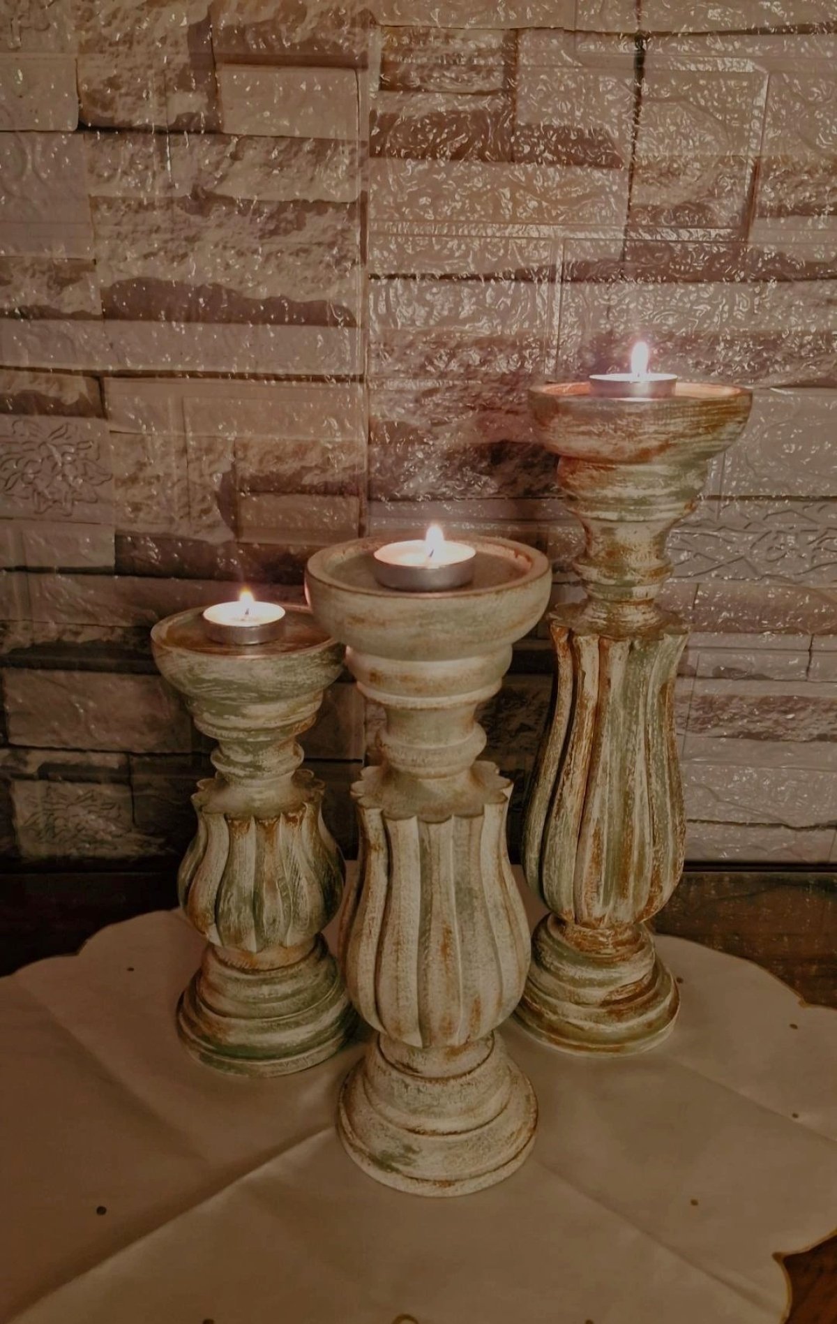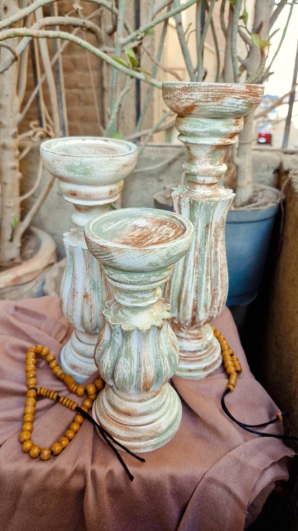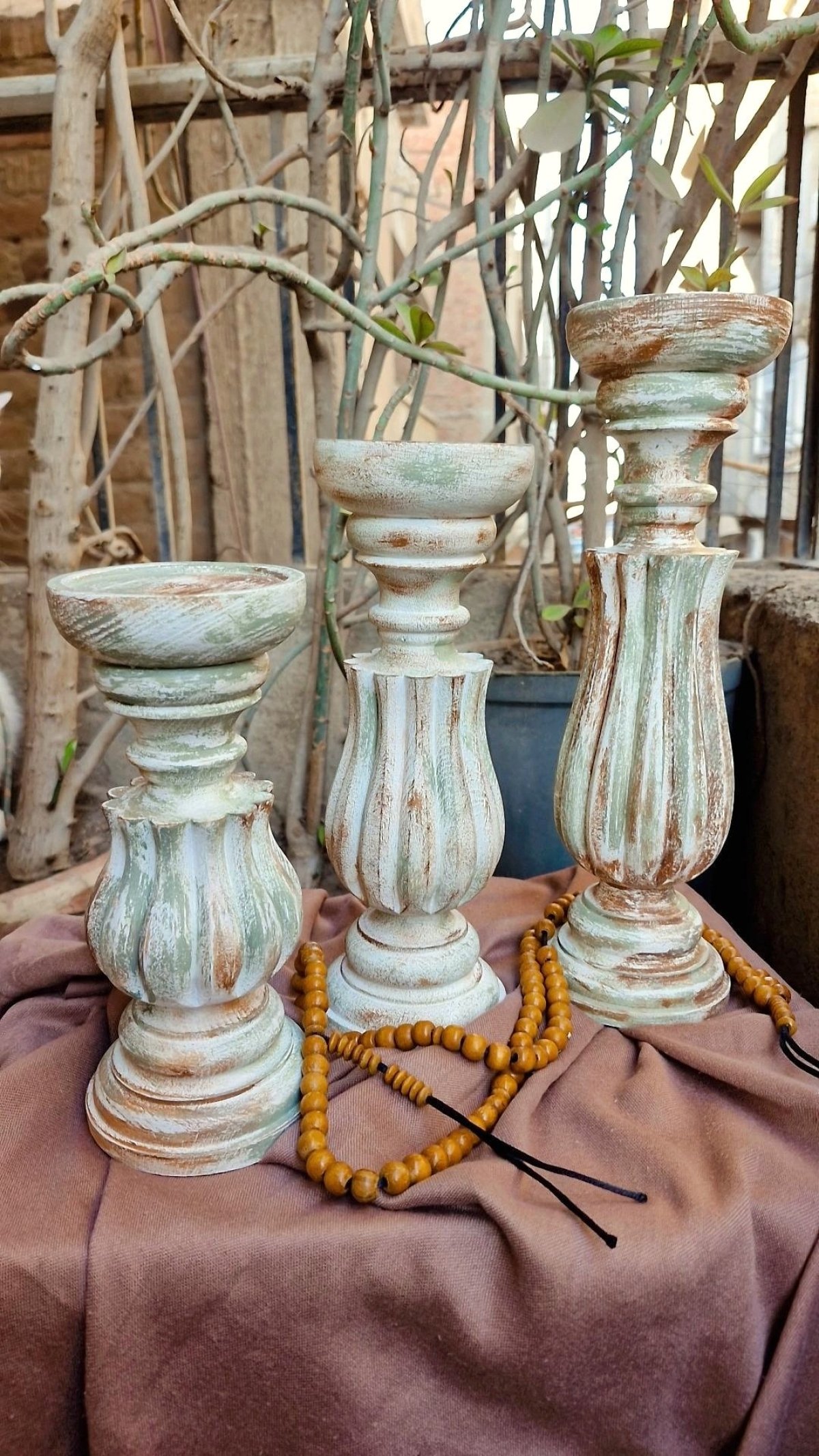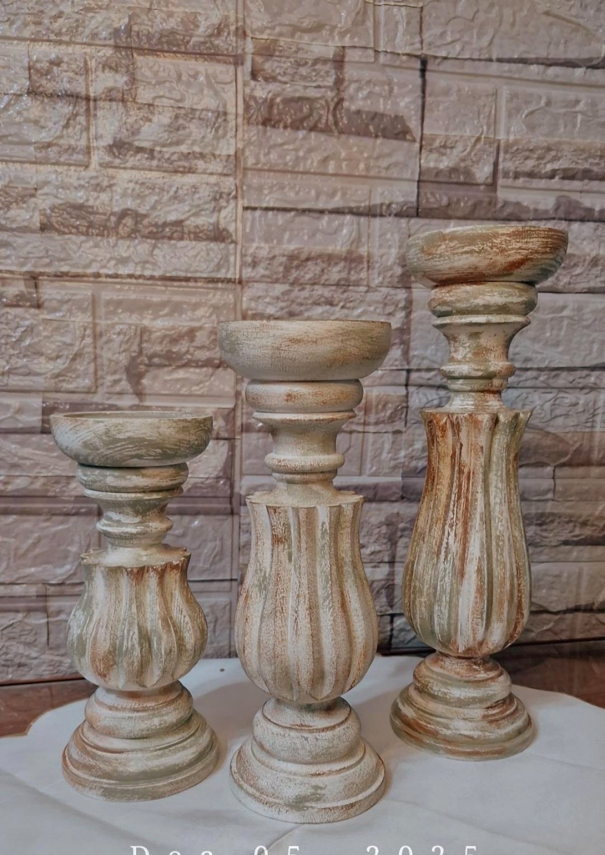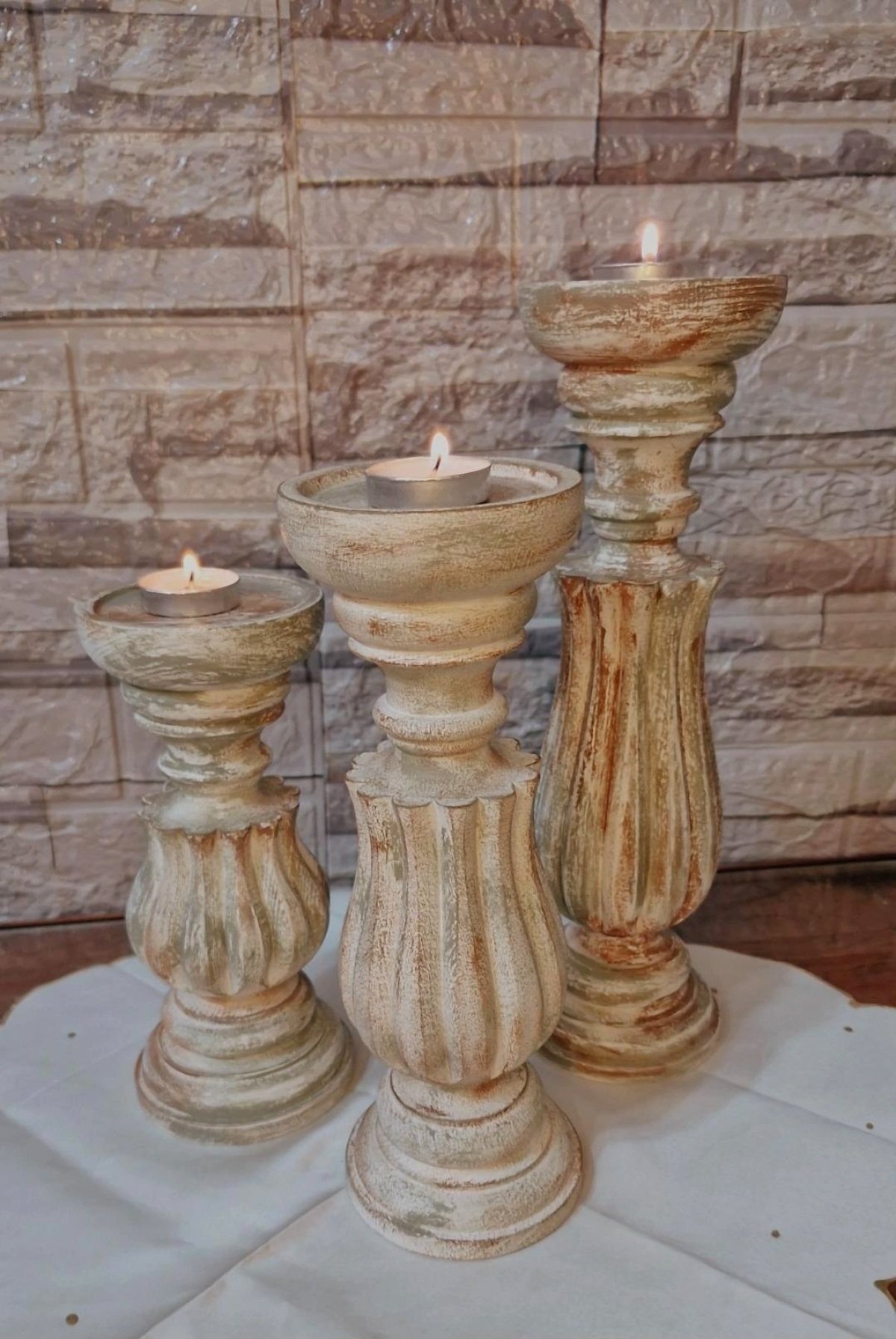3 pieces of beechwood candlesticks in different sizes