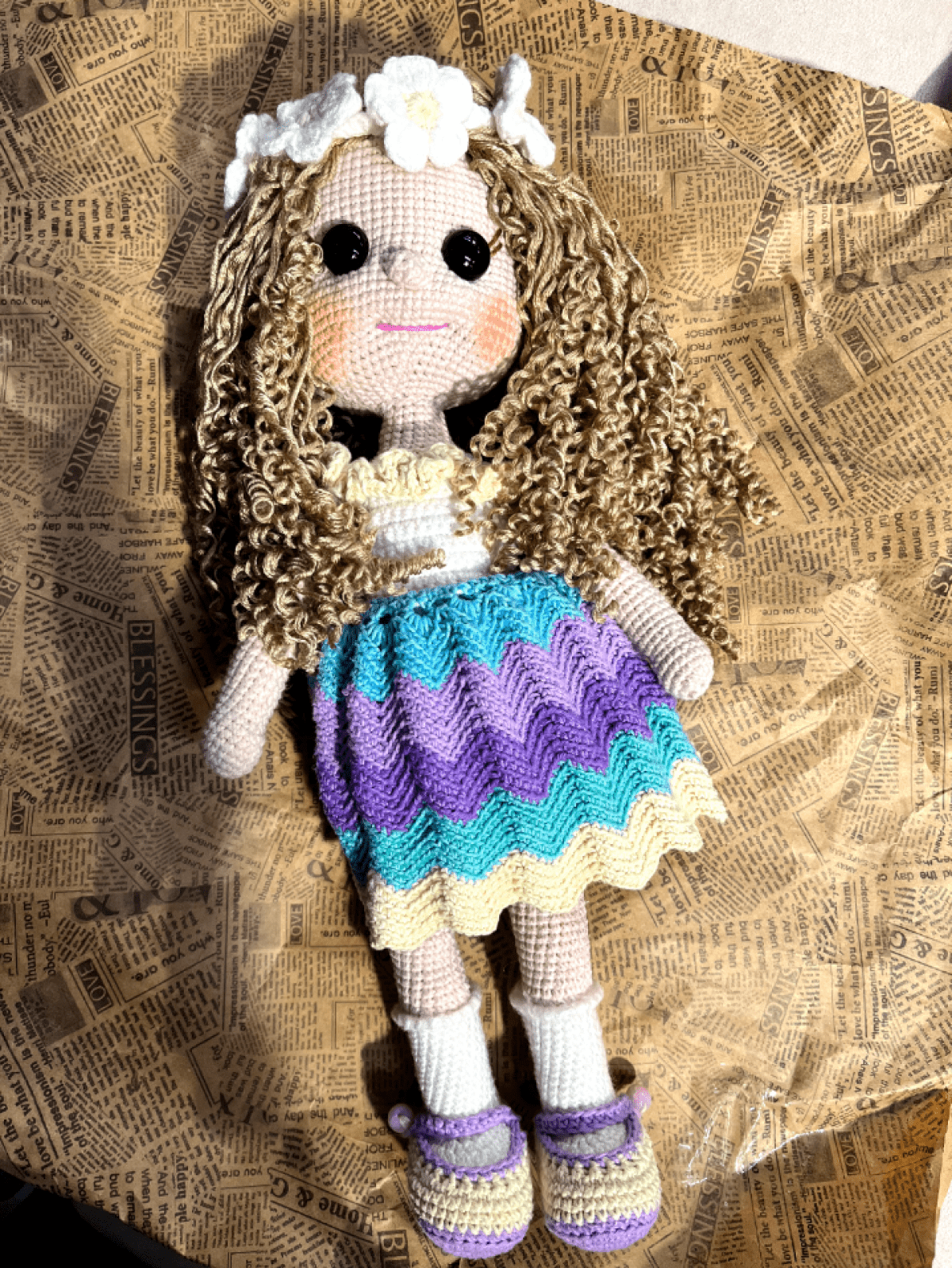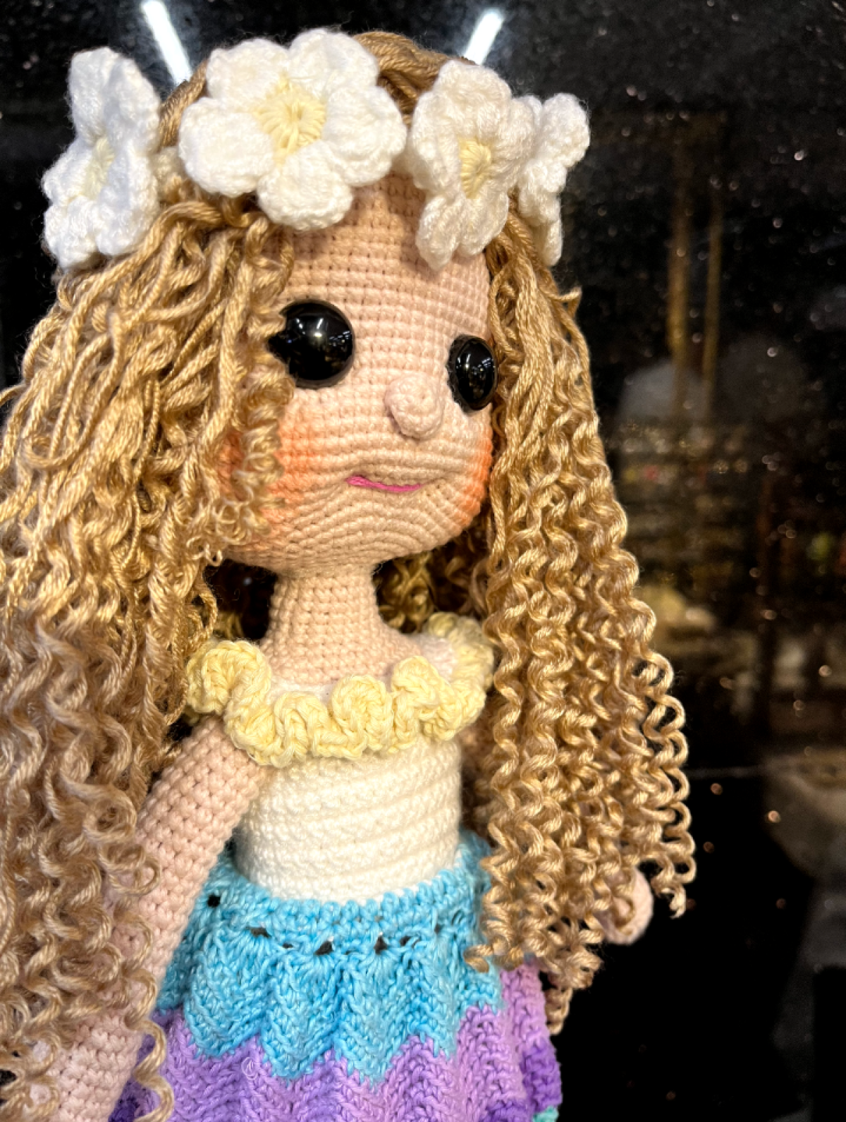 Amigurumi doll, 35cm long, made with high-quality cotton thread and wire reinforcement.