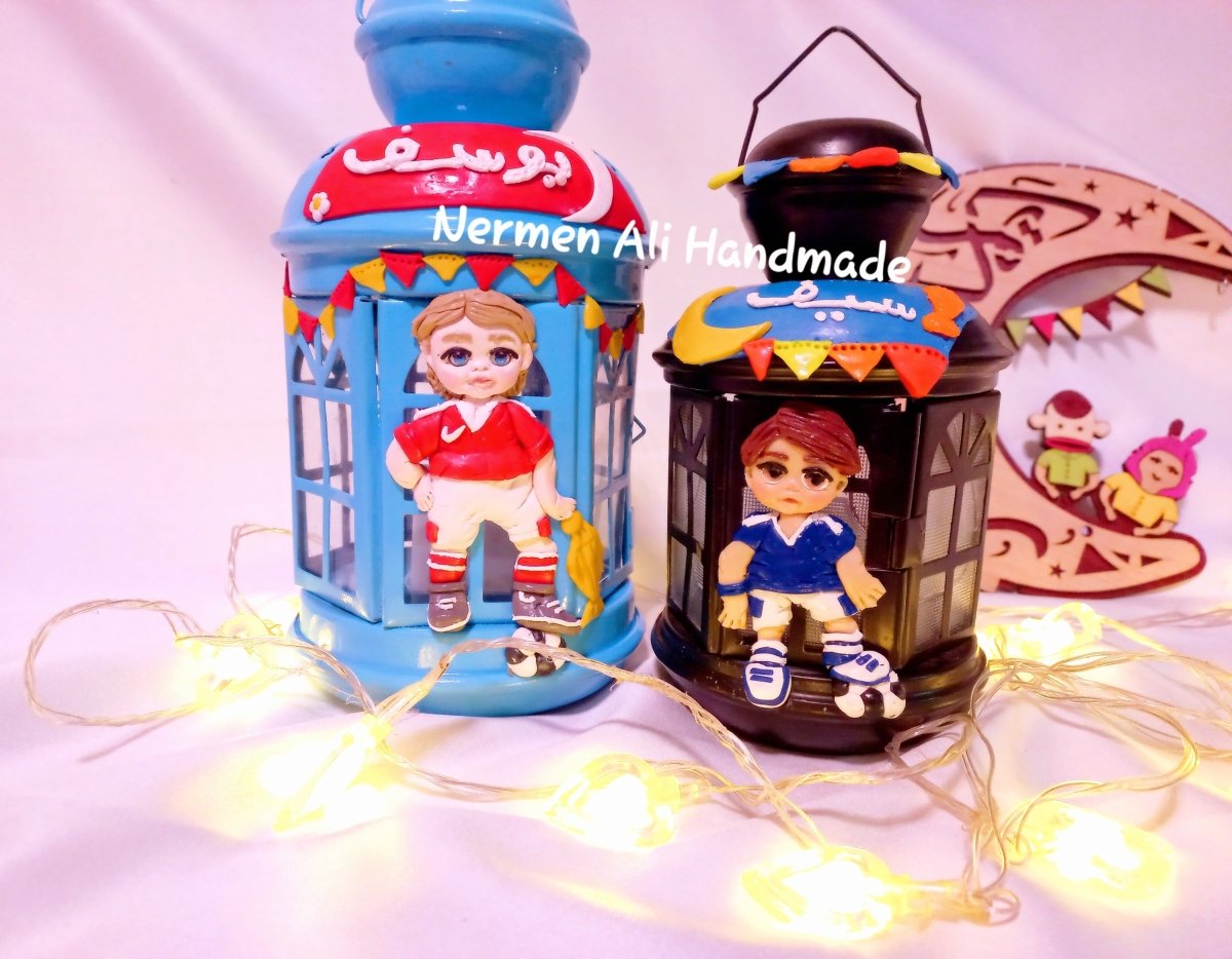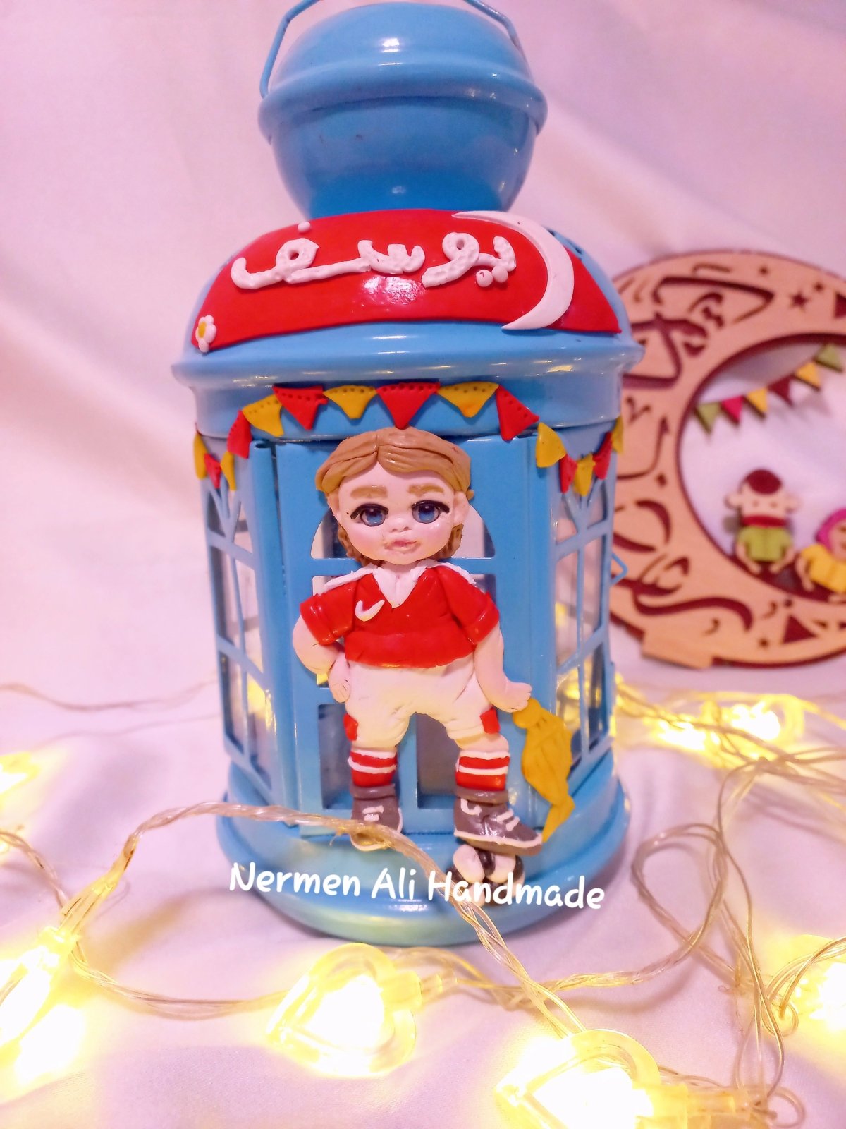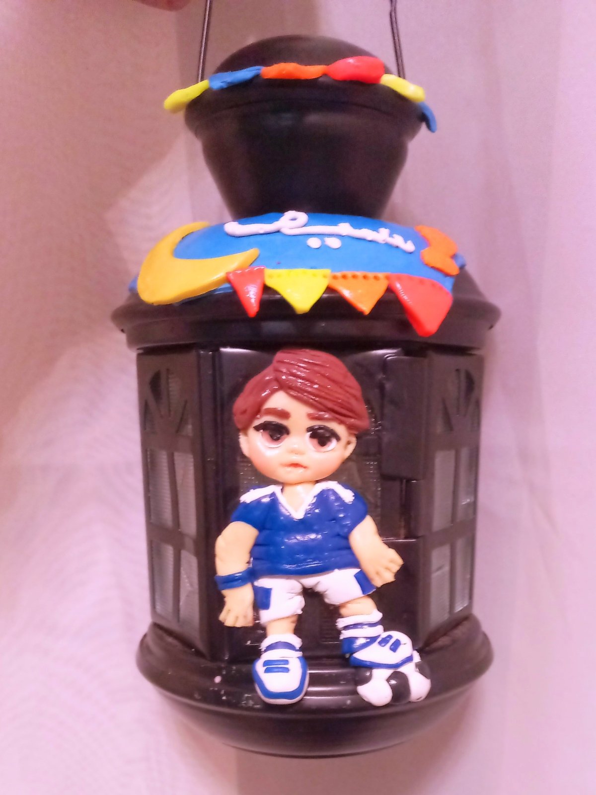 Handmade Ramadan lantern made of polymer clay with the child's name and favorite character.