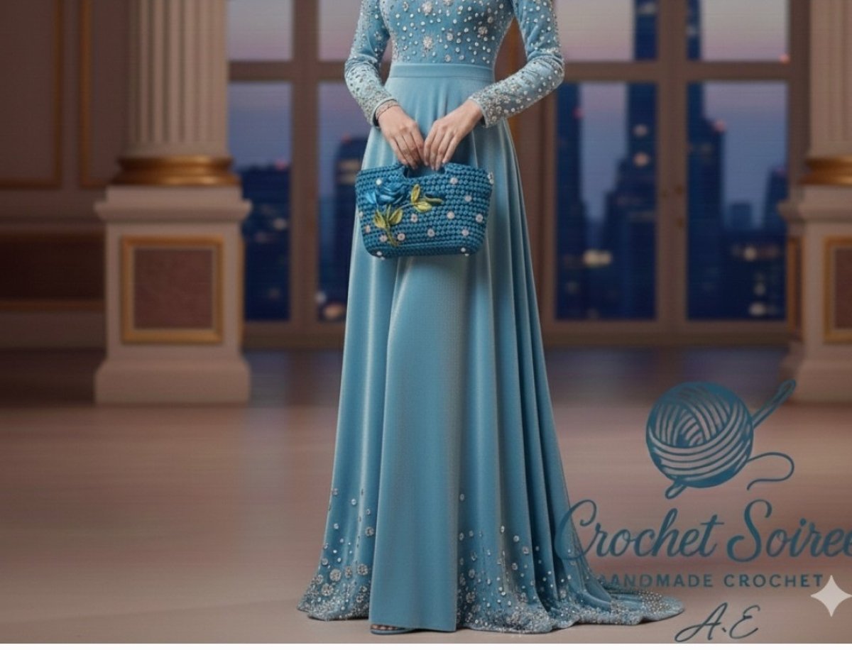 Soiree bag size 20*18 Metallic threads and embroidery with satin ribbons Lined inside