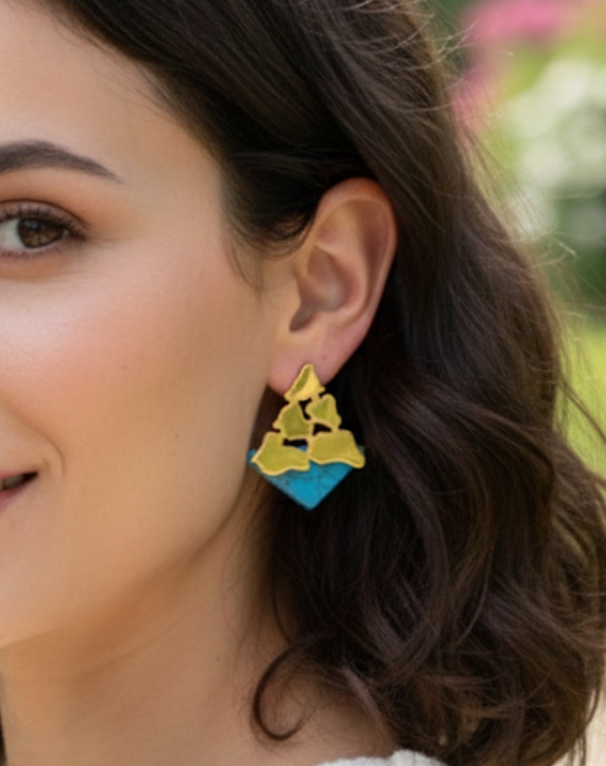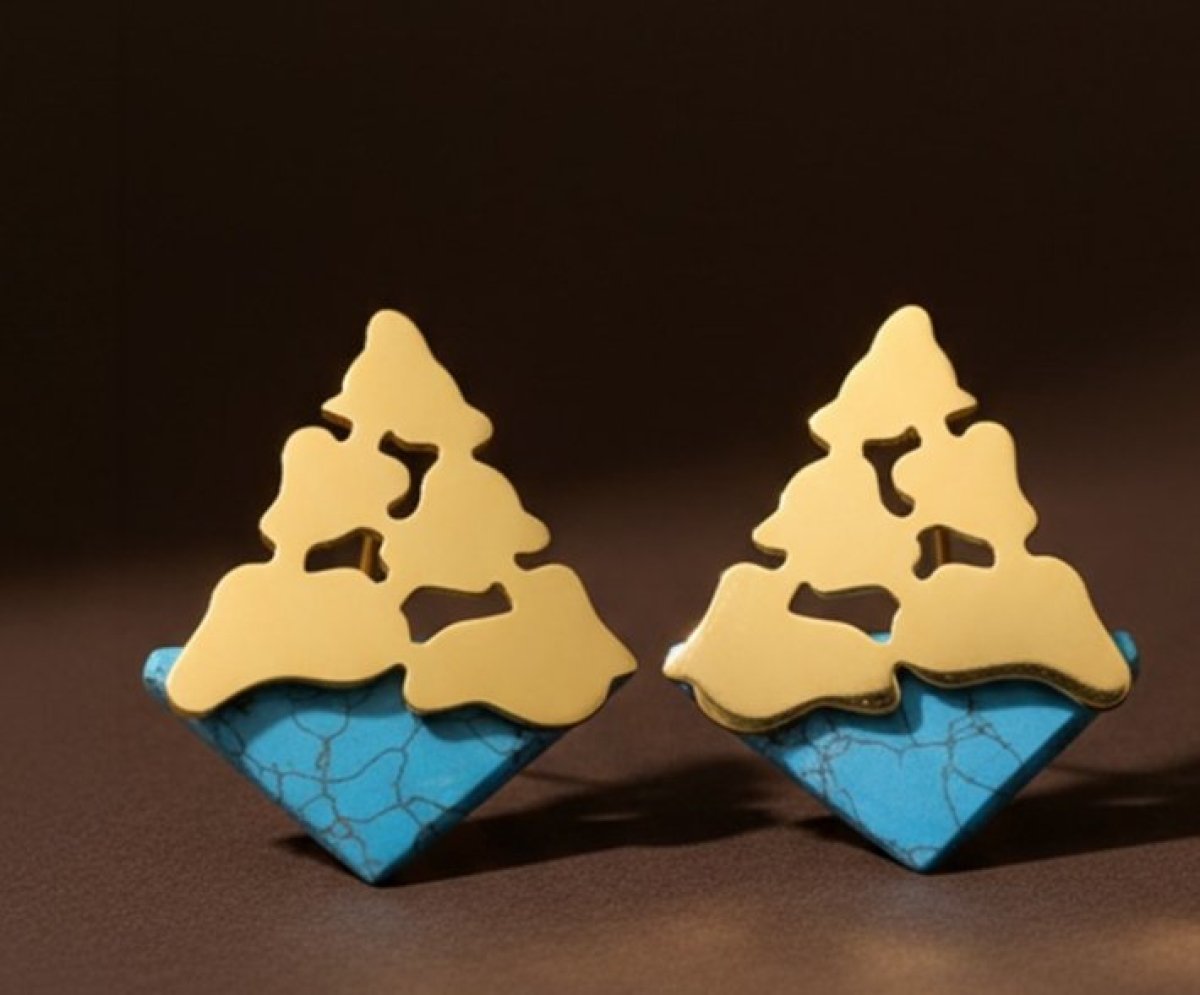 الحلق نحاس مطلي دهب عيار ١٨ مع حجر الفيروزي متاح تغيير لون الحجر