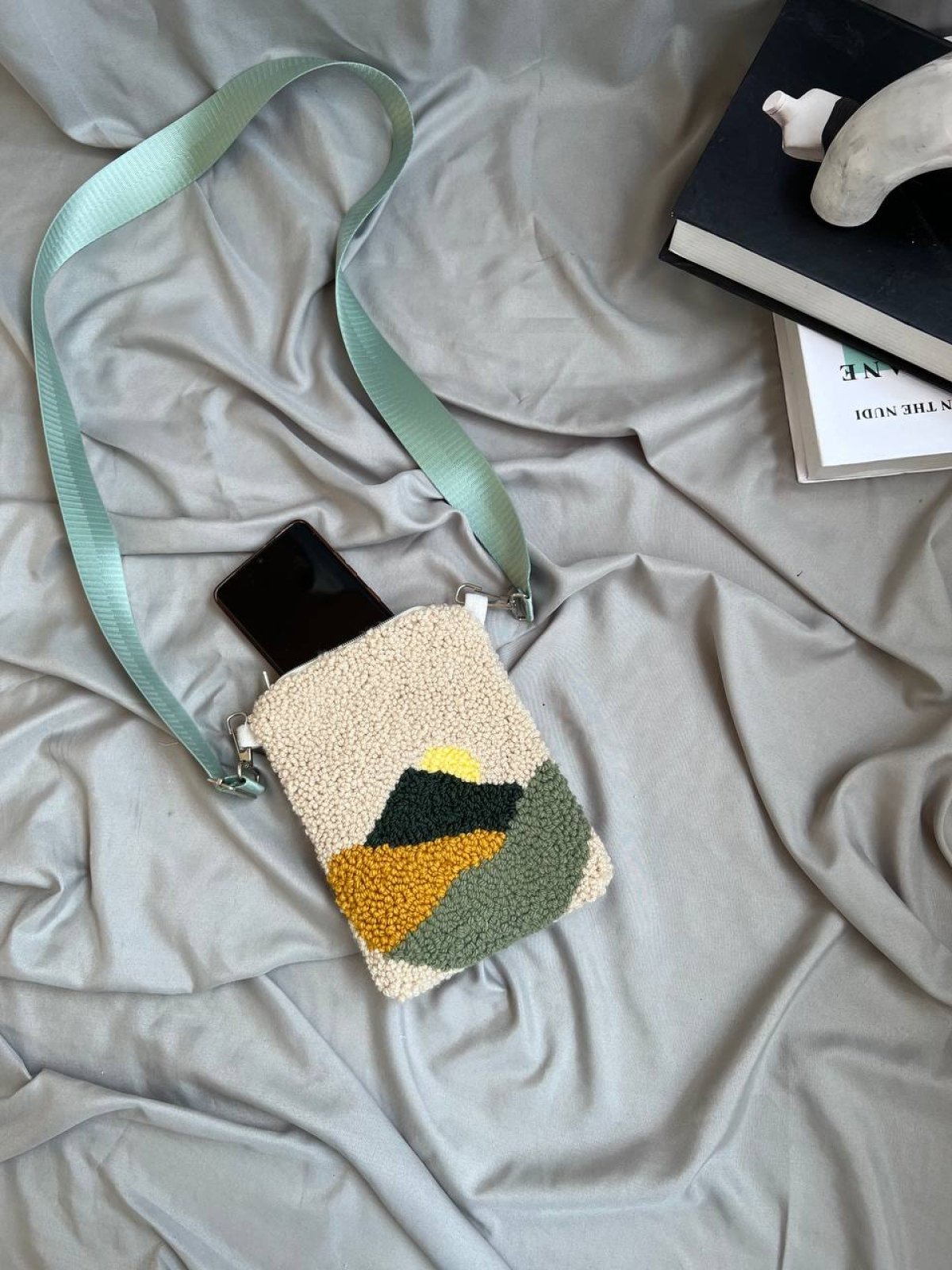 شنطة موبايل كروس هاند ميد 100% 🧵 تصميم مستوحى من الطبيعة ألوان بيج × أخضر × موستارد × أخضر غامق تفصيلة مختلفة وتليق مع اللوك الهادي ✨