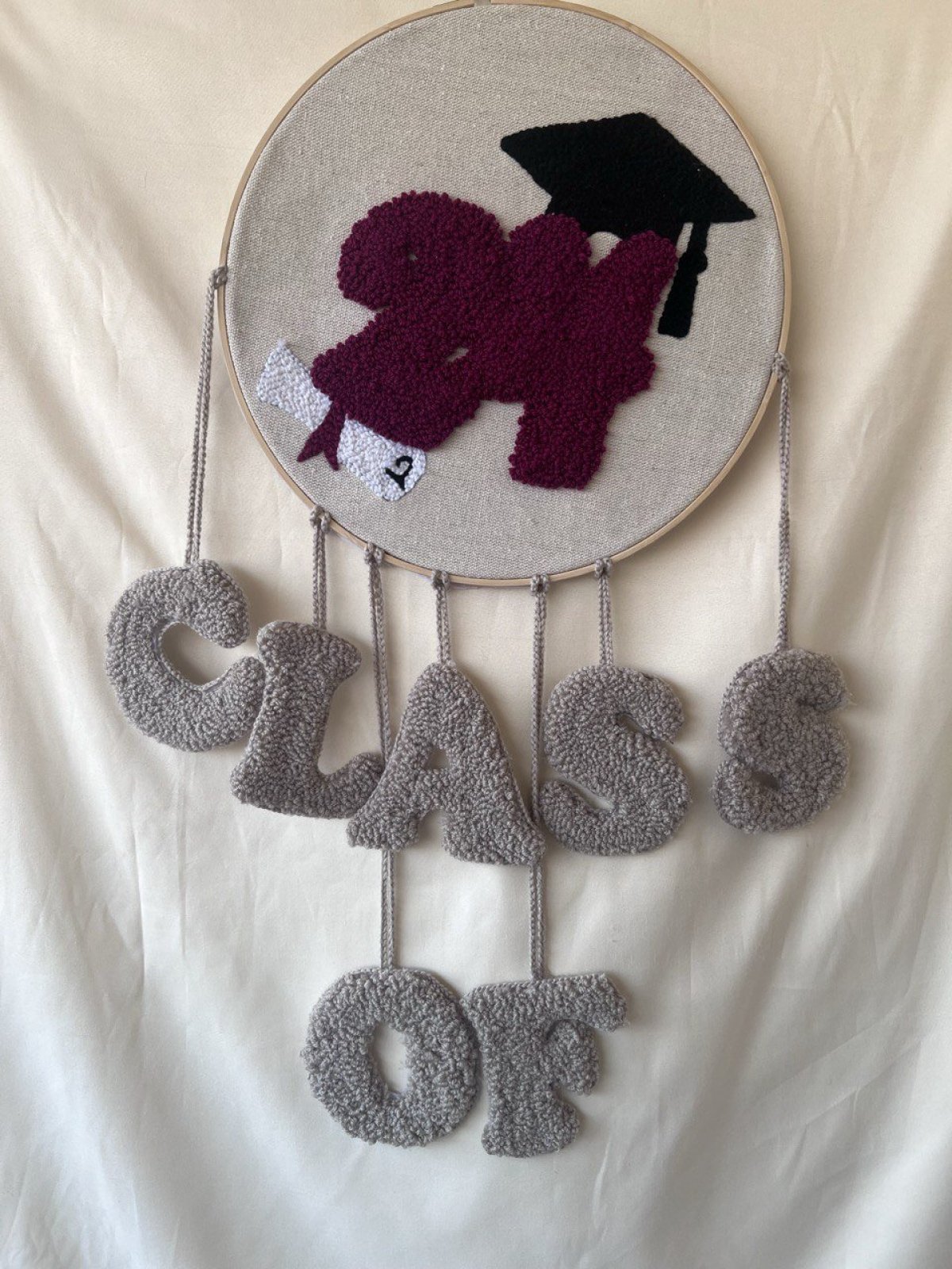 تابلوه بانشنيدل هاند ميد 🎓 تصميم قبعة التخرج مع الشهادة ألوان نبيتي × رمادي × أسود تناسق شيك وهادي يليق بأي ديكور ممكن تنفيذ الاسم حسب الطلب 🤍
