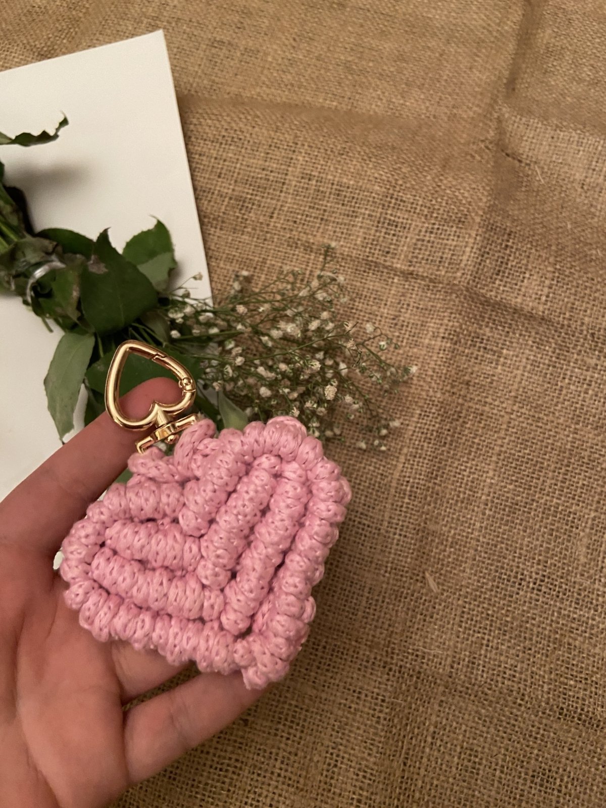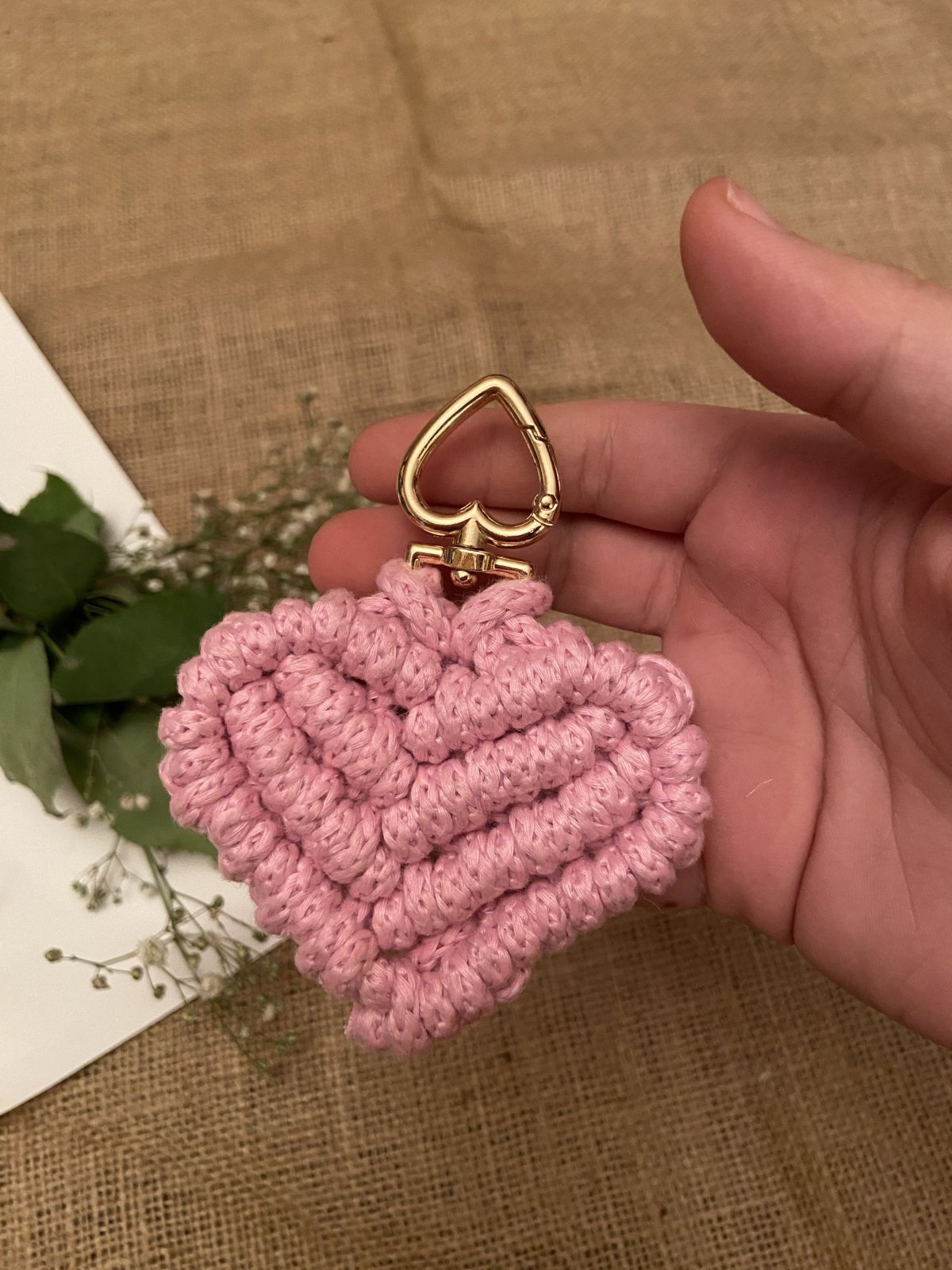 Macrame heart keychain