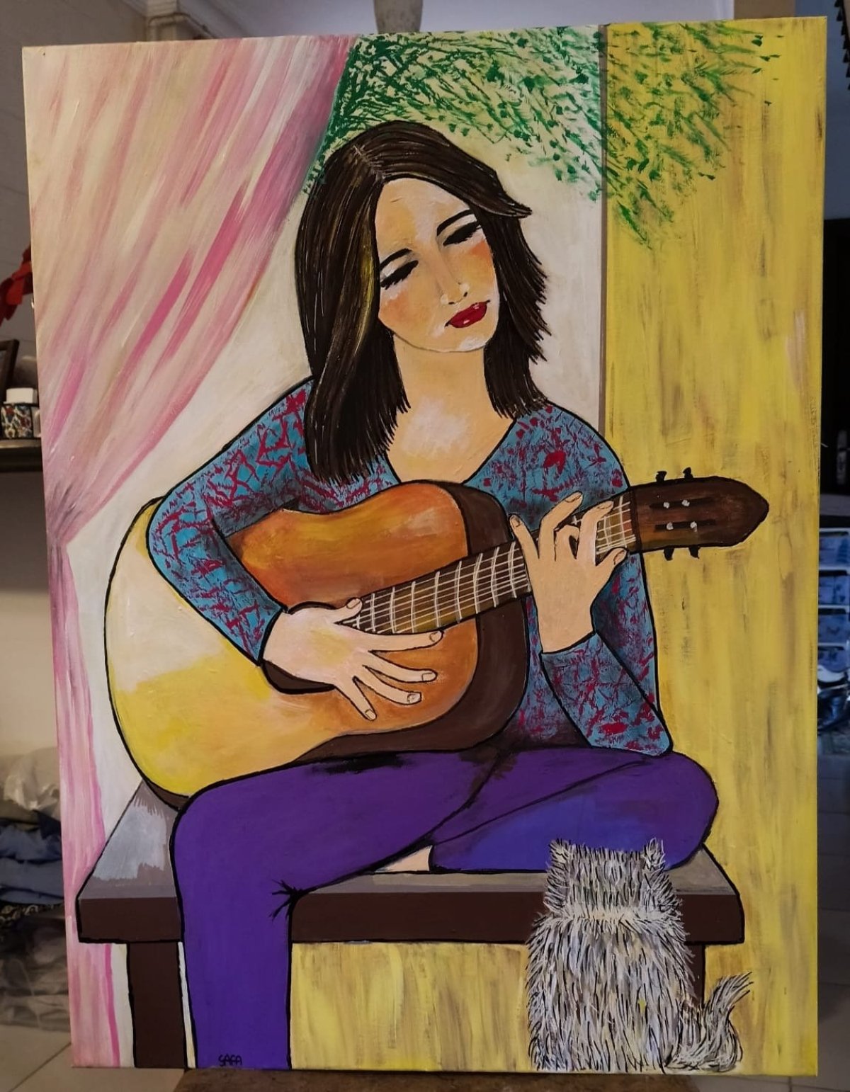 Painting under name ( Gutarist) Acrylic paints on Canvas Size 50x70