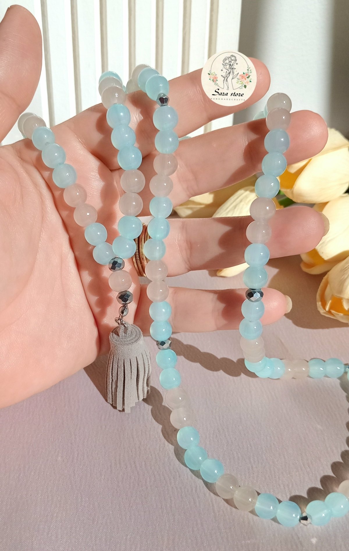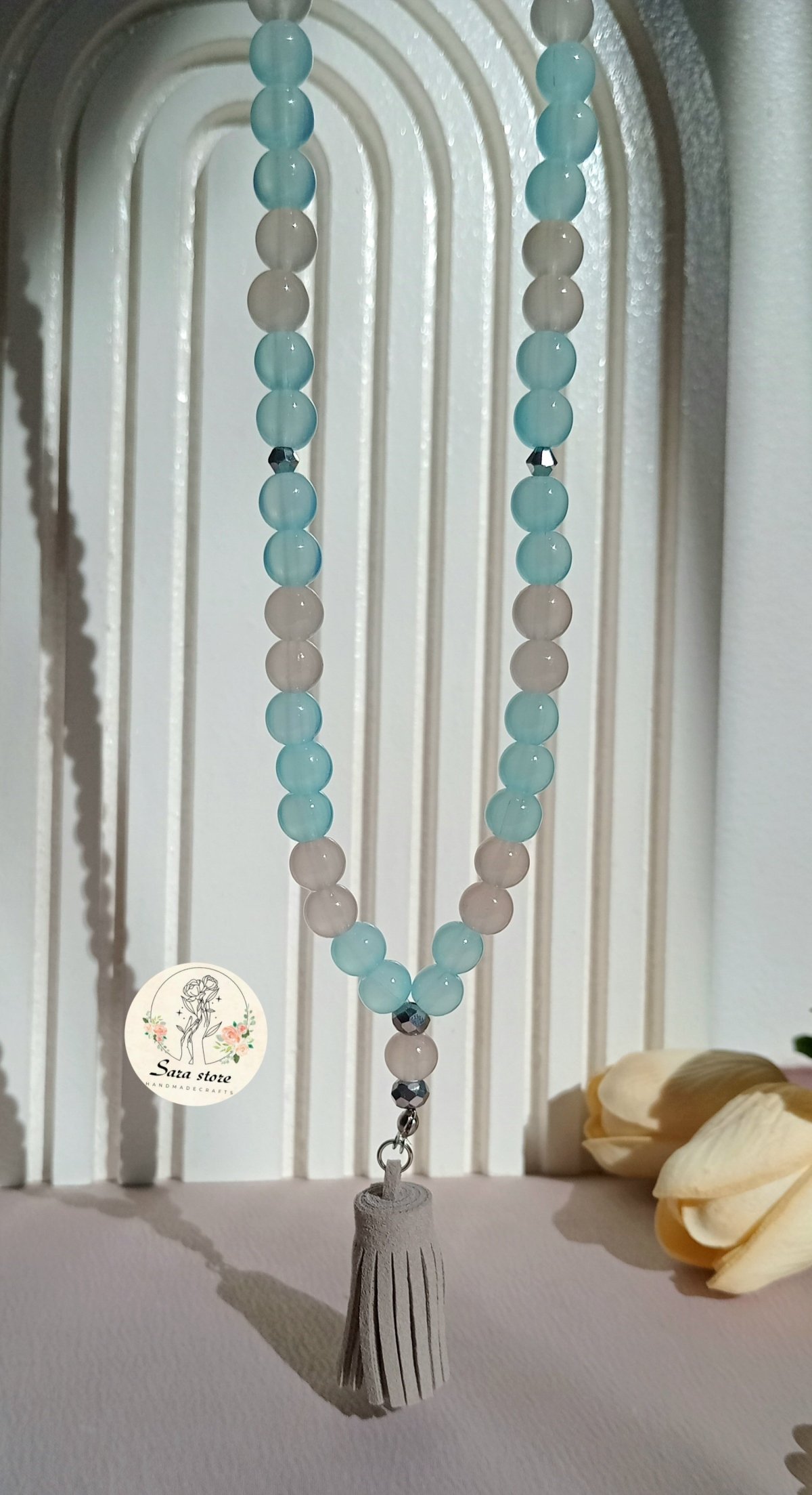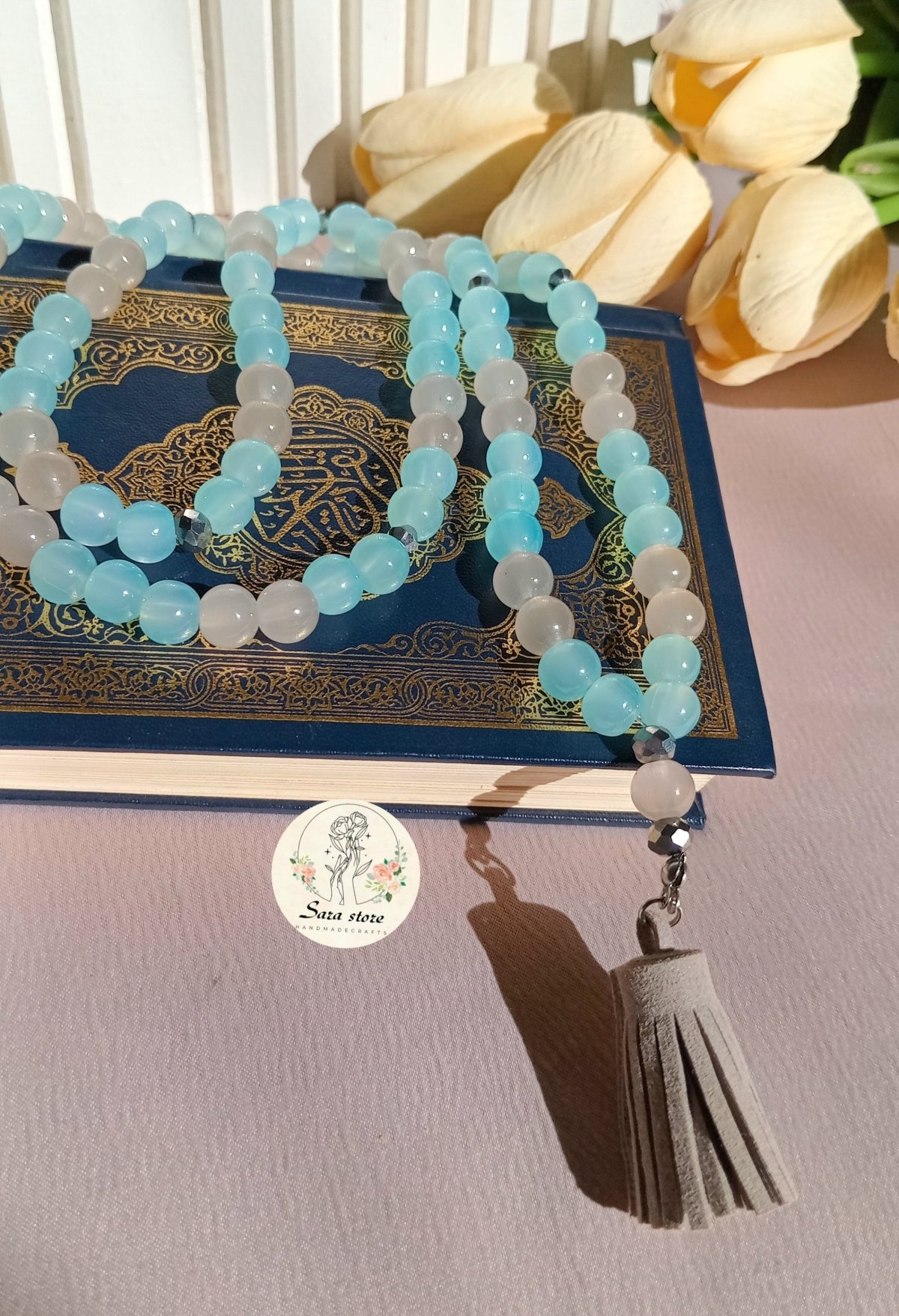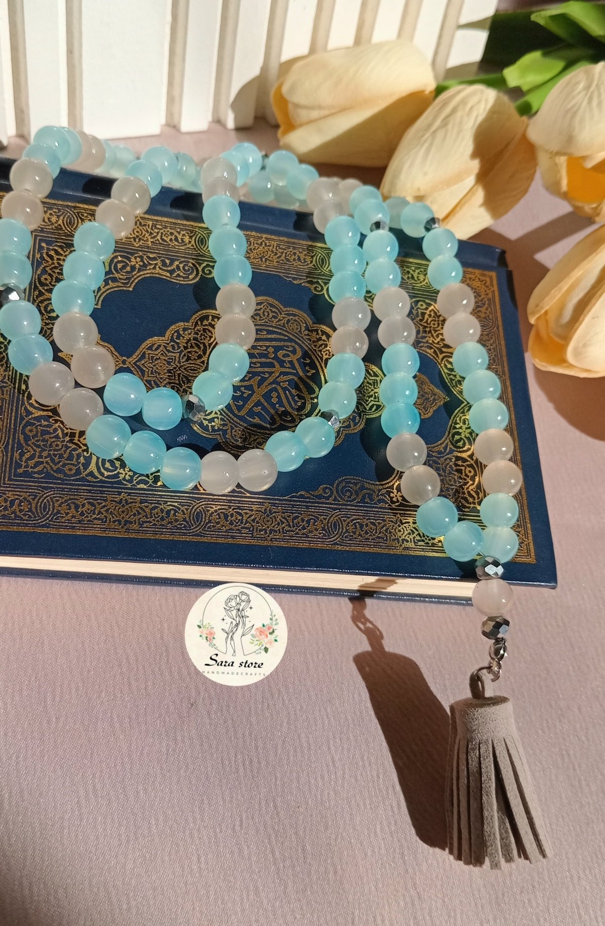 Handmade 99-bead prayer beads made from marble beads, featuring an elegant design and distinctive colors. Crafted with high-quality materials and a refined artistic touch for a sophisticated look. Can be used for daily prayer or worn as a necklace, making it a versatile piece that combines spirituality and elegance.