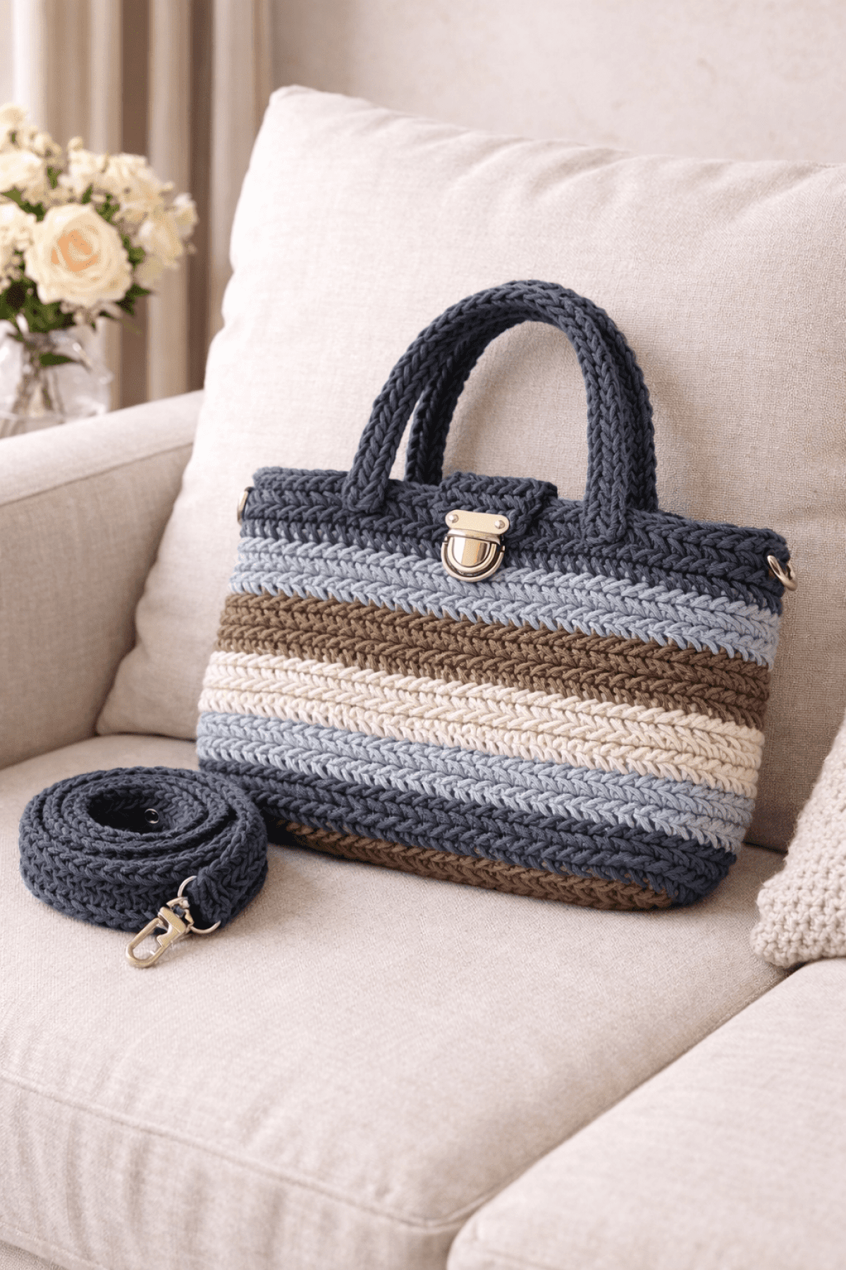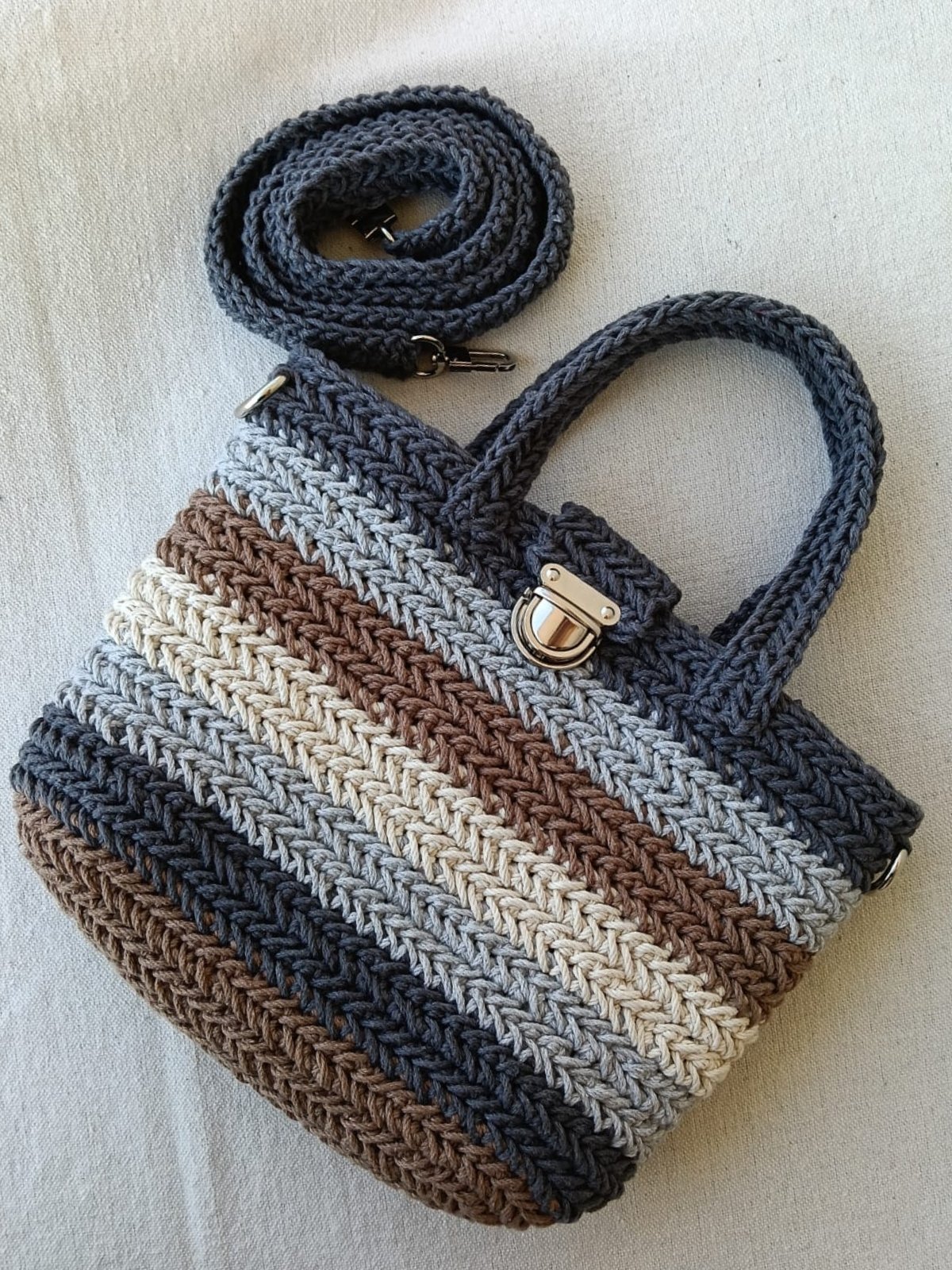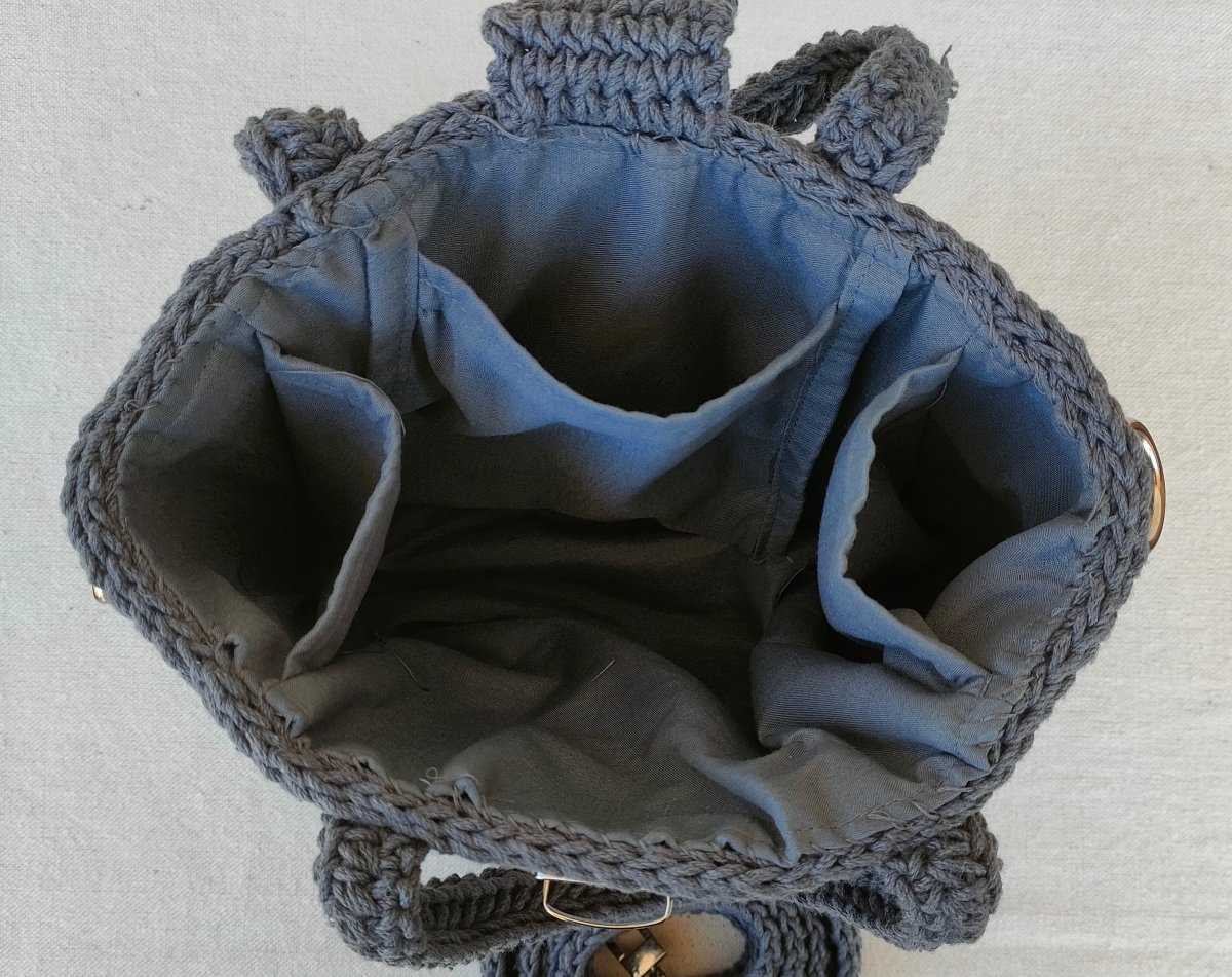 Crochet bag with cotton yarn. cotton lining Size: 30 x 35 cm