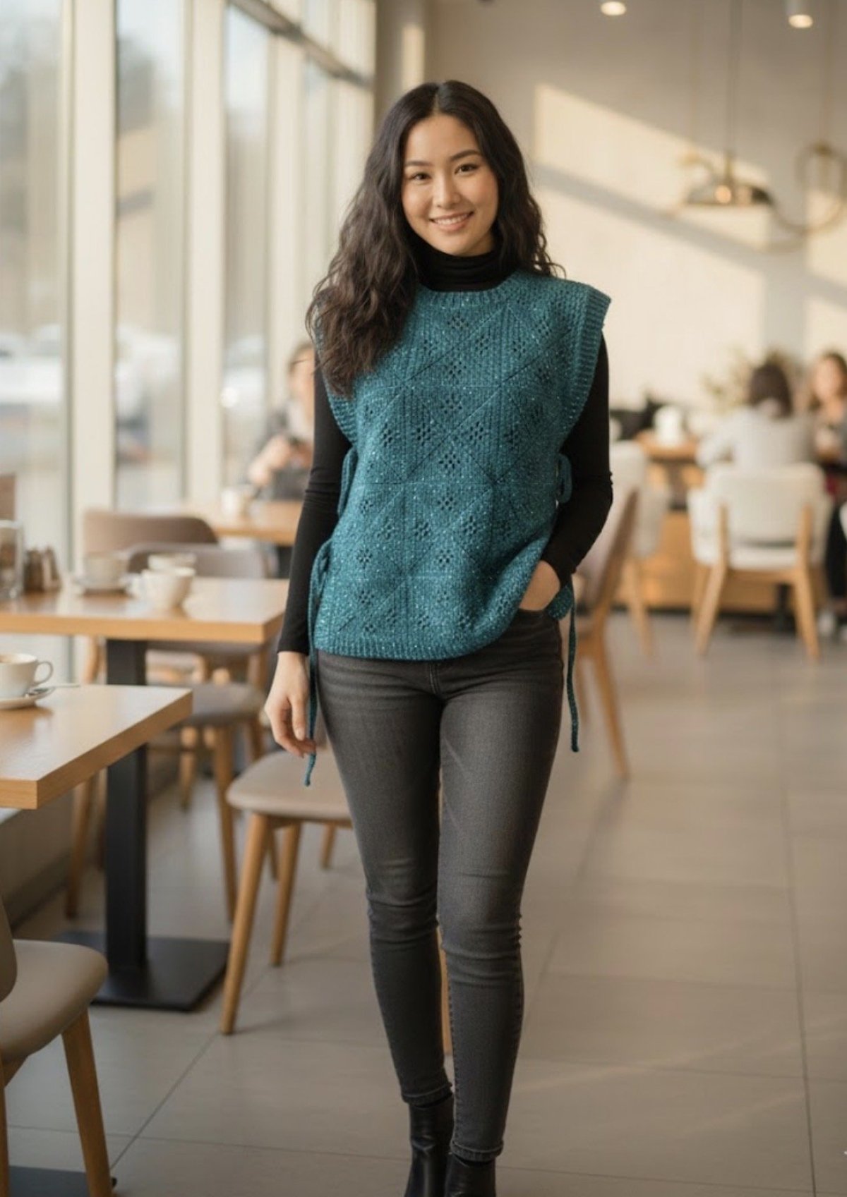 Open crochet vest,size 80*55cm