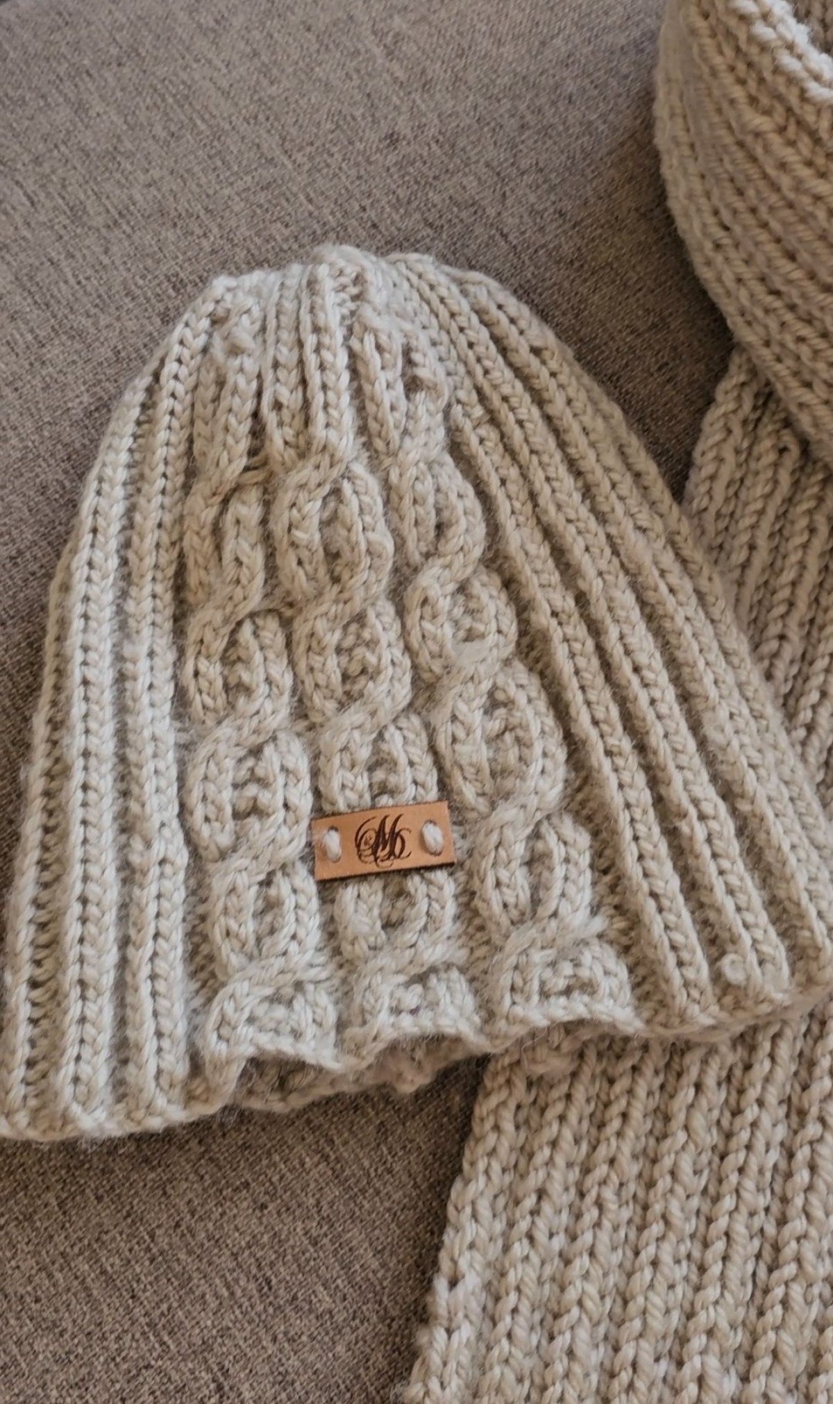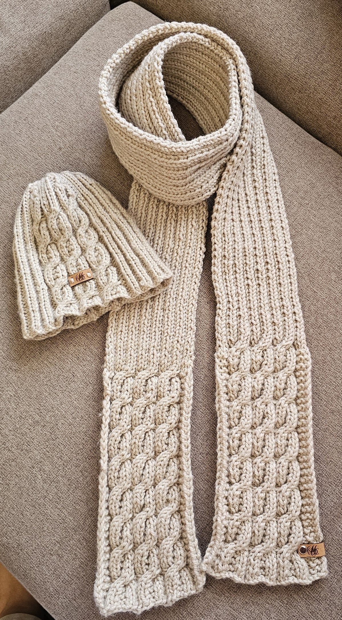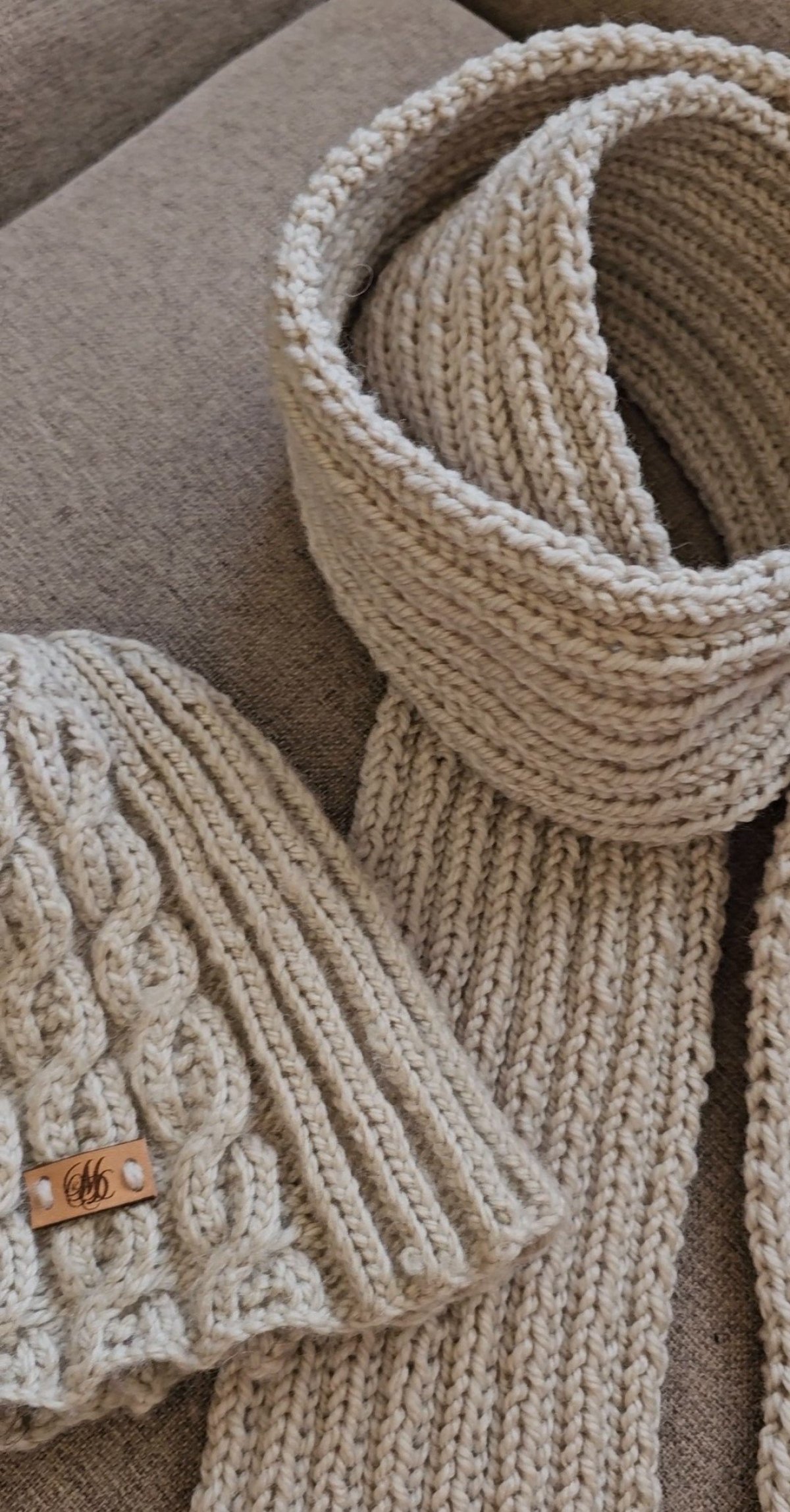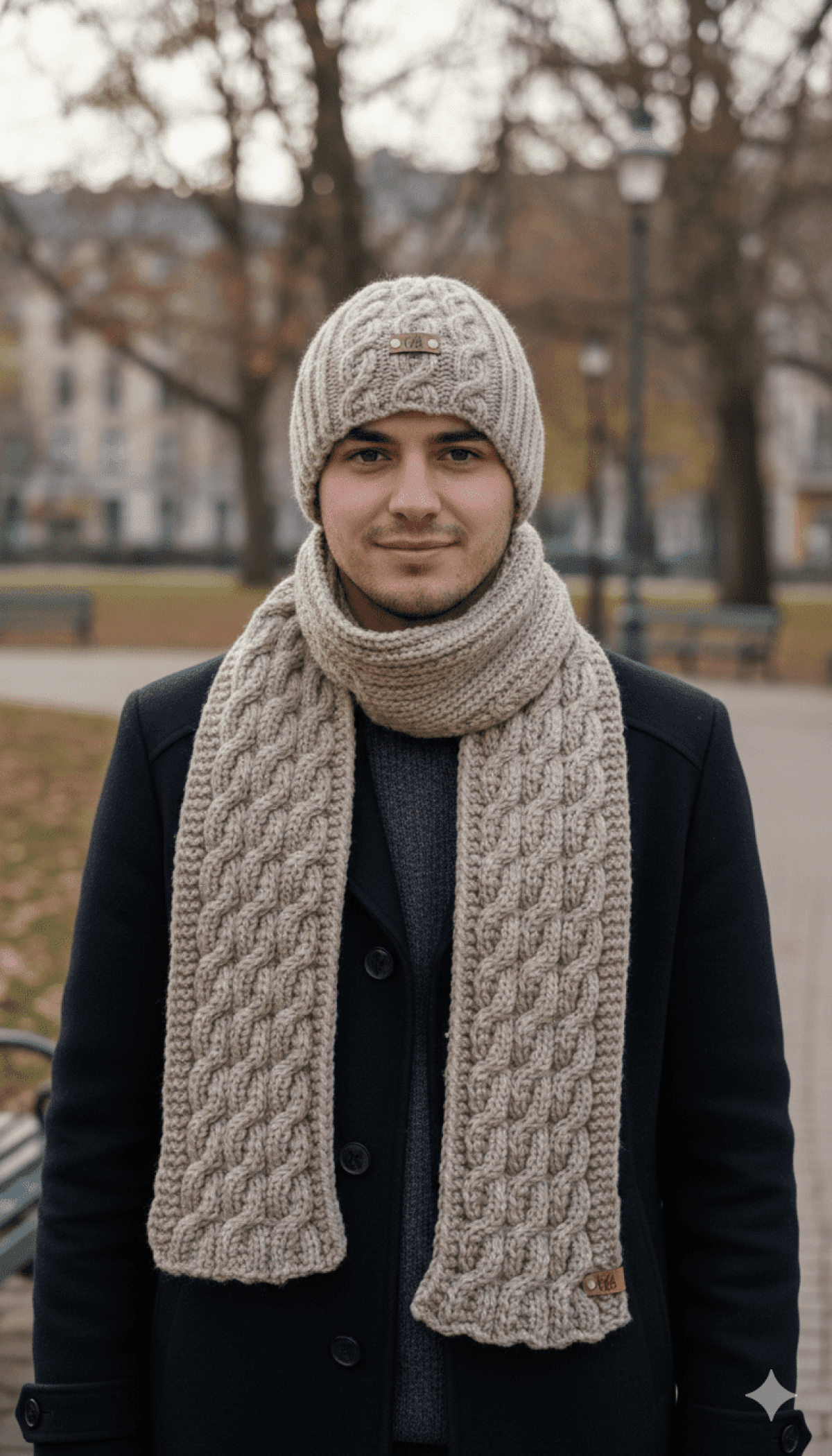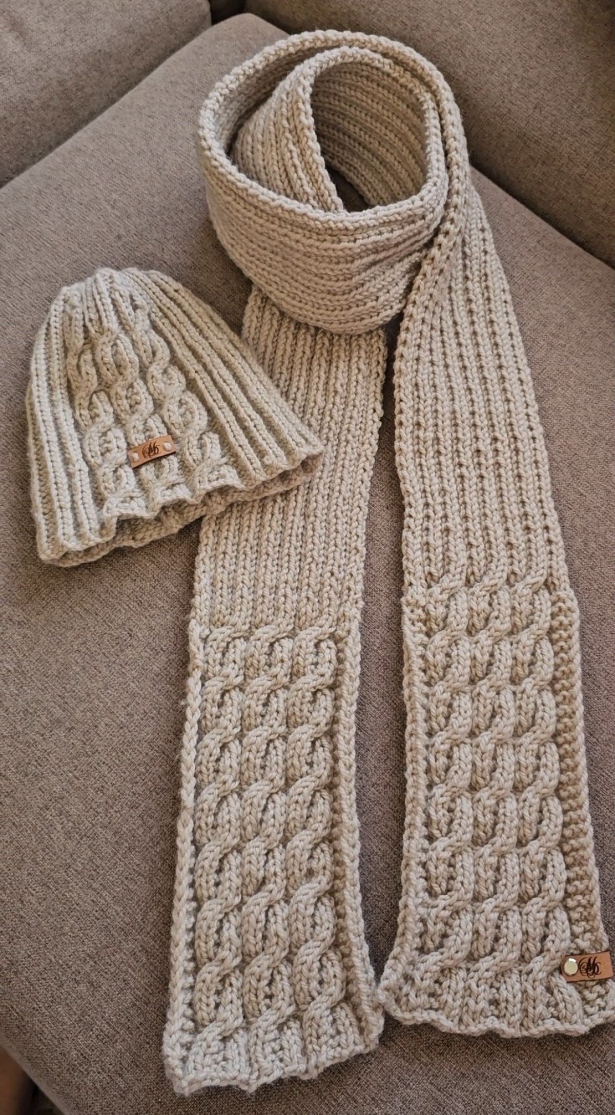 Men's Knitted scarf and Crochet Hat made of 100% Alpaca wool yarn. The Scarf is 225 cm