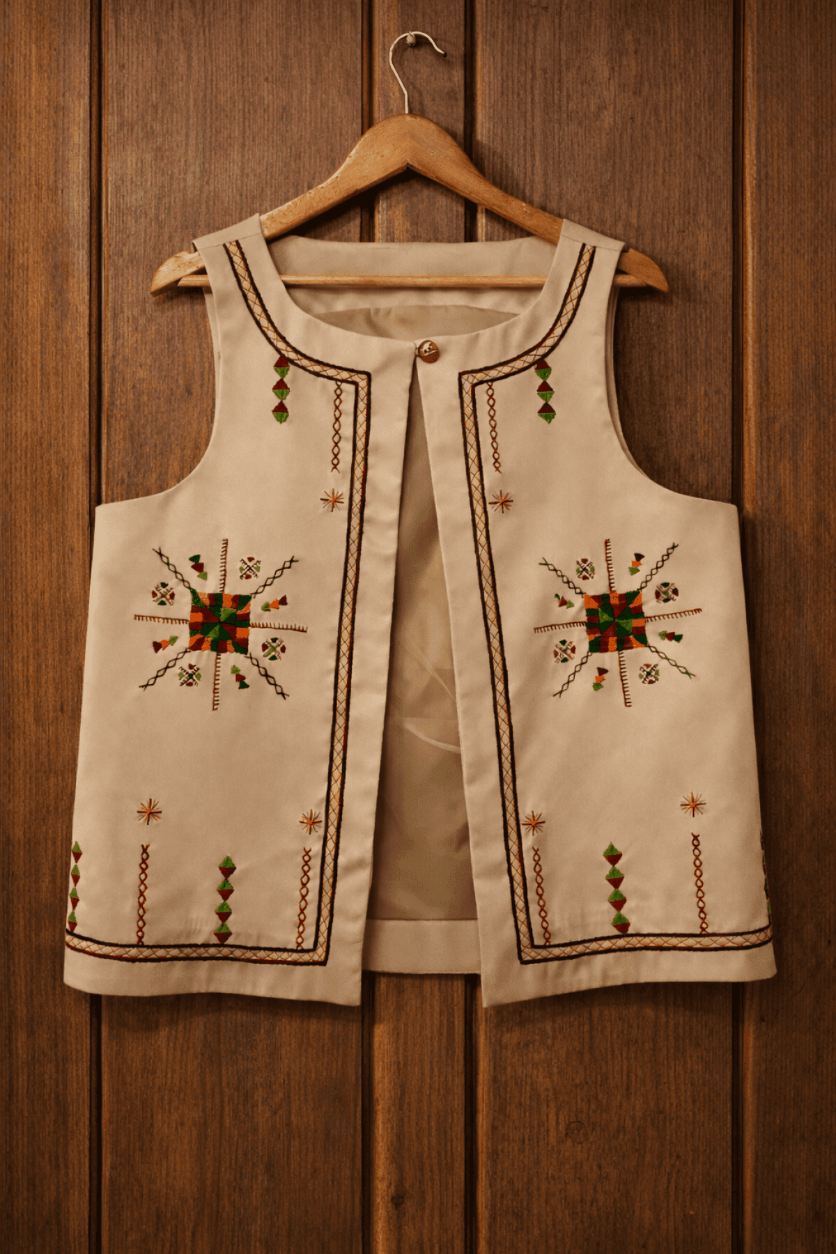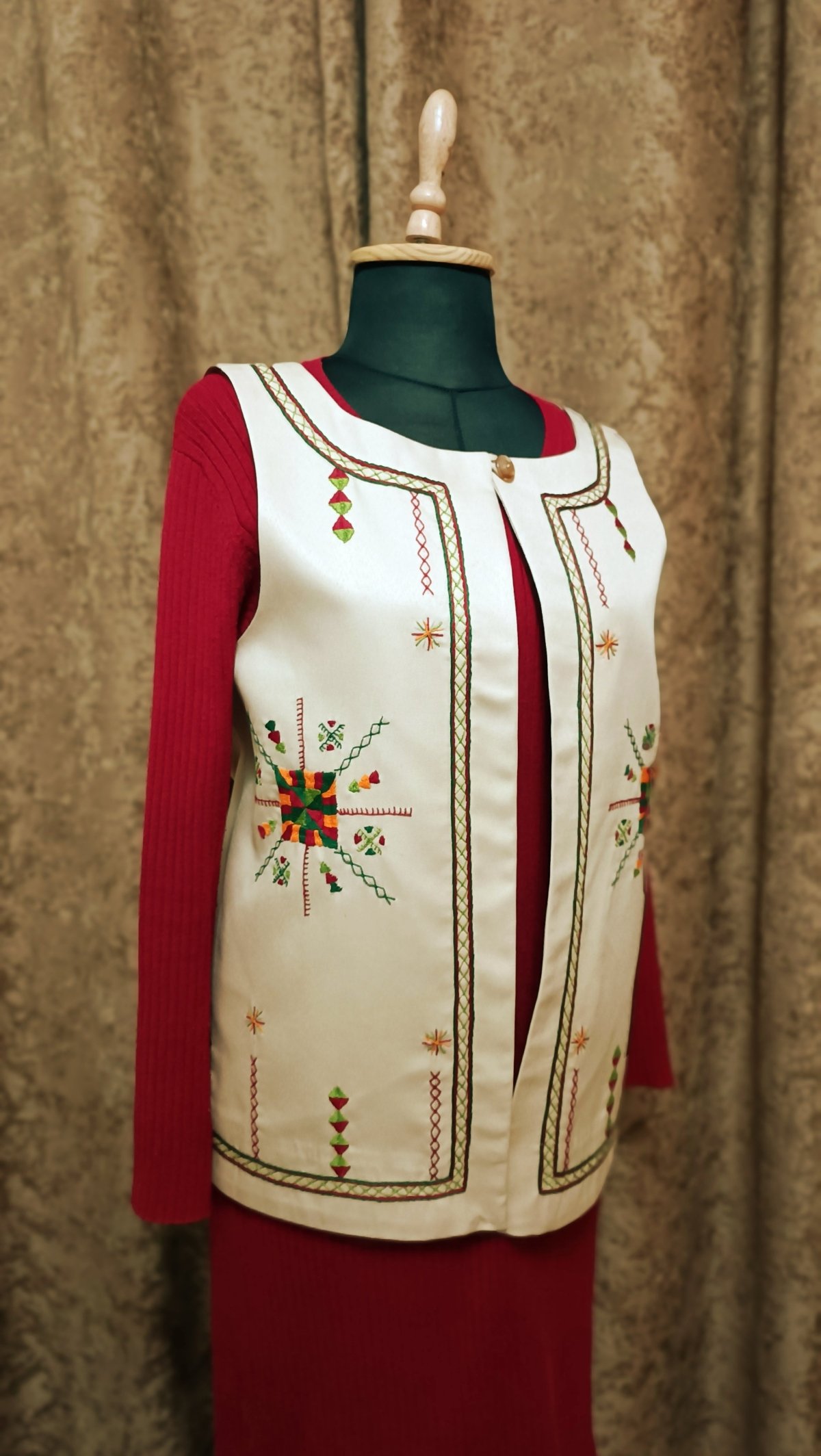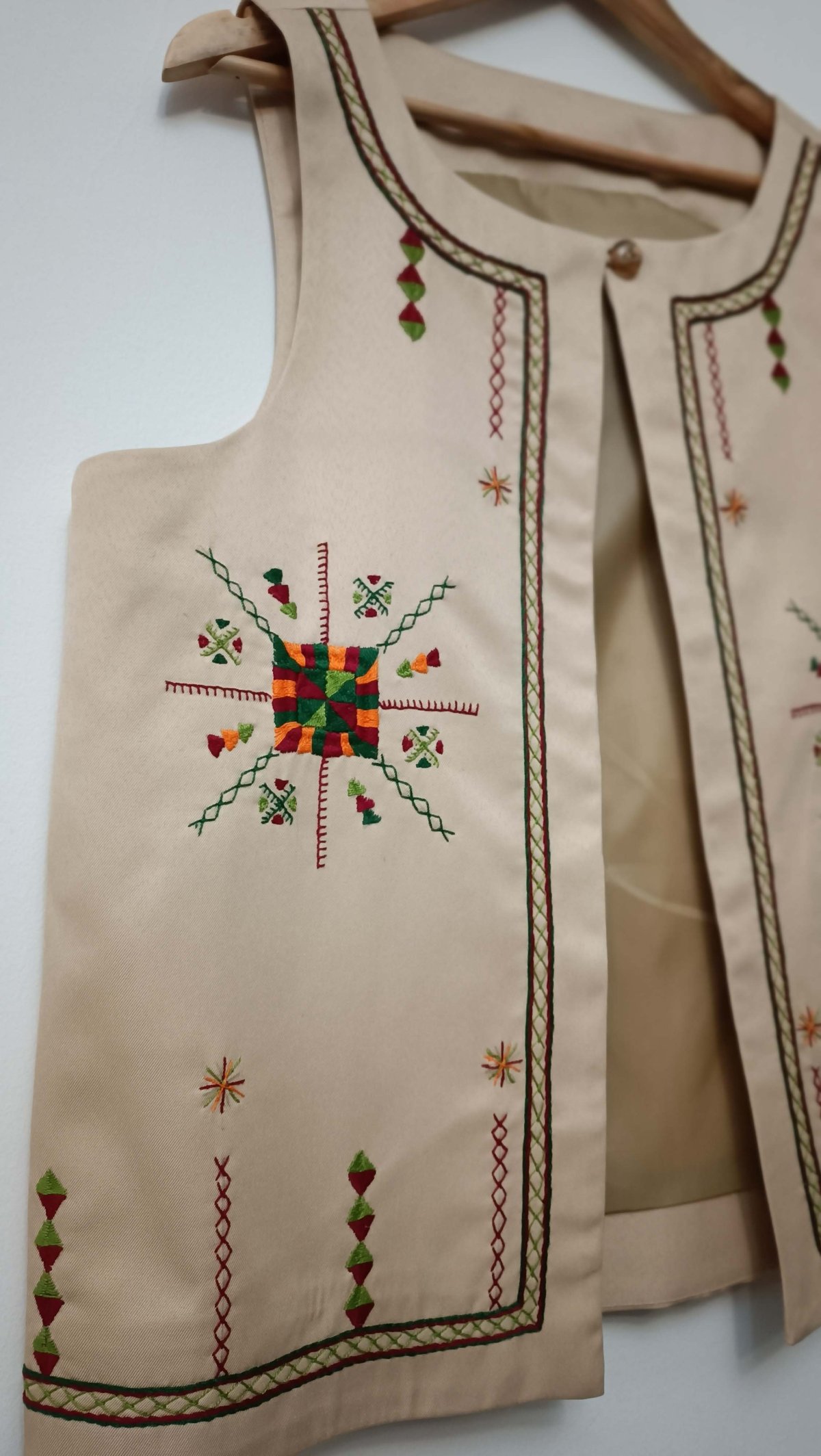 Hand-embroidered vest from Siwa gabardine fabric ,fully lined size:L-XL Length/65 width/55