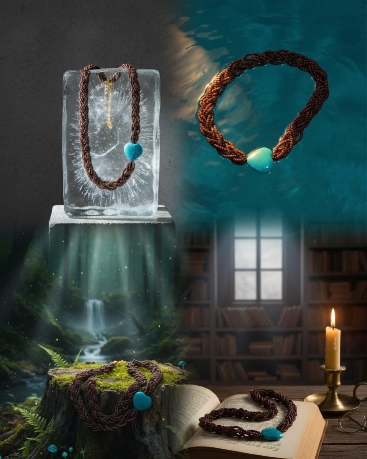 🩵🩵💎Turquoise heart necklace💎🩵🩵 Braided brown beads necklace with a distinctive turquoise heart A calm touch of color highlights your elegance in any look