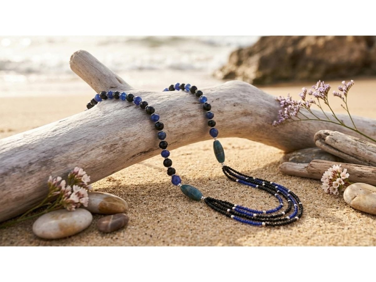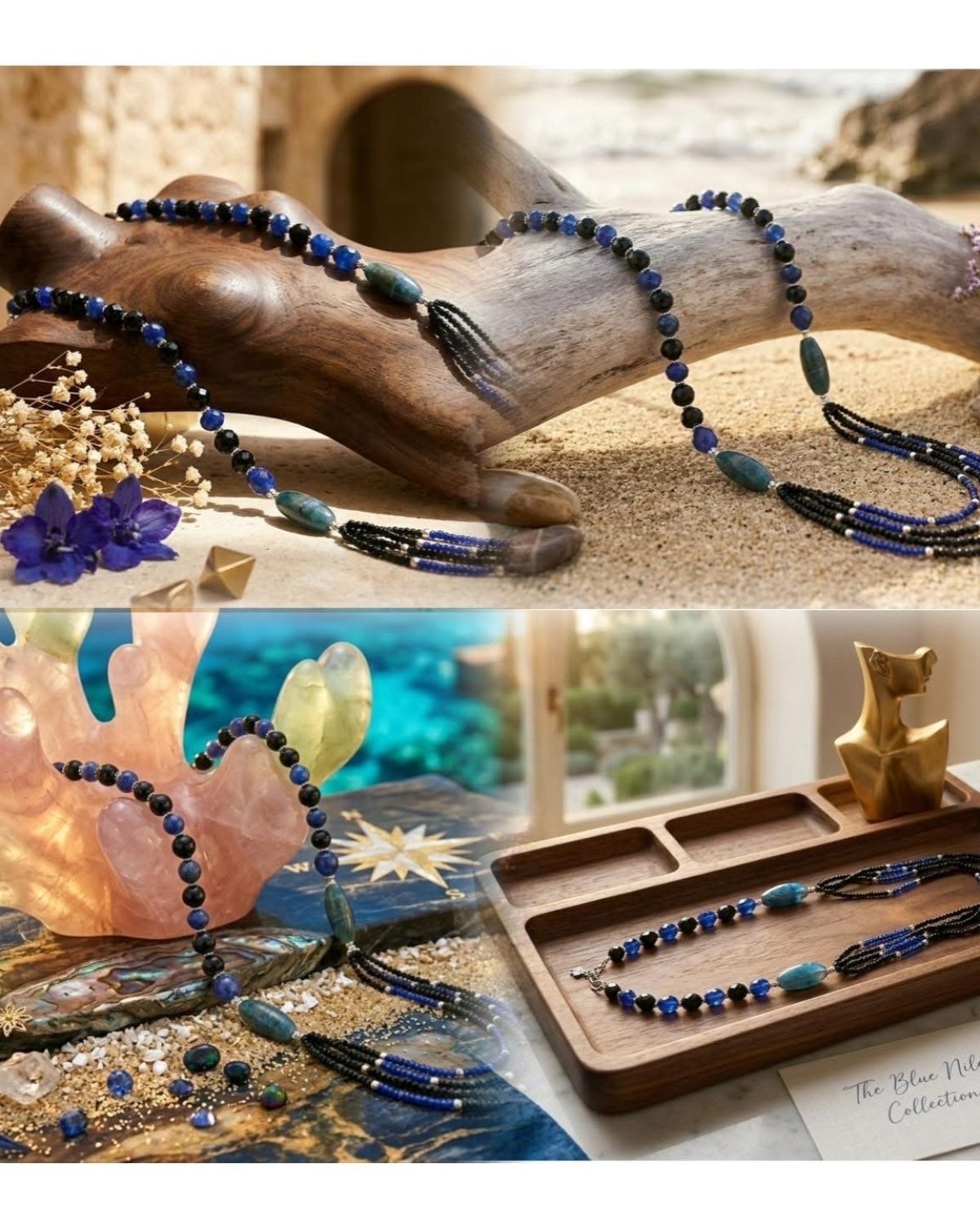 🩵🩵🌊Blue Nile necklace 💎🩵A touch of elegance in blue A handmade beads necklace that adds a distinctive touch to your look, made of blue and black agate inlaid with agate stone that combines the two colors. Several layers of navy blue and black beads hang from it with silver bracelets. In order to increase your brilliance and unique distinction, it is made especially for you 😉