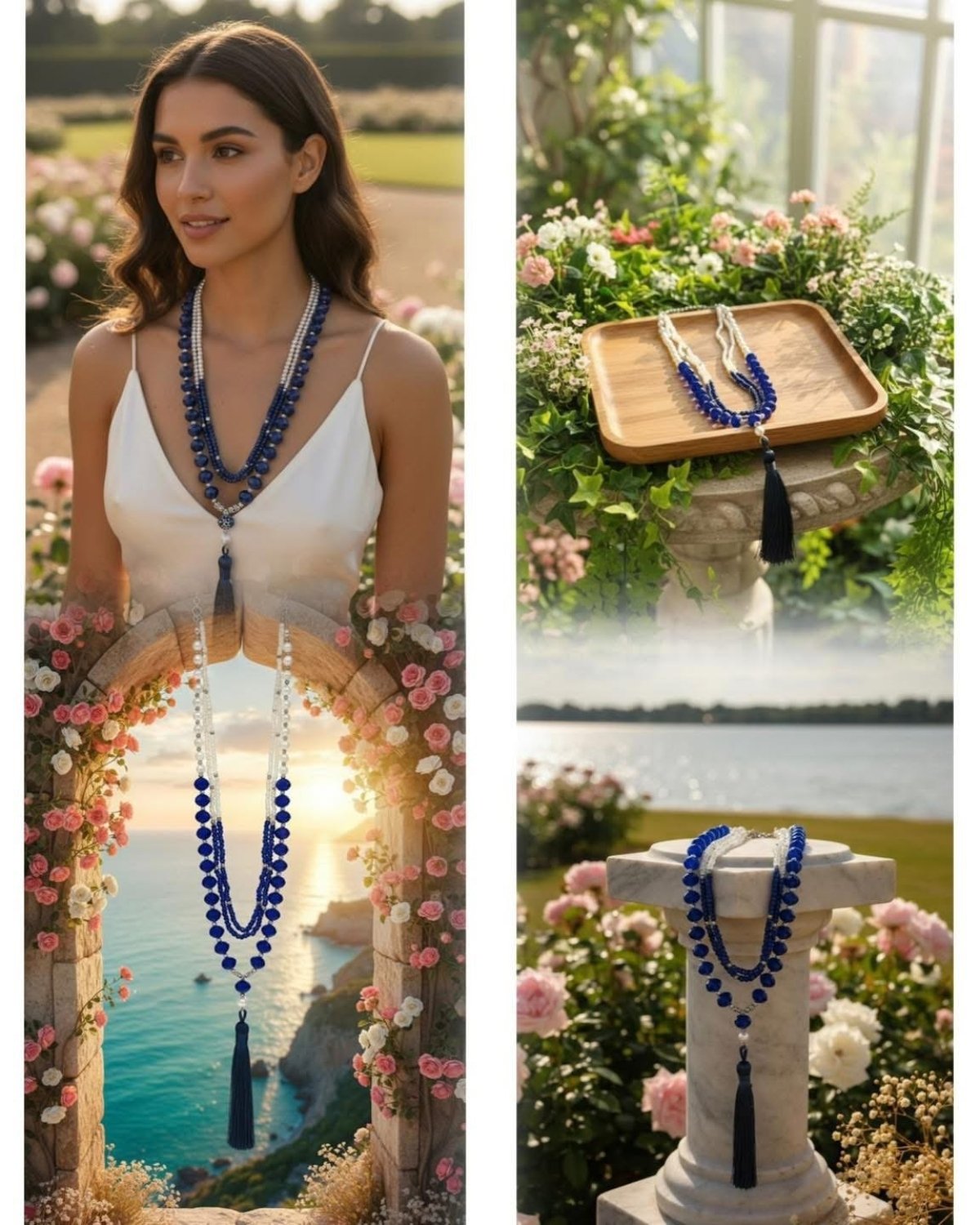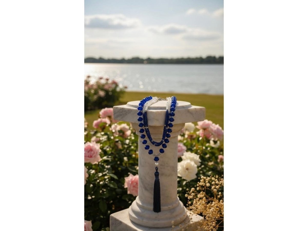 🩵🩵 Royal blue tassel necklace 🩵🩵 Multi-layer handmade design It combines pearls and royal blue crystal for a distinctive look that ends with a blue whisker💙