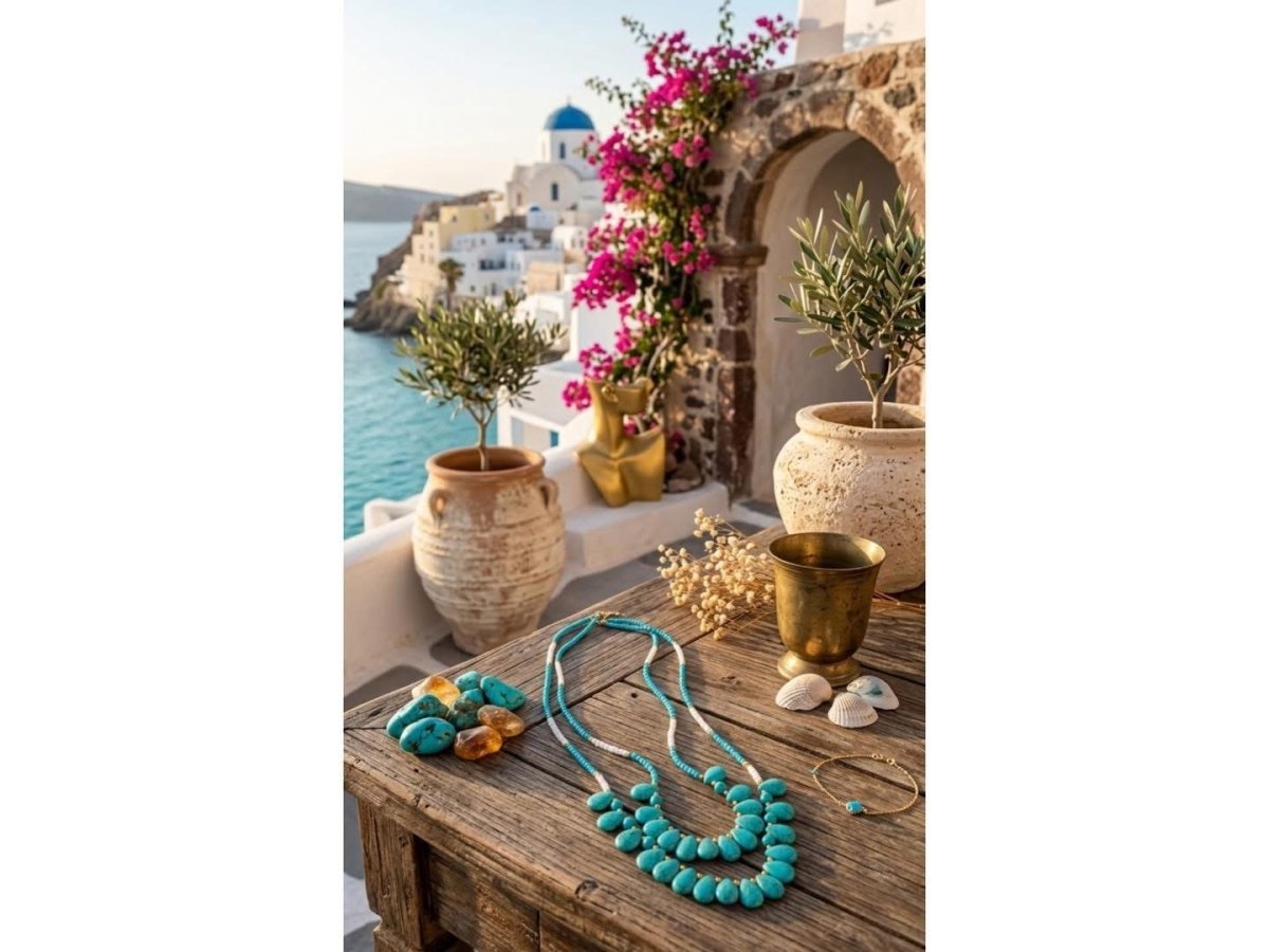 Dawn magic necklace 💙 Heart-catching details A necklace that combines turquoise stones with touches of soft natural pearl, giving a sophisticated and distinctive feeling🩵
