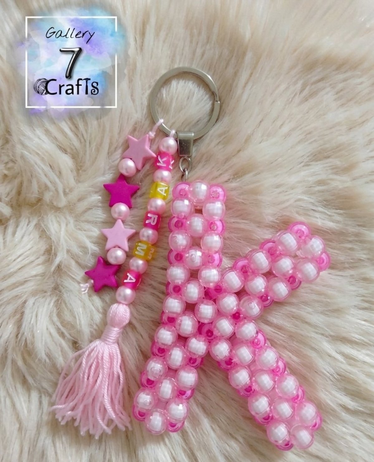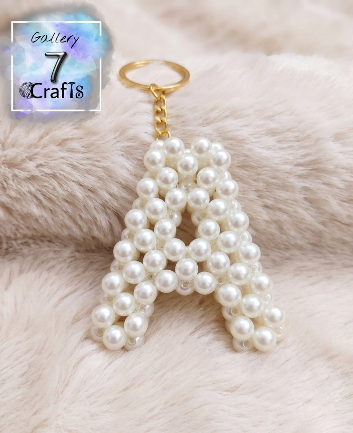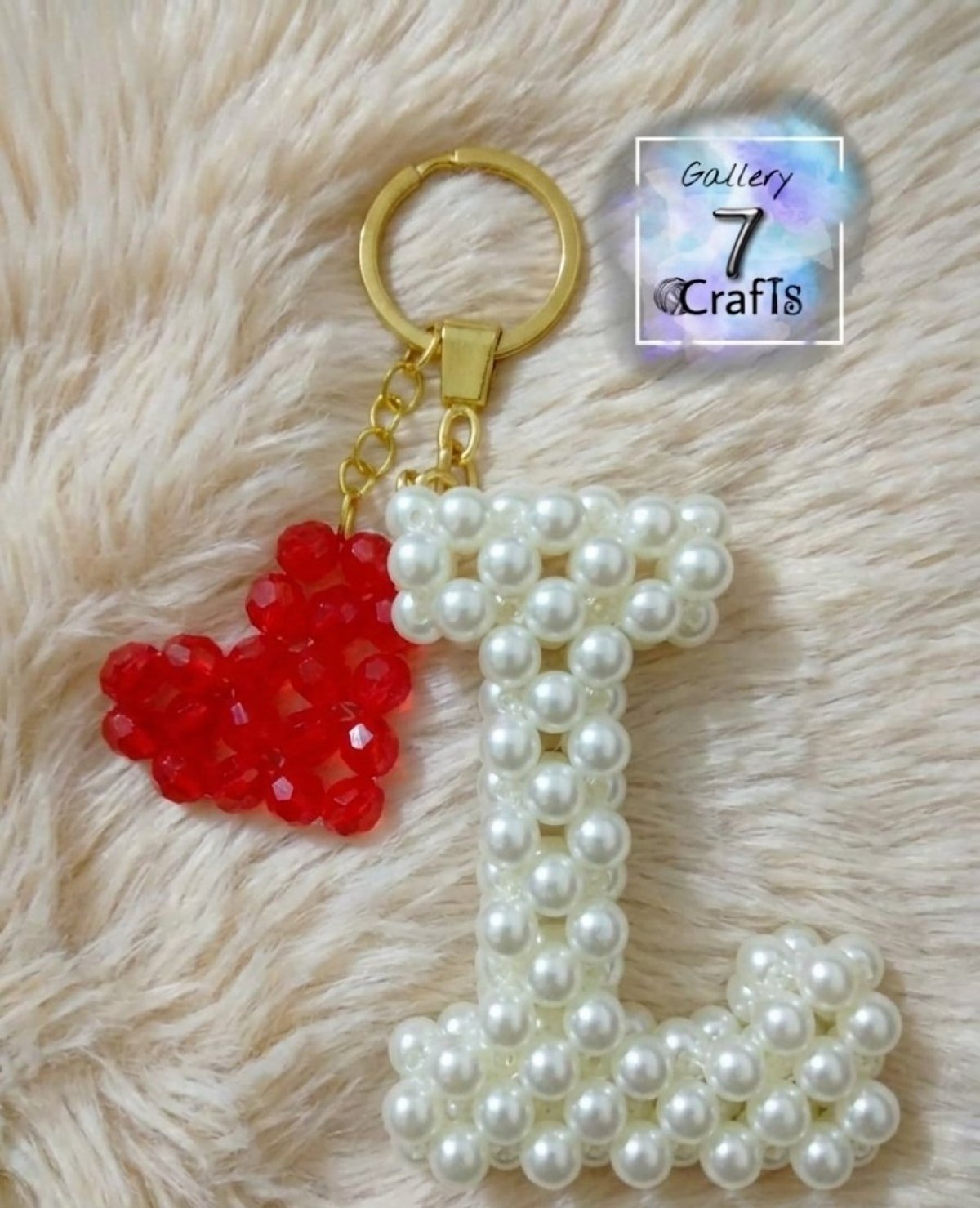 White/off-white bead keychain CCP (Cross-linked) material, non-peeling, distinctive shine Approximately 8cm long x 5cm wide Any letter can be made Adding a red heart is available for an additional 10 EGP