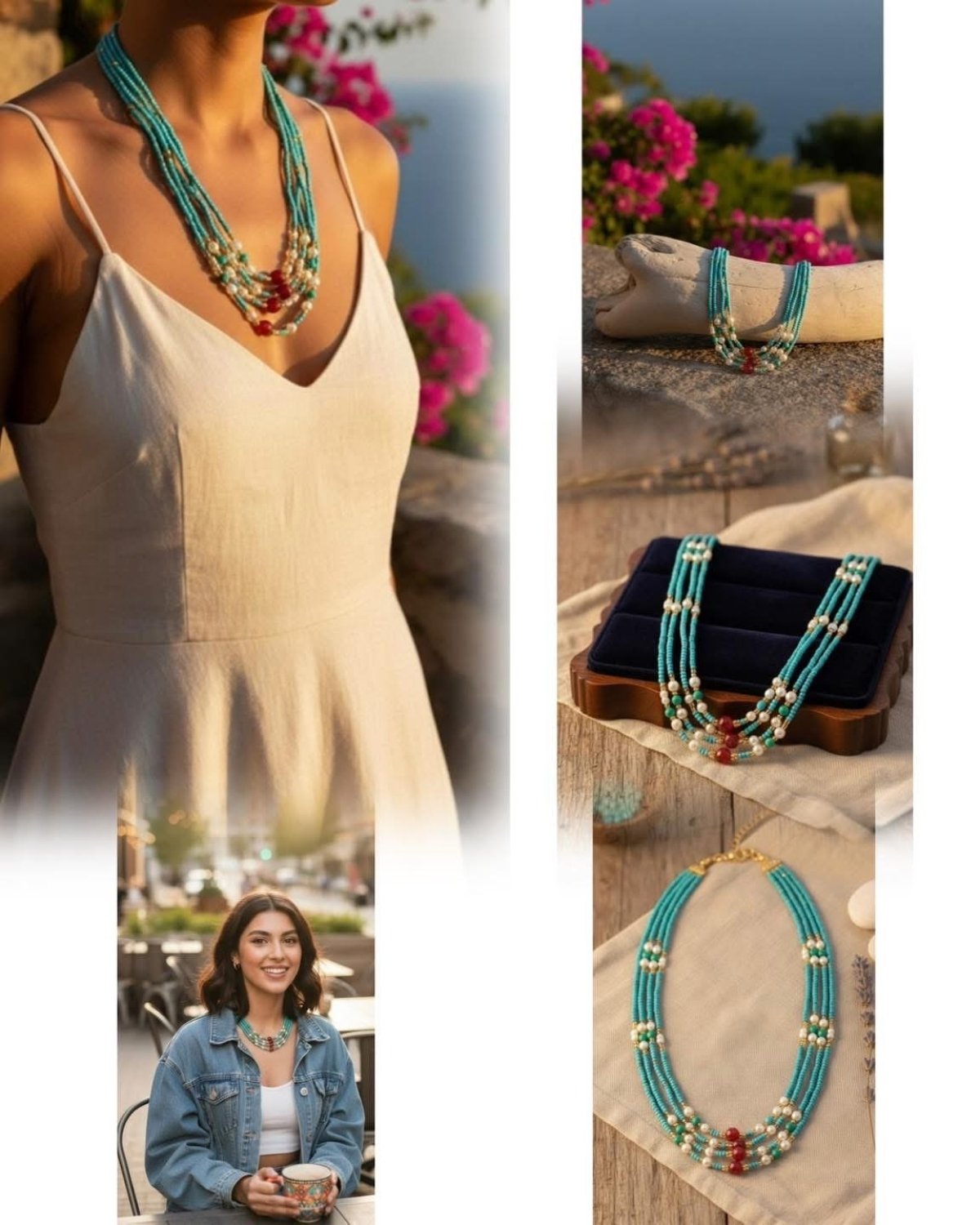 🩵💎Fairoza gold necklace ✨ An irresistible touch of elegance ✨ A multi-layered chain with a distinctive design that combines the calm turquoise color with luxurious gold touches 💙💛 Every detail is made with love... from the small beads to the large details that catch the eye 😍