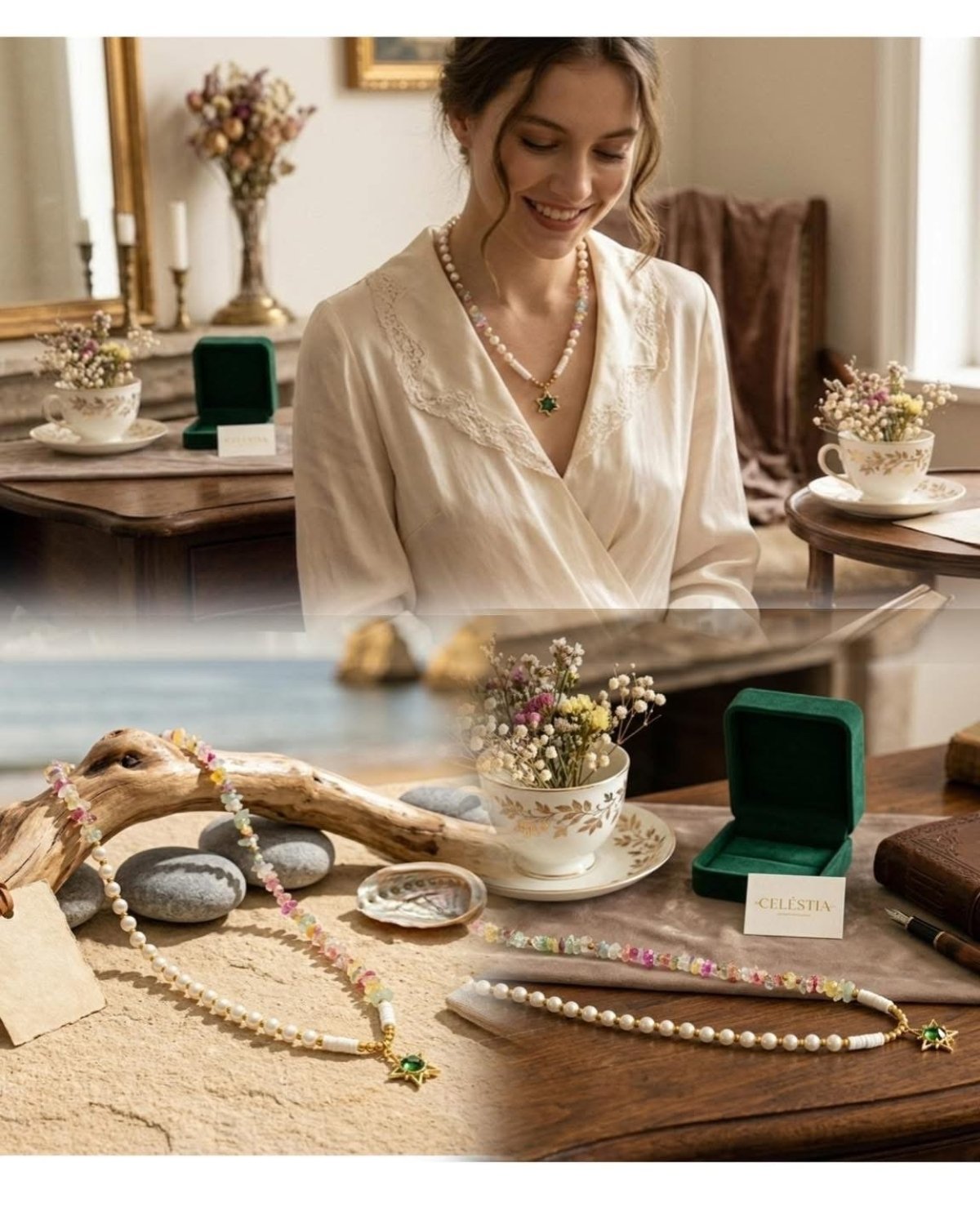 Sea pearl necklace 💎💙 "Every piece tells a story" Colorful beads + pearls = simple and soft elegance 🤍
