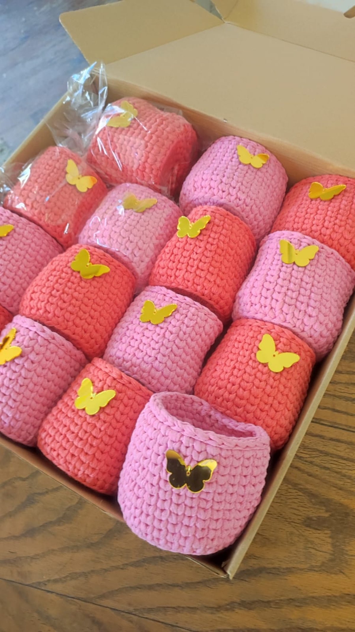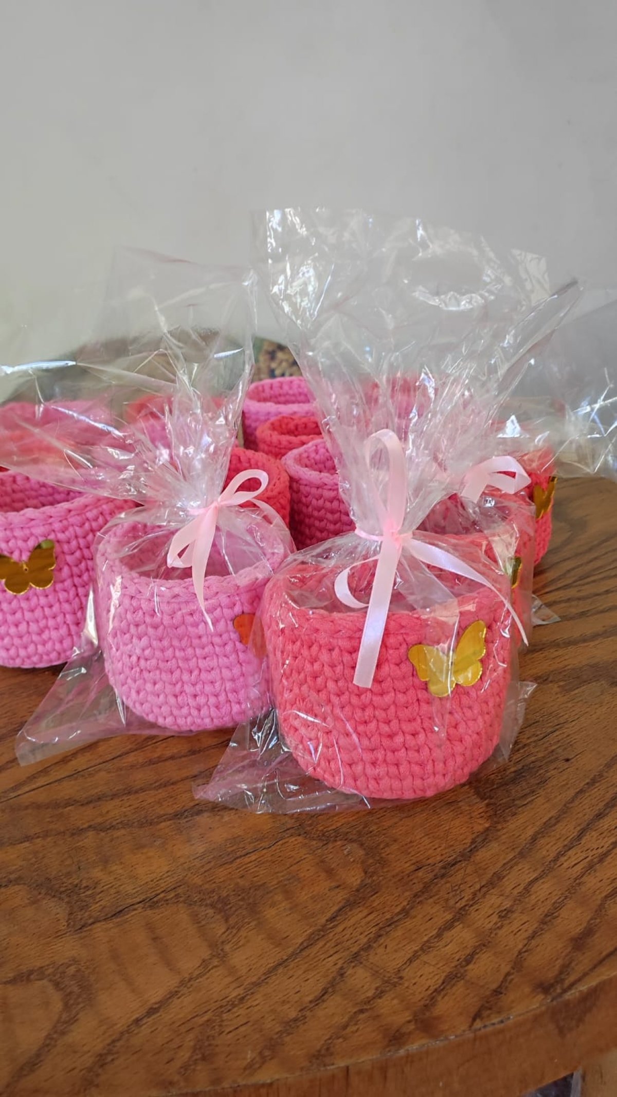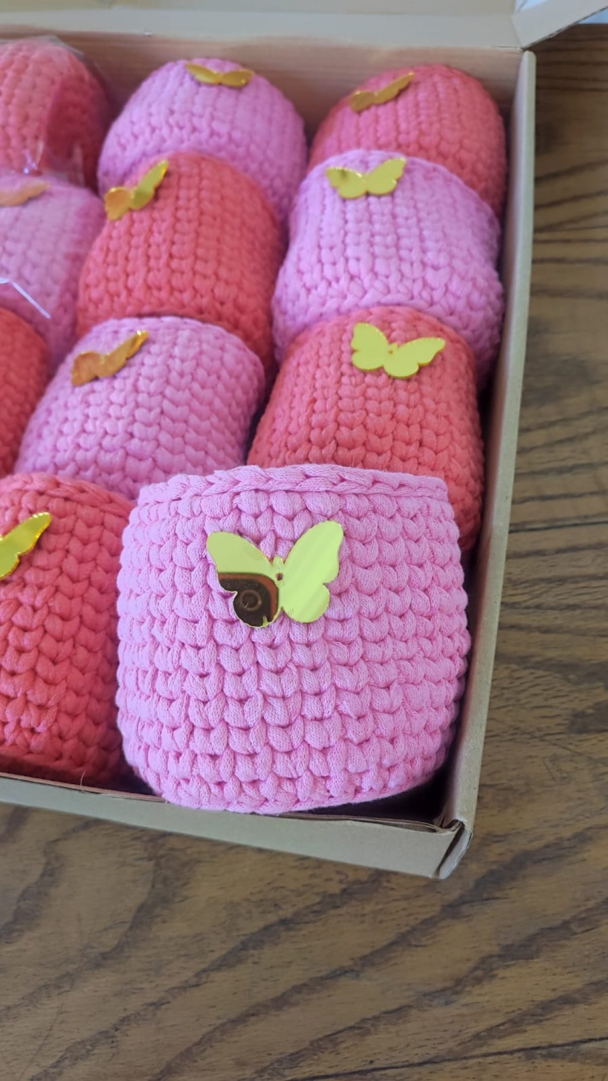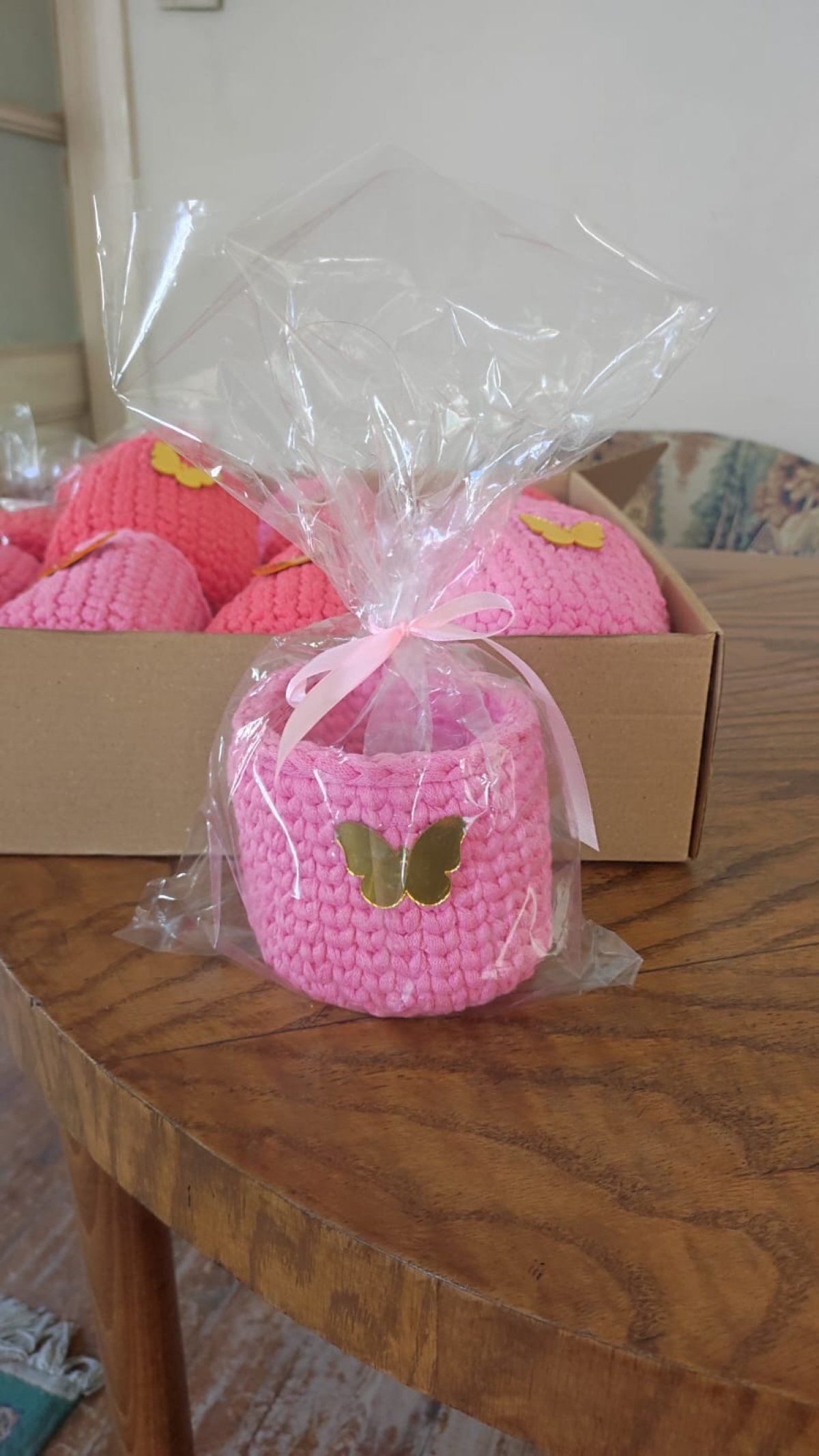 Box organizer crochet length 10 cm , diameter 9.5 cm with tag and Wrapped in a plastic bag