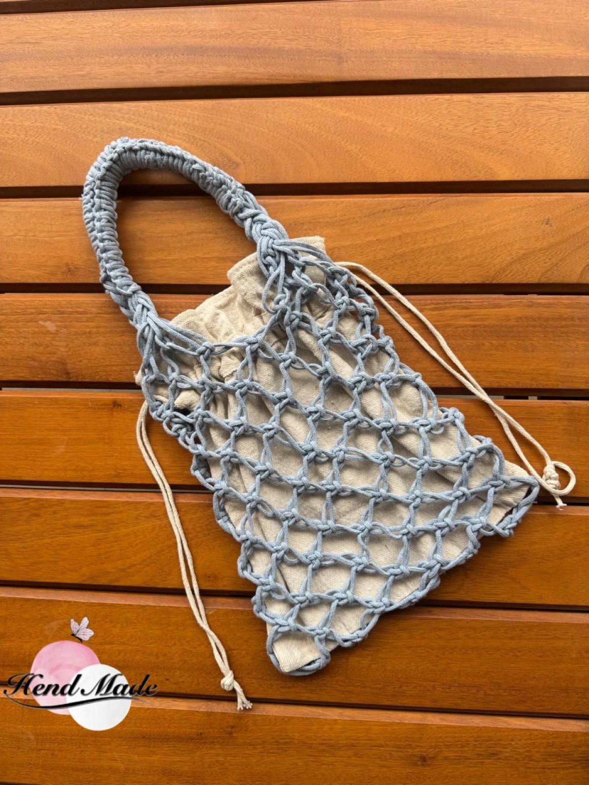 Trendy macramé net bag made off cotton yarn color :light blue Size 22cm*28cm suitable for summer