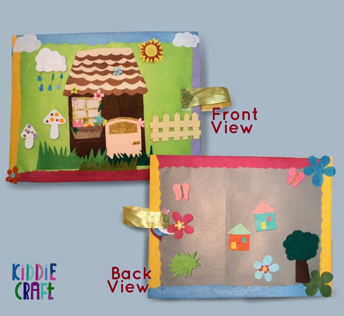 This set includes 2 rooms, one is a mini bedroom, with movable a bed, cover and pillow through velcro tapes. In addition to a window that can be opened to place an image of the moon at night and the sun during the day, with a curtain that can be moved as well, so that the child lives in an atmosphere that resembles reality.
