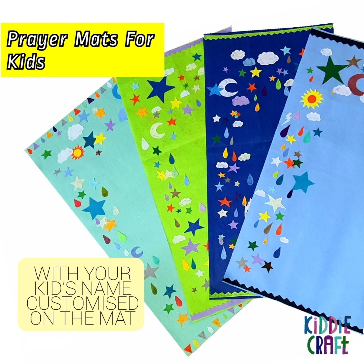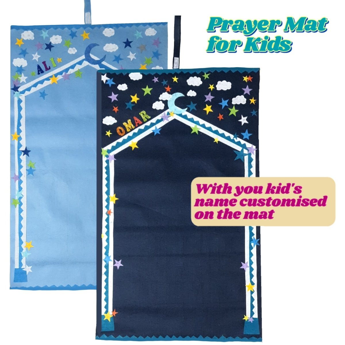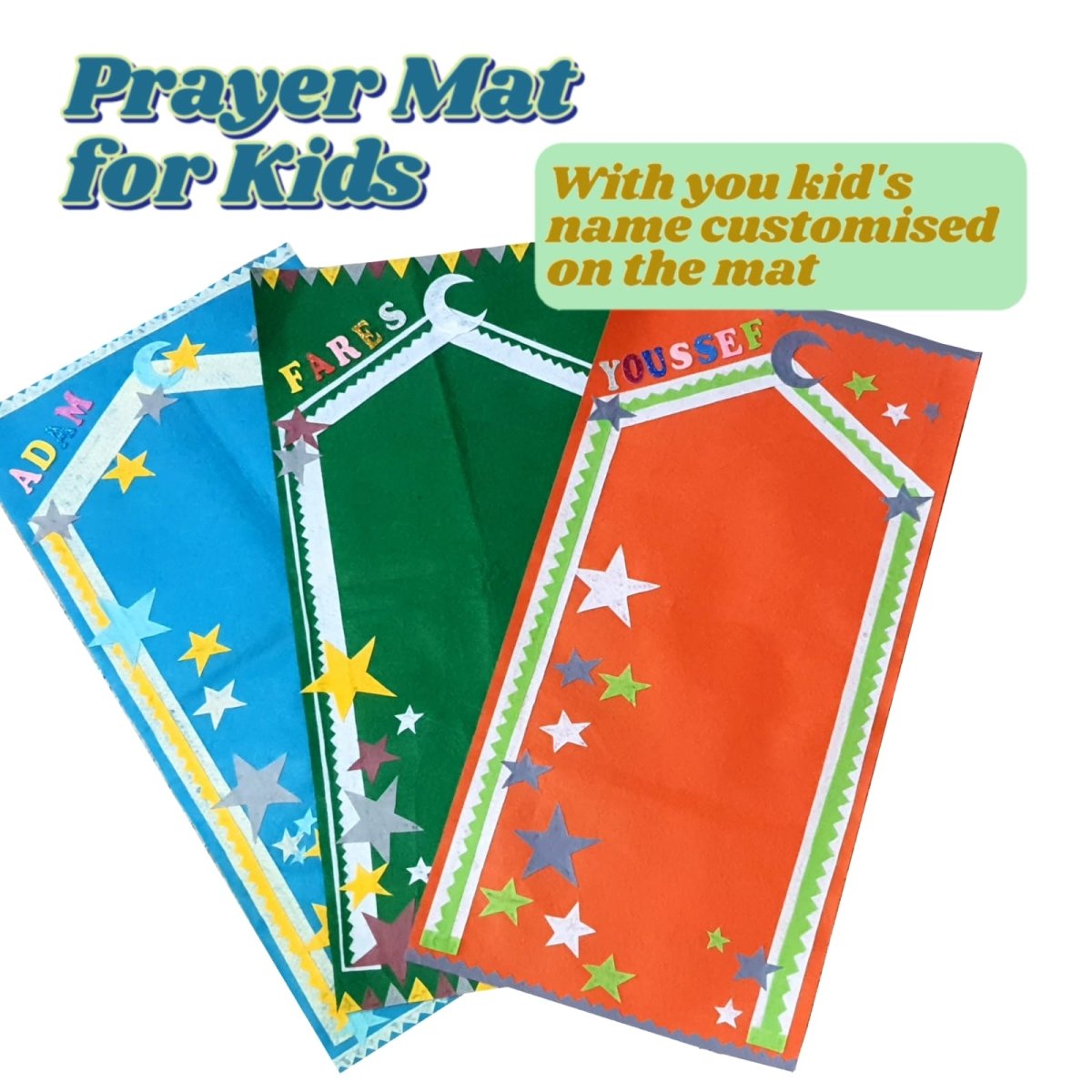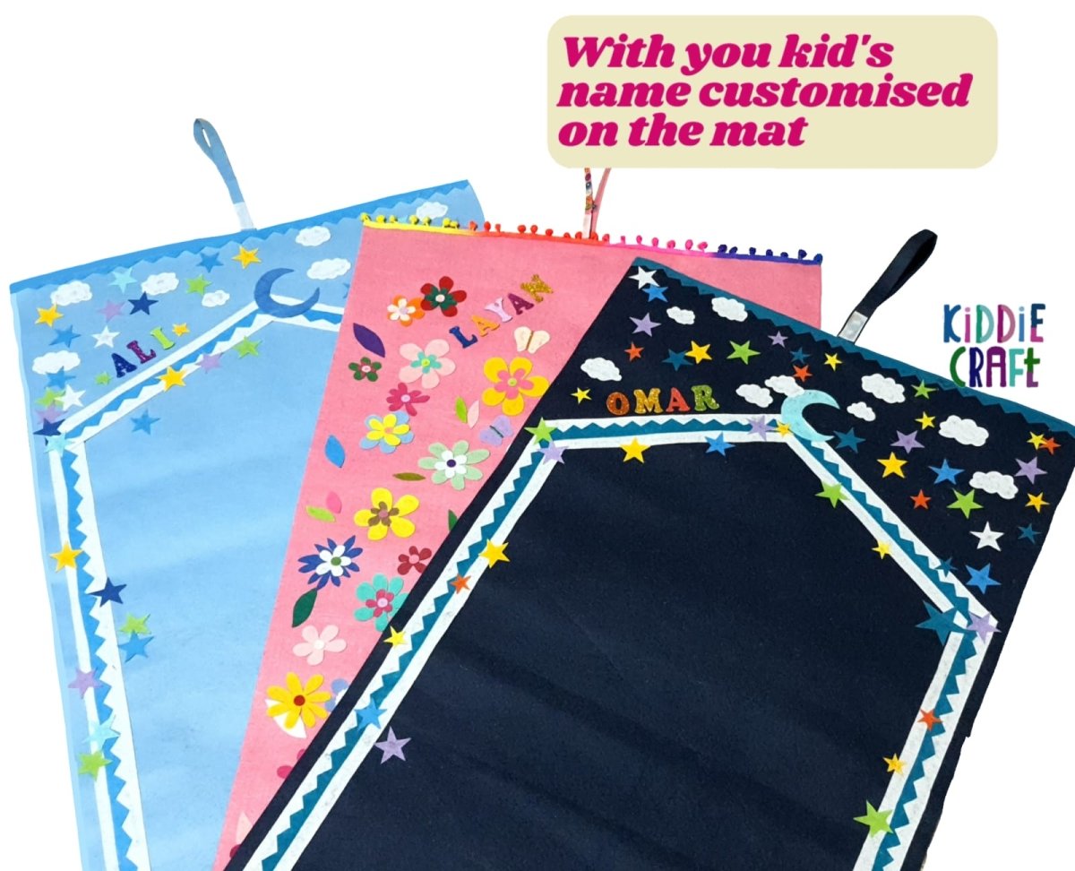 Handmade prayer mat for your little ones, with bright and attractive colors and shapes to encourage them to pray.