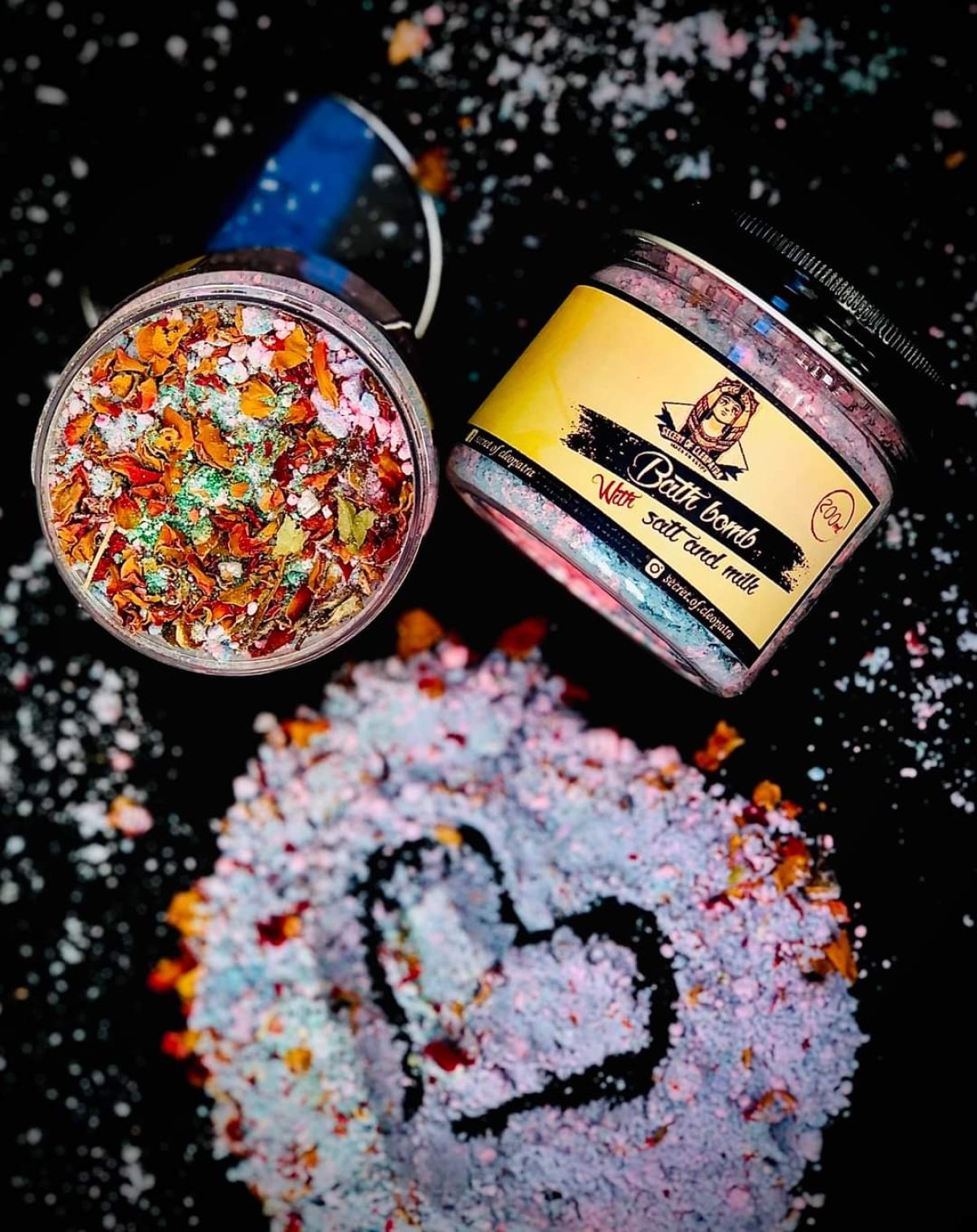 It comes to you with a package containing dried natural roses and glitter. You add them in water with powder if you need to pamper them 😇