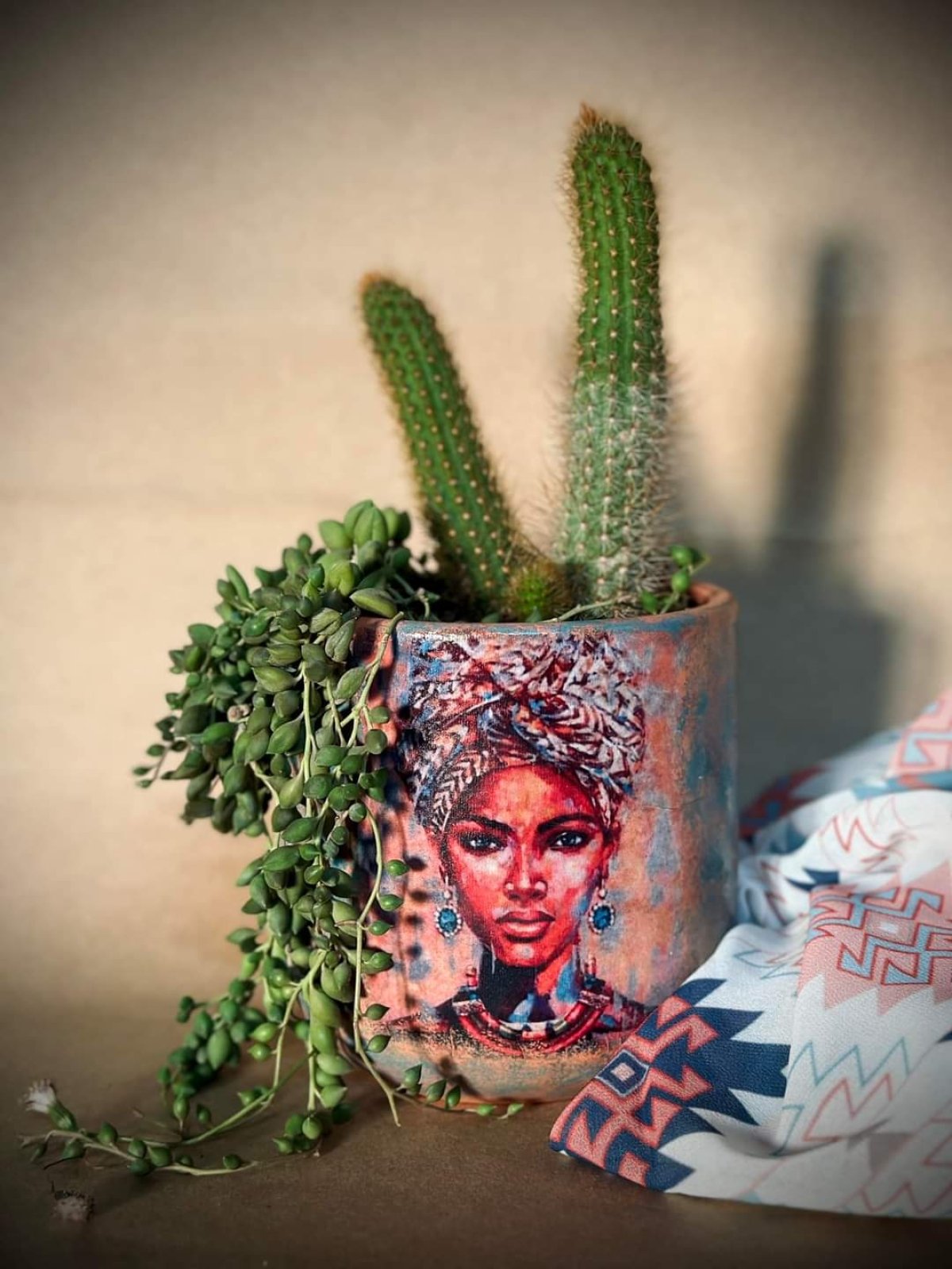 African new special pot with senecio rowleyanus and cleistocacuts Strauss 🌵