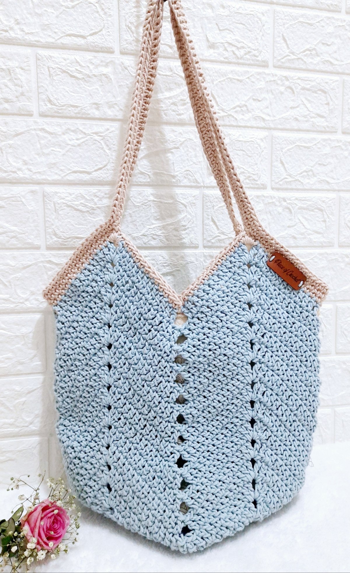 A bag made of high-quality cotton thread, with an excellent lining and an internal pocket. Different colors are available. The base of the bag is square, with a side length of 25 cm. The depth of the bag is 32 cm.
