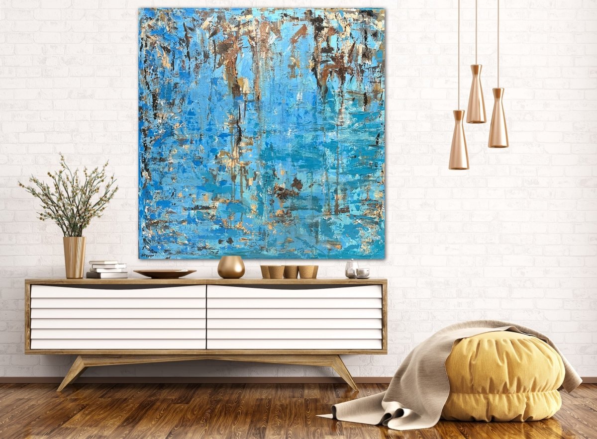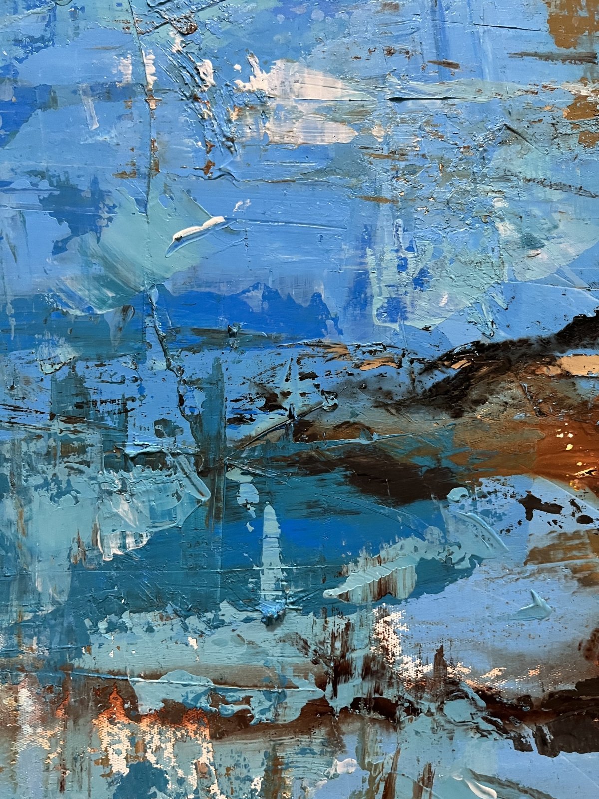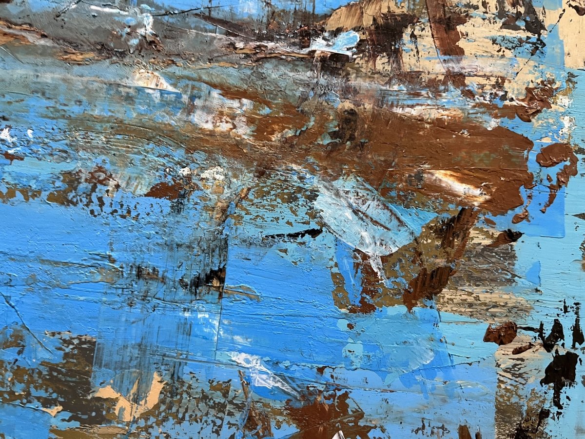 Solace is a breathtaking abstract painting that will transport you to a serene and peaceful state of mind. The striking blue hues of the piece, created using high-quality acrylic paints, evoke feelings of tranquility and calm. The bold brushstrokes and dynamic lines of the painting create a sense of movement and energy, while the abstract style allows for endless interpretation and reflection. The piece is perfect for any home or office, adding a touch of color and elegance to any room.