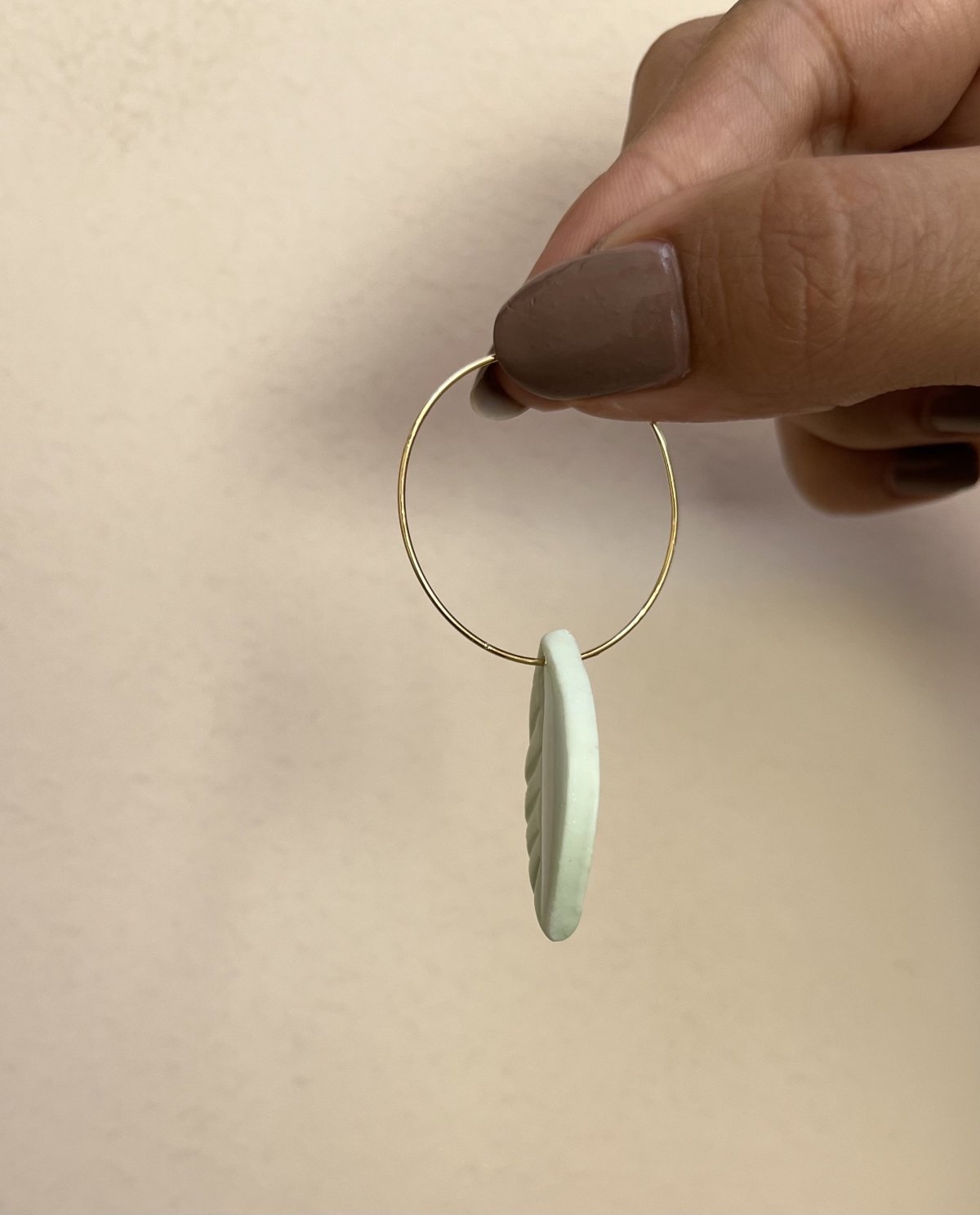 handmade from polymer clay , very light weight with a stainless steel studs ,covered with resin, rust resistant and it doesn't cause allergies