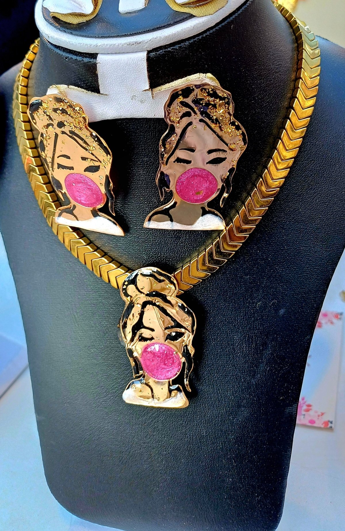 Unique set of gold plated copper with resin art inspired by summer vibes