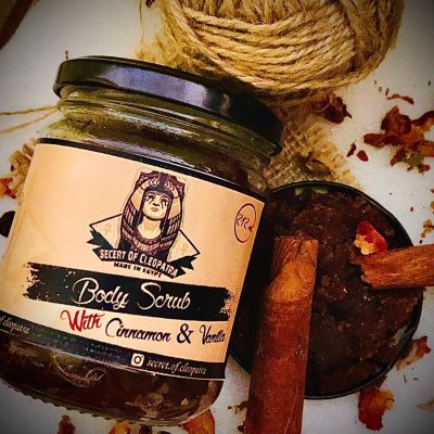 Cinnamon and vanilla scrub Mix of cinnamon, vanilla, almond oil and brown sugar It is one of the most important types of scrubs for the skin of the face or body Because cinnamon helps get rid of layers of dead skin, removes skin impurities and cleanses it deeply, it is therefore considered one of the most prominent materials used in exfoliating the skin. It also helps to lighten and brighten the skin and makes the skin free of pimples and pimples because it contains antifungals, germs and bacteria. Cinnamon also helps take care of sensitive skin because it contains soothing properties for the skin. It contributes to reducing the itching and irritation that affects sensitive skin. Suitable for all skin types
