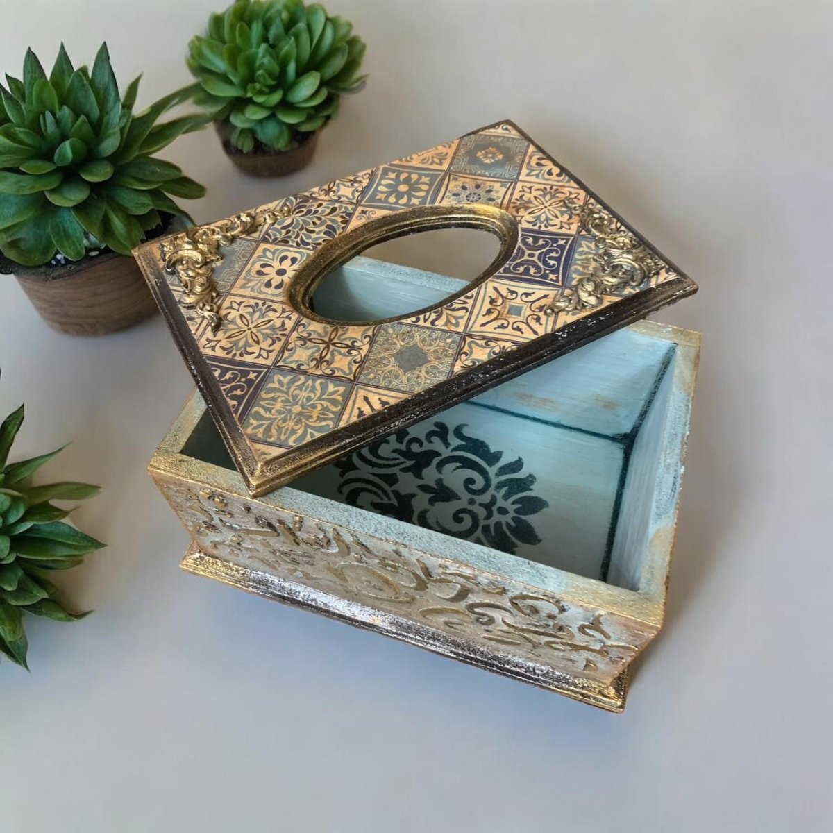 Imagine Takhayal Brand for handmade and woodworking It offers decoupage products, which are wooden products, fabric, or any other surface that can be transformed into a piece of art, using different types of paper with many distinctive colors, using different antique techniques to show the pieces...